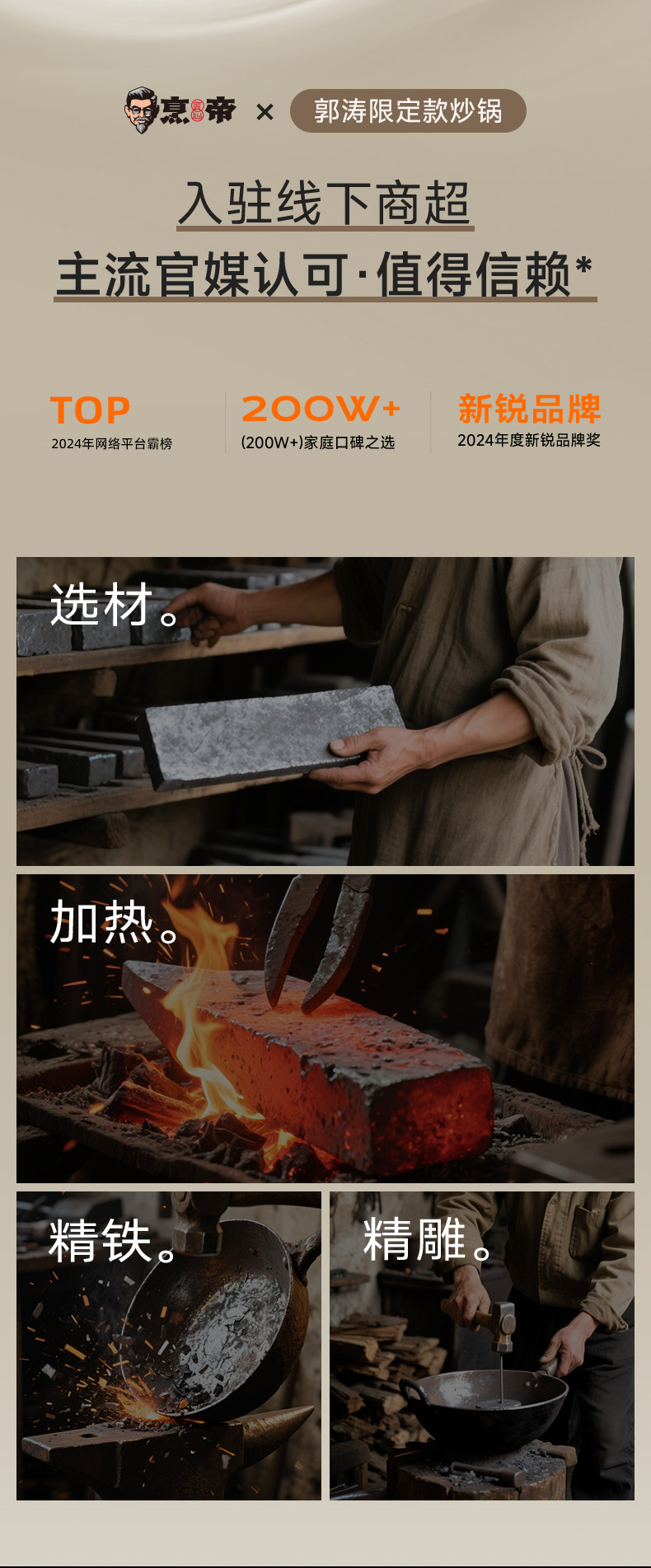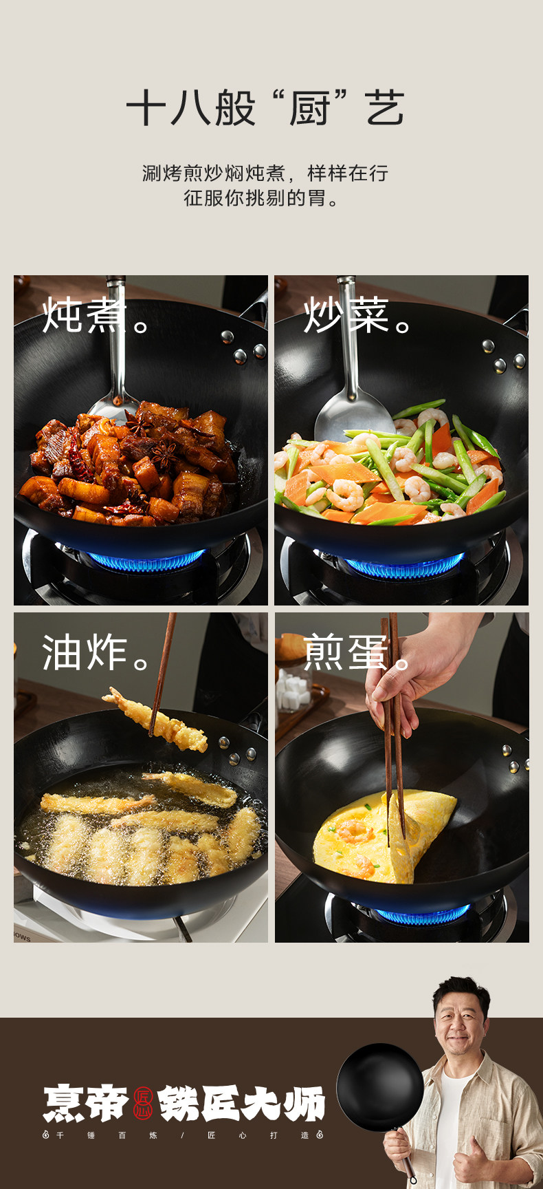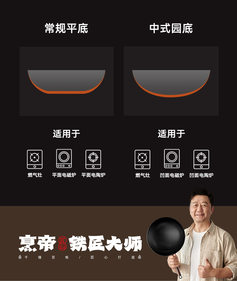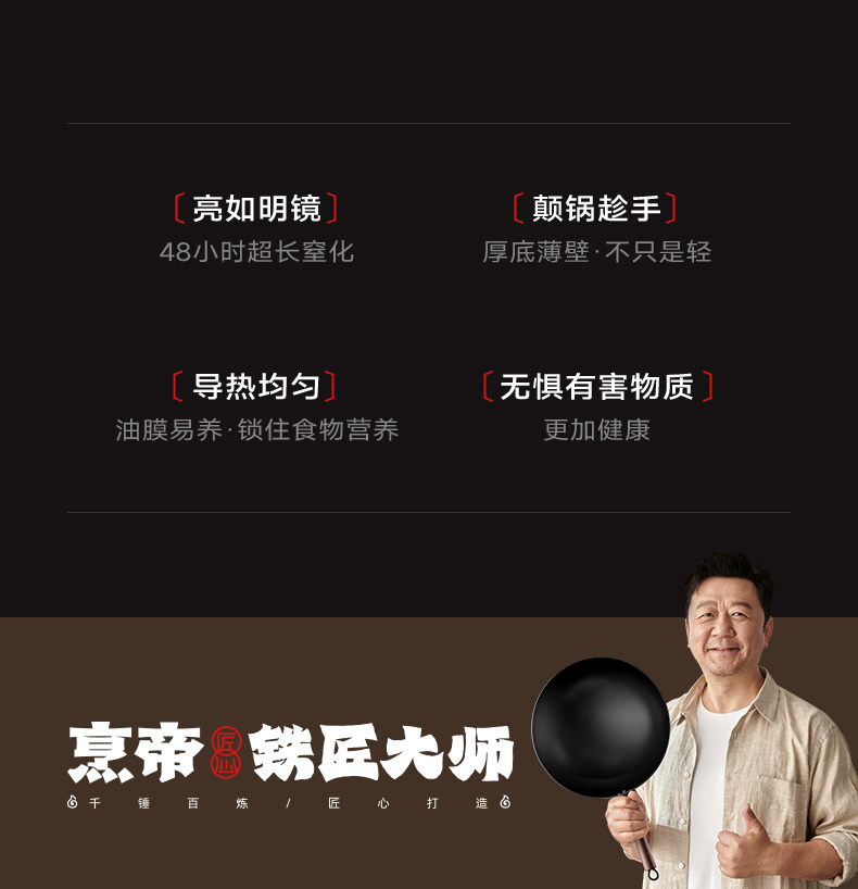 Fengdi Iron Wok, Non-Coated Non-Stick Frying Pan for Home Use, Zhangqiu Cooking Pan, Suitable for Gas Stoves and Induction Cookers, Flagship Store