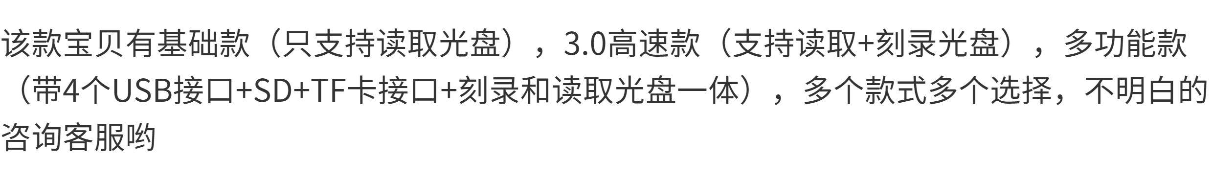 | Color Classification | [7-in-1] Multi-Function 4 Usb3.0+Tf/Sd Card Interfaces Full Range of Discs [Reading+Burning] Cd/Dvd/Vcd/High Speed,High-End Configuration [90% Recommended] USB 3.0 Full Series Disc Reader/Writer [Read + Burn] Cd/Dvd/Vcd/High-Speed,Cd Pattern Aesthetic Model [Usb3.0 Full Range of Discs] Read + Burn Cd/Dvd/Vcd High Speed,Standard Model [Usb2.0] Supports Reading Cd/Dvd/Vcd Discs/No Burning,High-End Configuration, 90% Recommended. Features an Imported Movement, USB 3.0 Compatibility, and Full Disc Reading Support for Cds, Dvds, and Vcds. Includes Cd/Dvd/Vcd Burning Capabilities and High-Speed Performance,Multi-Functional Model [Imported Movement] 4 USB + Tf/Sd Card Interfaces, Full Range of Disc Reading + Cd/Dvd/Vcd Burning/High Speed |
