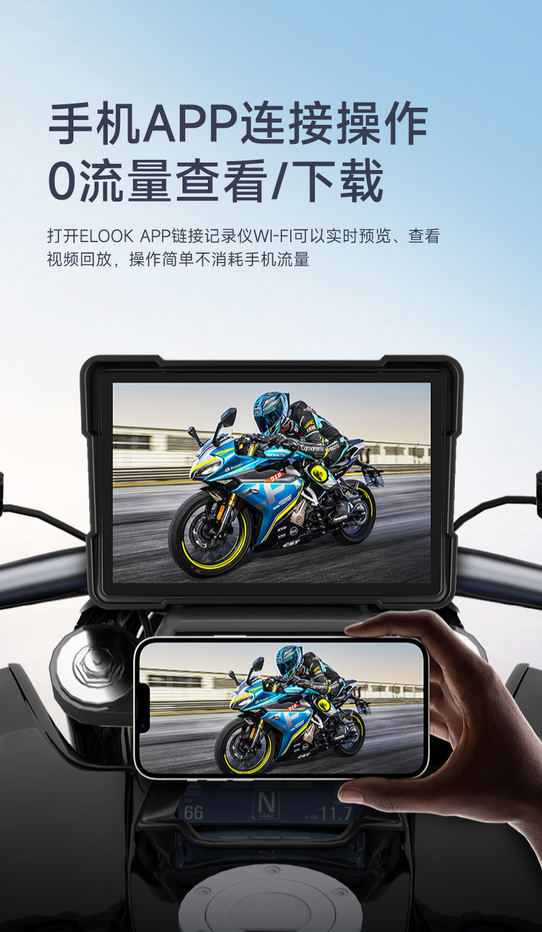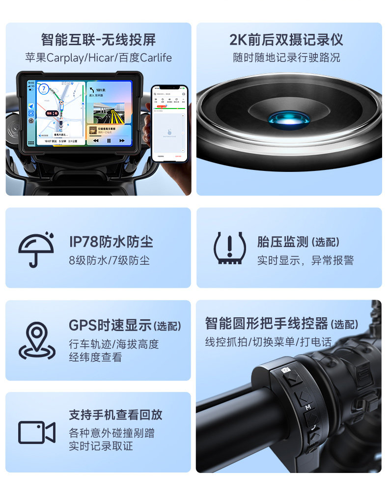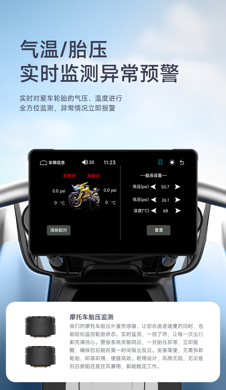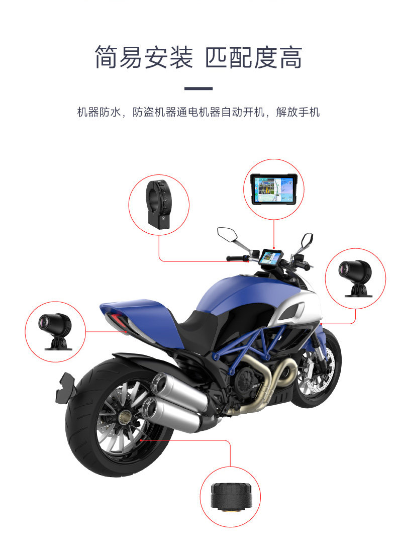 Shengpai Motorcycle and Electric Vehicle Dedicated Driving Recorder with Tire Pressure Monitoring and Navigation, Integrated Vehicle Computer with Dual Front and Rear Cameras