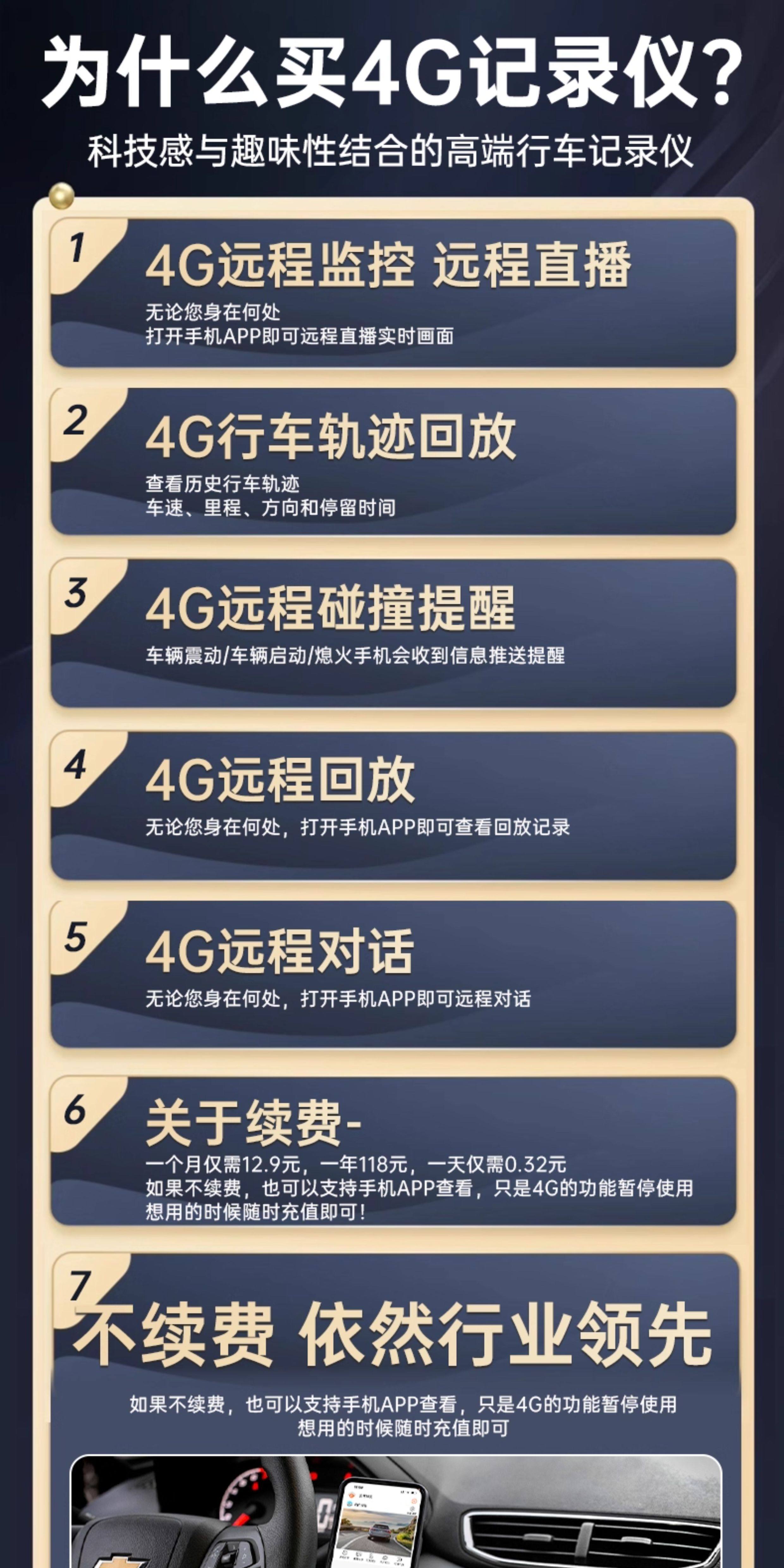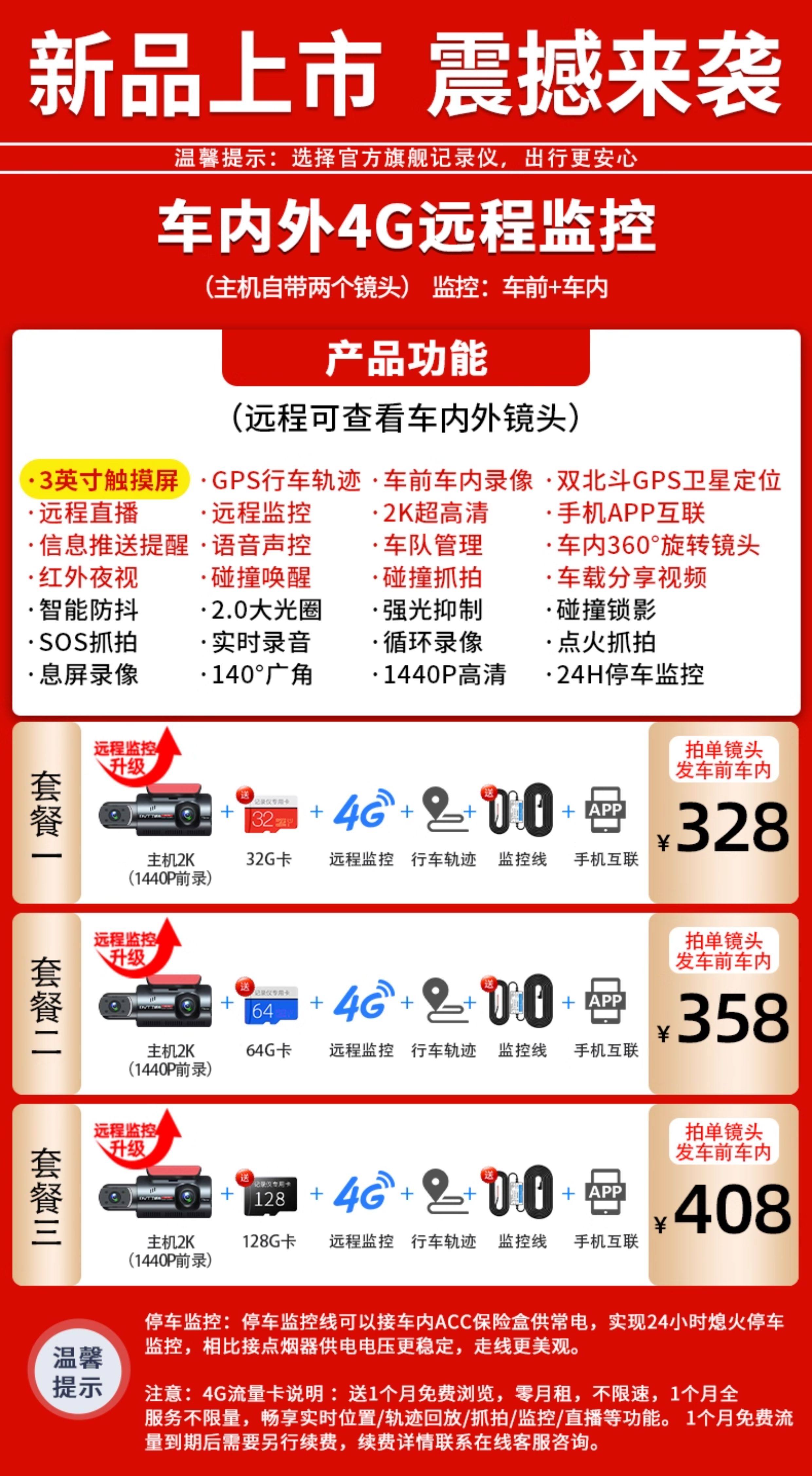| Package | Package 1: 4g Dual Remote Control in Front of the Car + Monitoring Line + Positioning Track + 32g Card,Package Two: 4g Dash Cam (Front & Interior) with Remote Monitoring + Monitoring Cable + Gps Tracking + 64Gb Card,Package Three: 4g Dash Cam with Front and Interior Recording, Remote Monitoring Cable, Gps Tracking, and 128Gb Card |