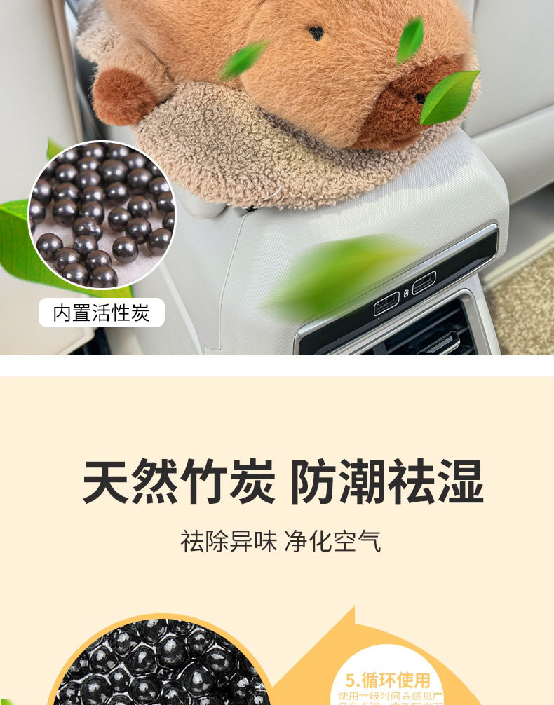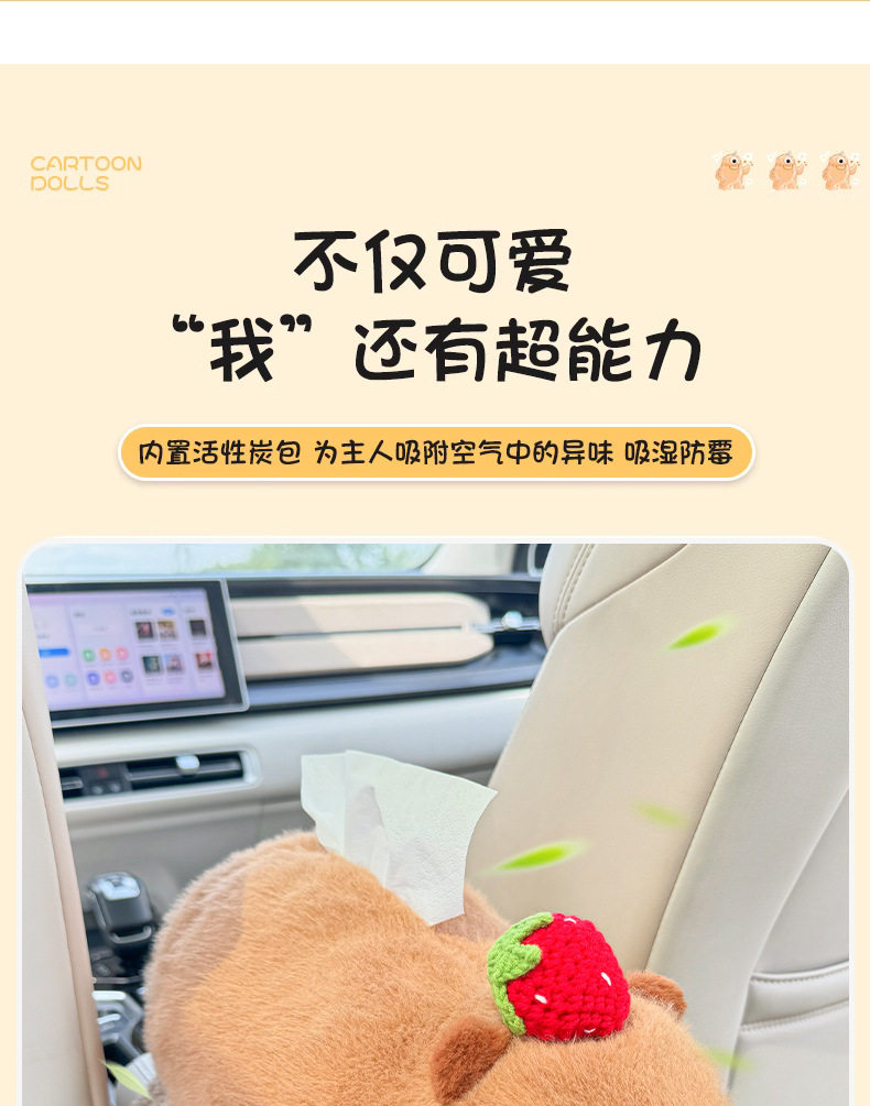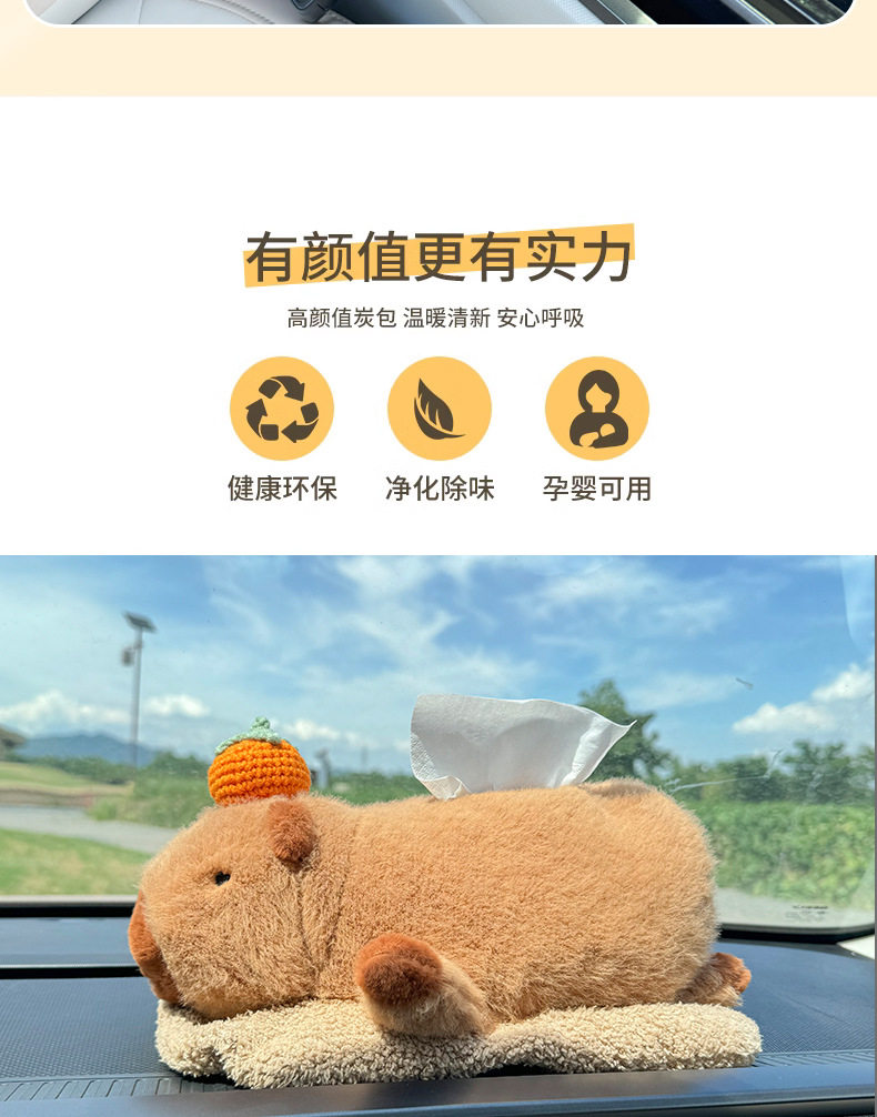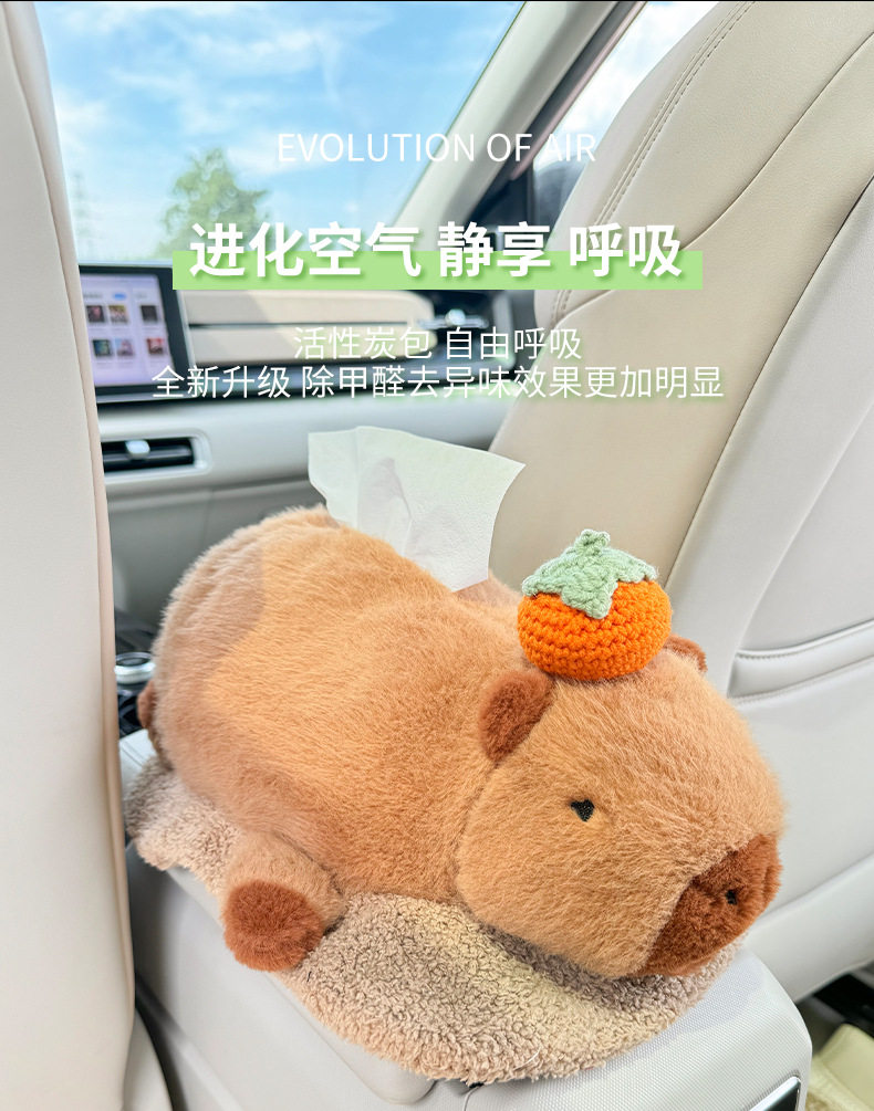 Kapibala Car Tissue Box Deodorizing Bamboo Charcoal Bag Armrest Box Seat Type Plush Cute Female Car Tissue Doll
