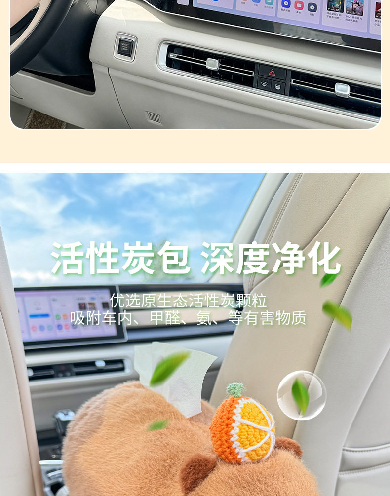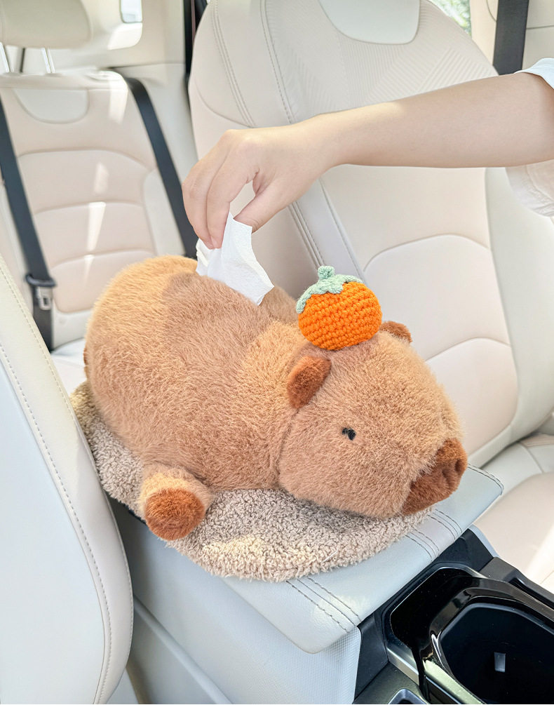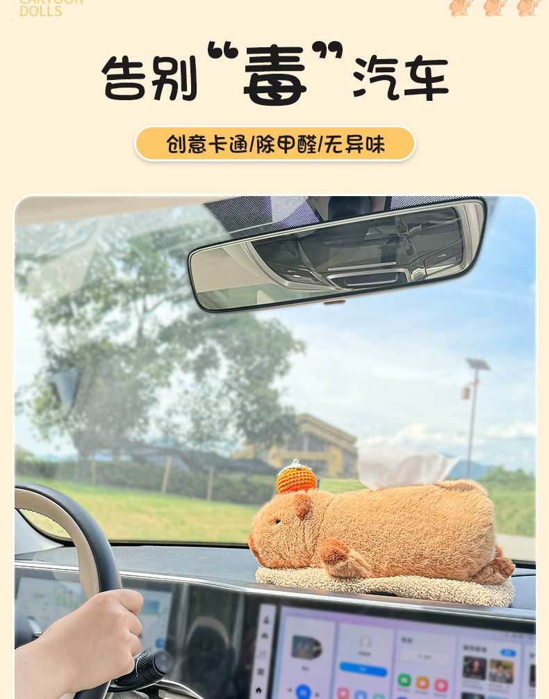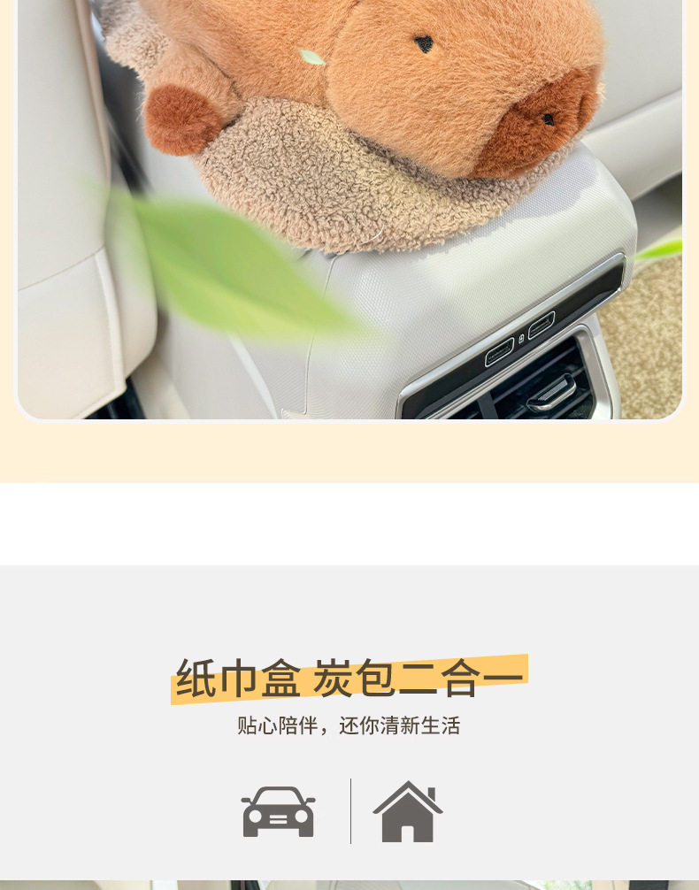 Kapibala Car Tissue Box Deodorizing Bamboo Charcoal Bag Armrest Box Seat Type Plush Cute Female Car Tissue Doll