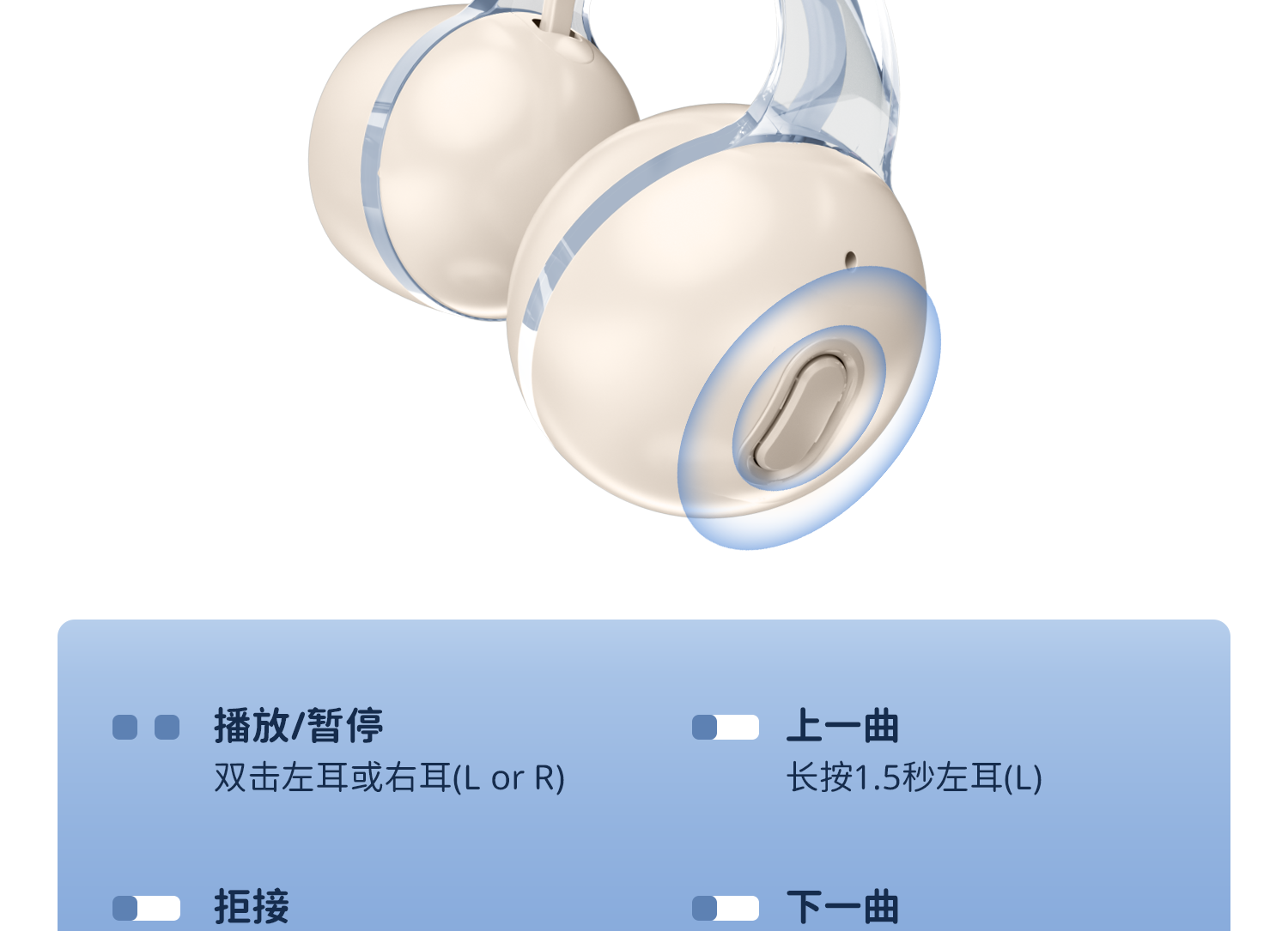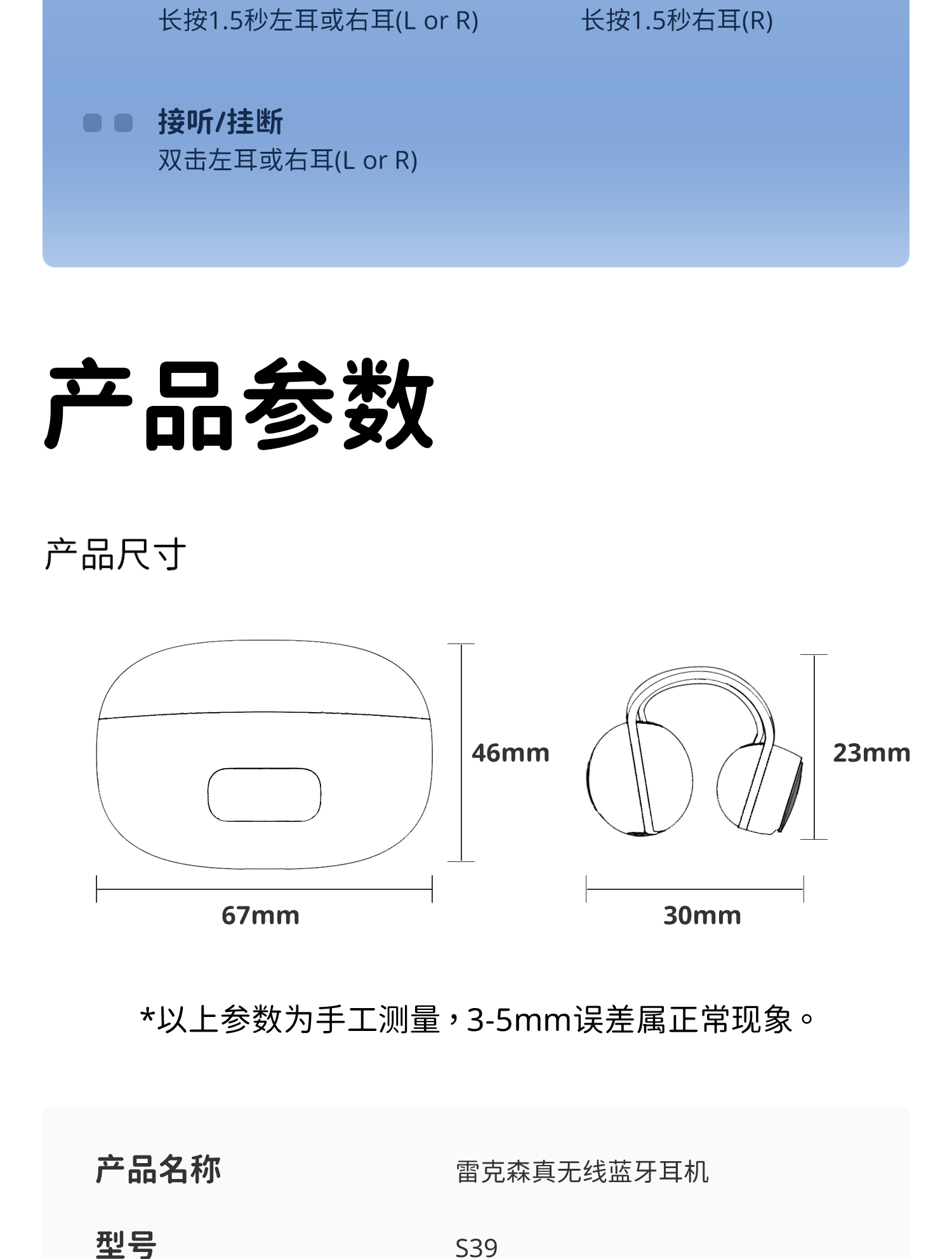 | Function | Support Pairing,Voice Control,Call Function,Seamless Wear,Long Battery Life,Support Music,Battery Level Indicator |