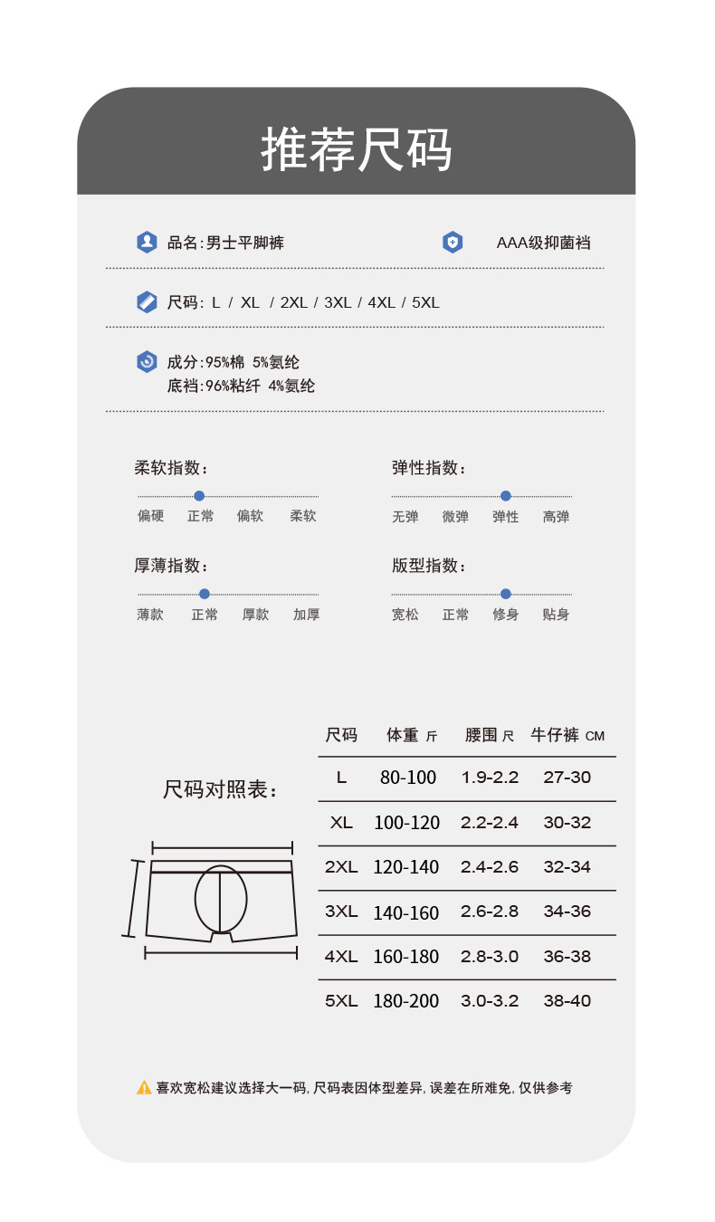 | Crotch Material Composition | Viscose Fiber (Viscose Fiber) 95% Polyurethane Elastic Fiber (Spandex) 5% |
