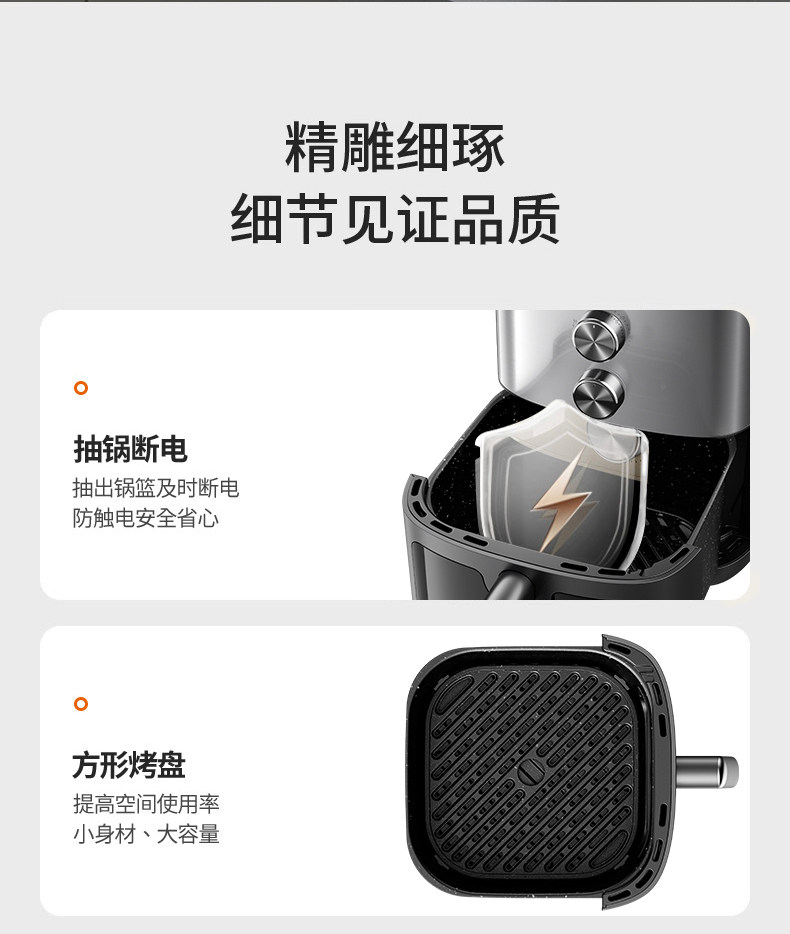 | Color Classification | Black 6.5L Large CapacityâGrilling Without TurningâDual Heat Source HeatingâVisual Window,White Upgraded Touch Modelâ6.5L CapacityâGrilling Without TurningâDual Heat Source HeatingâVisual Window |
