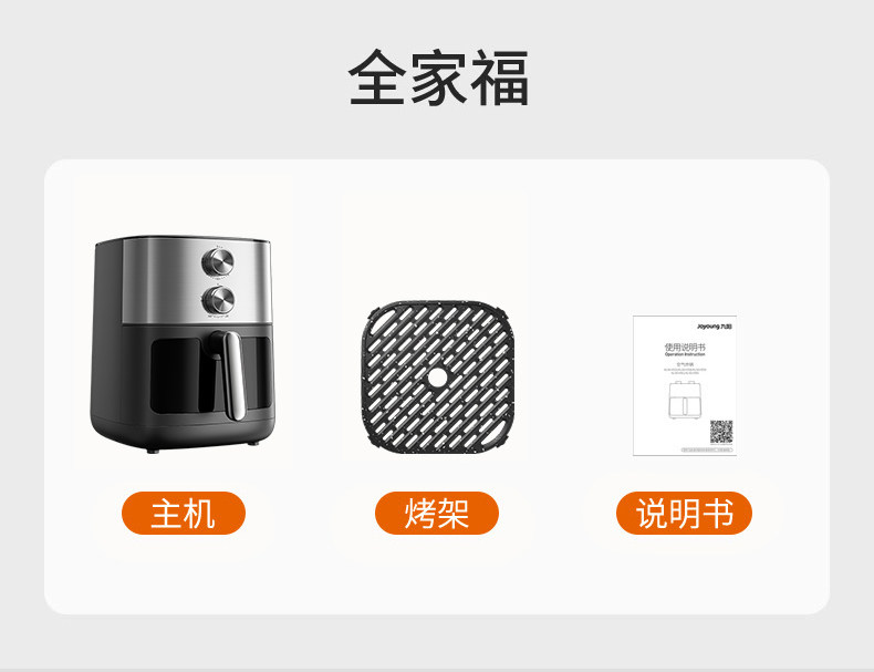 Joyoung Yanrui Air Fryer with Quiet Operation, No Flipping Required, 6.5L Visible Large Capacity All-In-One Electric Fryer and Steamer Oven for Home Use
