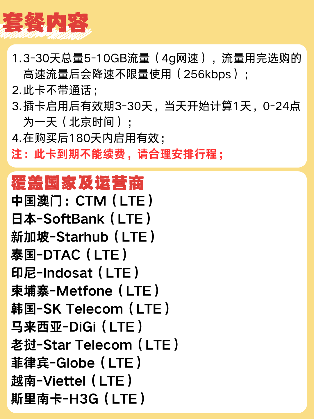 | Package | Southeast Asia 8-Day 5g Sim Card + Unlimited Data with Speed Reduction,8-Day 5g Unlimited Data Sim Card for Multiple Asian Countries,12-Day 6g Unlimited Data Sim Card with Free Card Reader for Multiple Asian Countries,Asian Multi-Country 15-Day 10Gb+ Unlimited Data Sim Card,Asian Multi-Country 30-Day 10Gb+ Unlimited Data Sim Card |