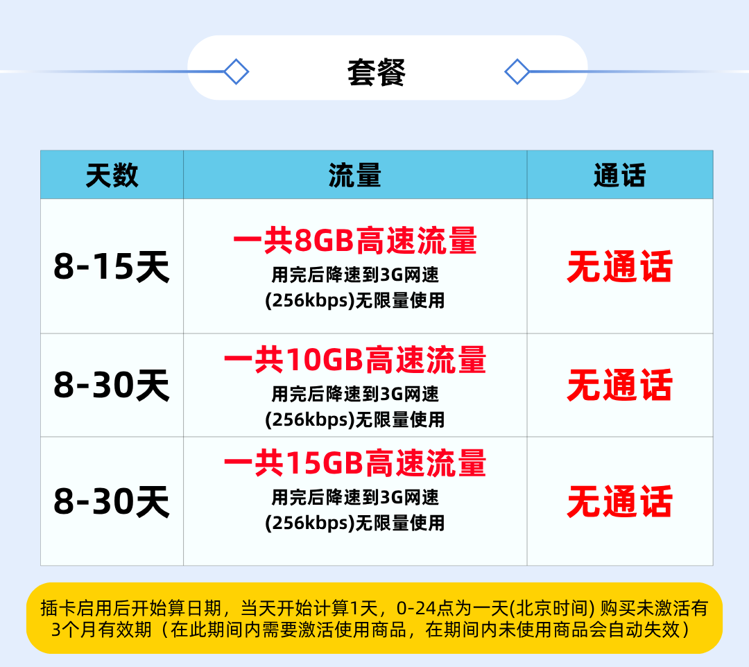 | Package | Europe 8-Day 8Gb Sim Card with Unlimited Data (Reduced Speed),Europe 11 Days 8g + Unlimited Speed Reduction,Europe 13 Days 8g + Unlimited Speed Reduction,Europe 15 Days 8g + Unlimited Speed Reduction,Europe 8 Days 10g+ Unlimited Speed Reduction,Europe 11 Days 10g + Unlimited Speed Reduction,Europe 13 Days 10g+ Unlimited Speed Reduction,Europe 16 Days 10g+ Unlimited Speed Reduction,Europe 22 Days 10g+ Unlimited Speed Reduction,Europe 30 Days 10g+ Unlimited Speed Reduction,Europe 8 Days 15g + Unlimited Speed Reduction,Europe 11 Days 15g + Unlimited Speed Reduction,Europe 13 Days 15g + Unlimited Speed Reduction,Europe 16 Days 15g + Unlimited Speed Reduction,Europe 22 Days 15g + Unlimited Speed Reduction,Europe 30 Days 15g + Unlimited Speed Reduction |