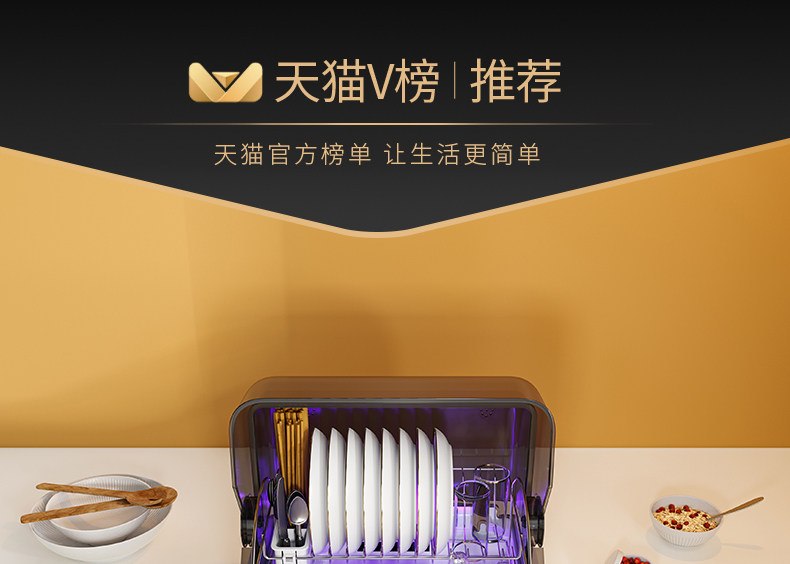 Haotaitai Disinfection Cabinet for Home Use, Small Dish and Cutlery Dryer, Mercury-Free Uv, Countertop Tabletop Dishwasher, No Draining Needed