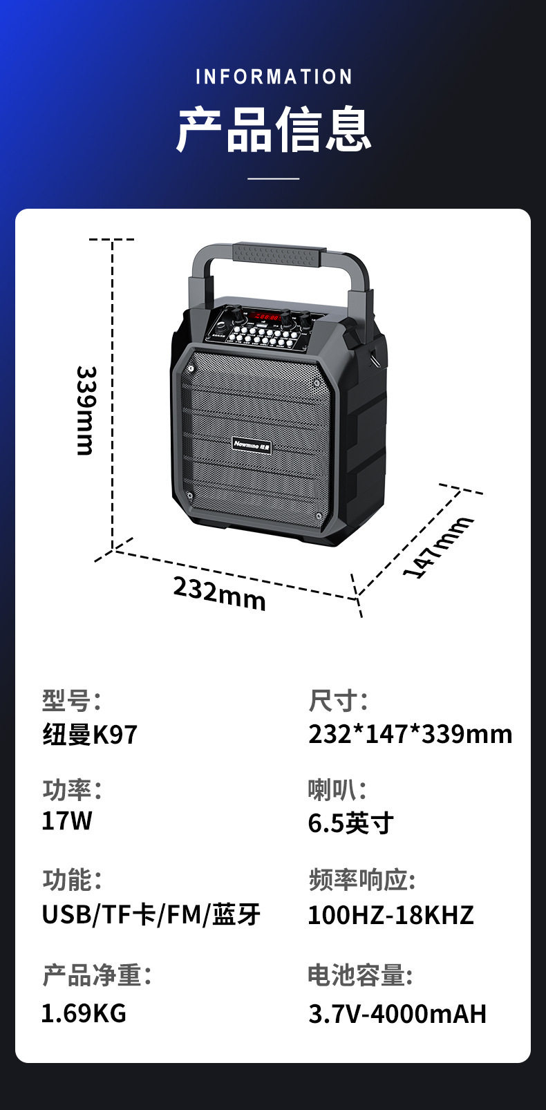 Newman Newmine K99 Wireless Bluetooth Speaker, Outdoor High-Volume Square Dance Speaker, Portable for Street Vending