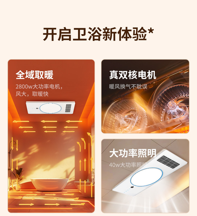 Dual-Wind Warm Air Bath Heater Lamp Integrated Ceiling Fan Ventilation Lighting Exhaust Fan All-In-One Bathroom Heater