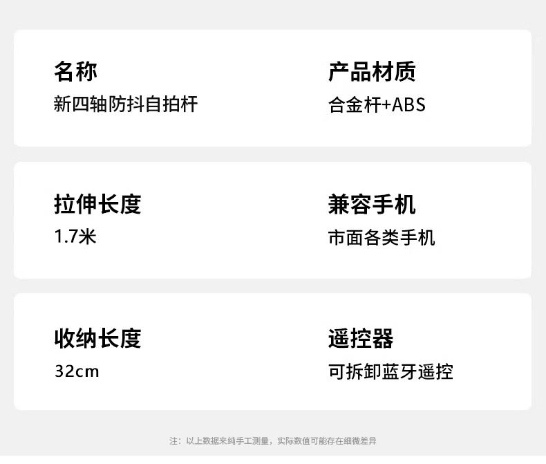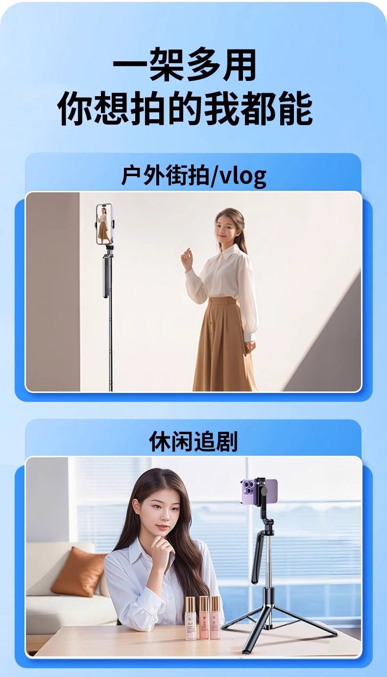| Color Classification | Black[1.7m Classic]Dragon Bone Reinforced Tripodâ360°Panoramic ShotâBluetooth Remote Control,White[1.7m Classic]Dragon Bone Reinforced Tripodâ360°Panoramic ShotâBluetooth Remote Control,Black[1.7m Classic]+Three-Color Beauty LampâDragon Bone Reinforced Tripodâ360°Panoramic ShotâBluetooth Remote Control,White[1.7m Classic]+Three-Color Beauty LampâDragon Bone Reinforced Tripodâ360°Panoramic ShotâBluetooth Remote Control,Black[1.7m Classic]+Three-Color Beauty Lamp X2âDragon Bone Reinforced Tripodâ360°Panoramic ShotâBluetooth Remote Control,White[1.7m Classic]+Three-Color Beauty Lamp X2âDragon Bone Reinforced Tripodâ360°Panoramic ShotâBluetooth Remote Control,[1.7m Anti-Shake Model]Four-Axis Anti-ShakeâVlog Follow-UpâCarbon Steel ShaftâBluetooth Remote Control,[1.7m Anti-Shake Model]+Three-Color Beauty LampâFour-Axis Anti-ShakeâVlog Follow-UpâCarbon Steel ShaftâBluetooth Remote Control,[1.7m Anti-Shake Model]+Three-Color Beauty Lamp X2âFour-Axis Anti-ShakeâVlog Follow-UpâCarbon Steel ShaftâBluetooth Remote Control |