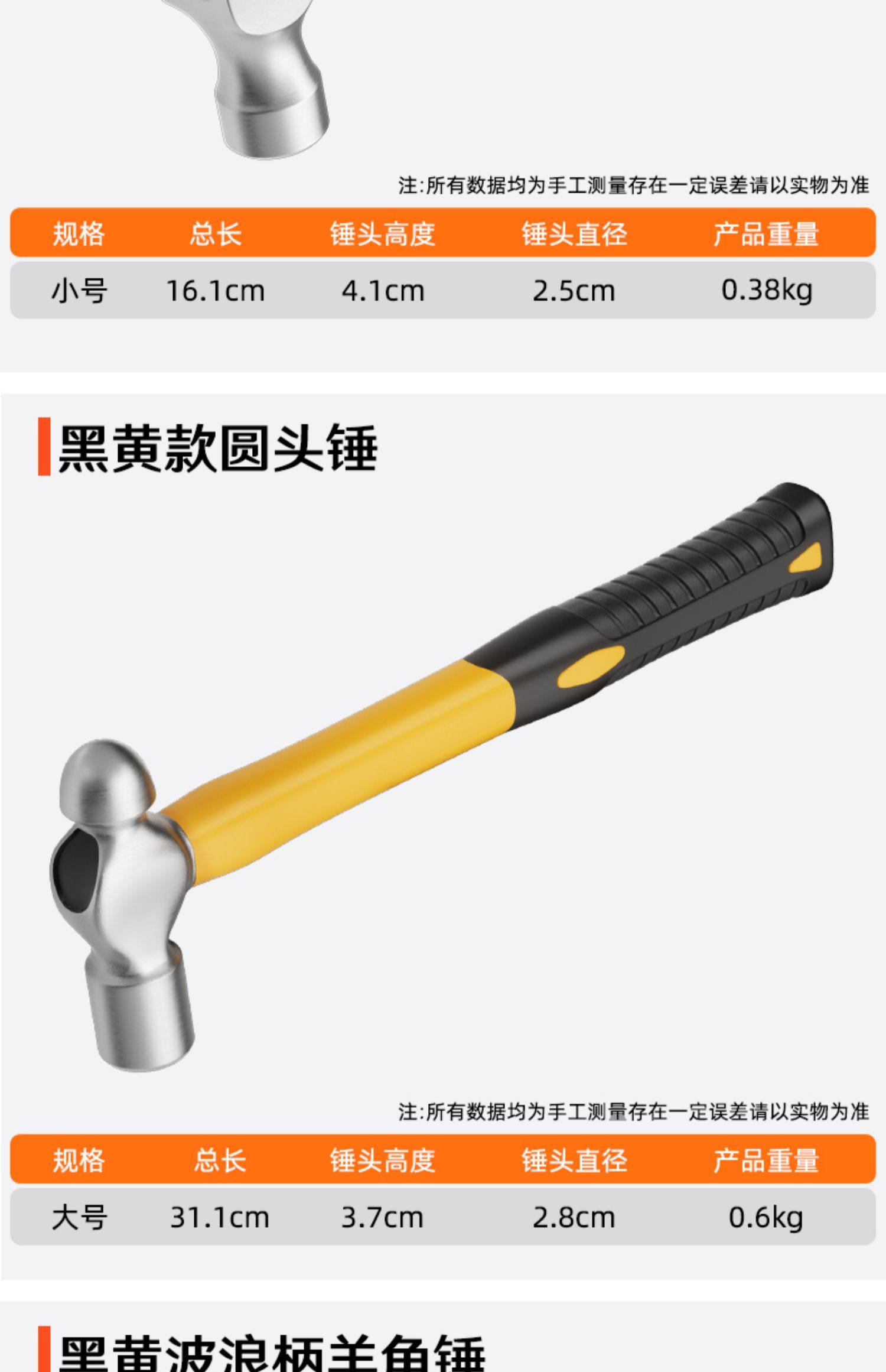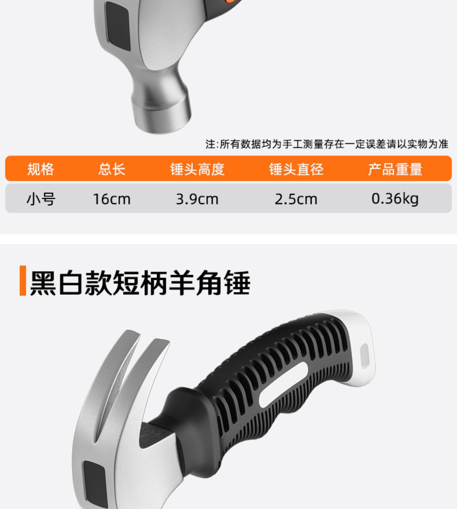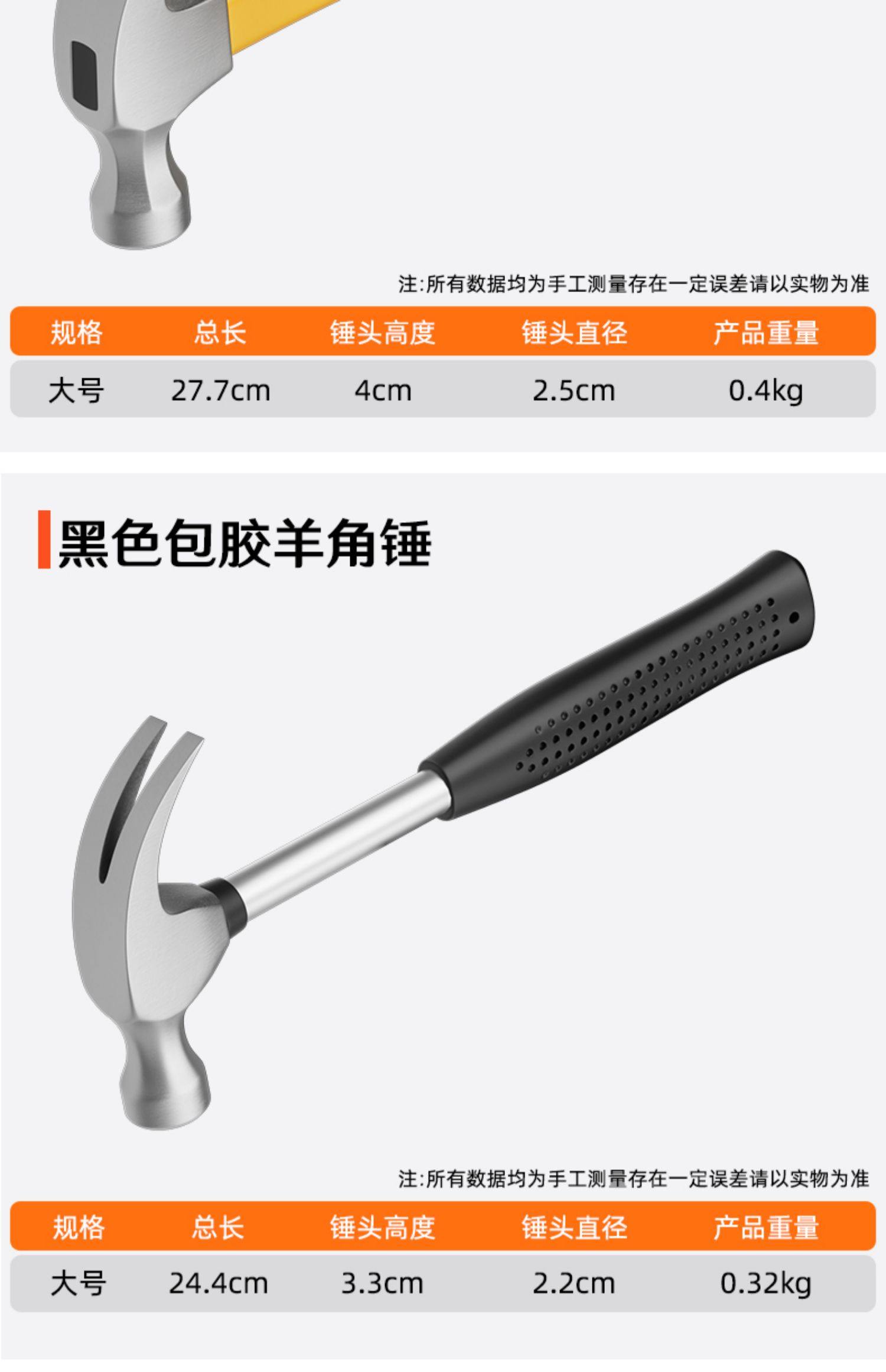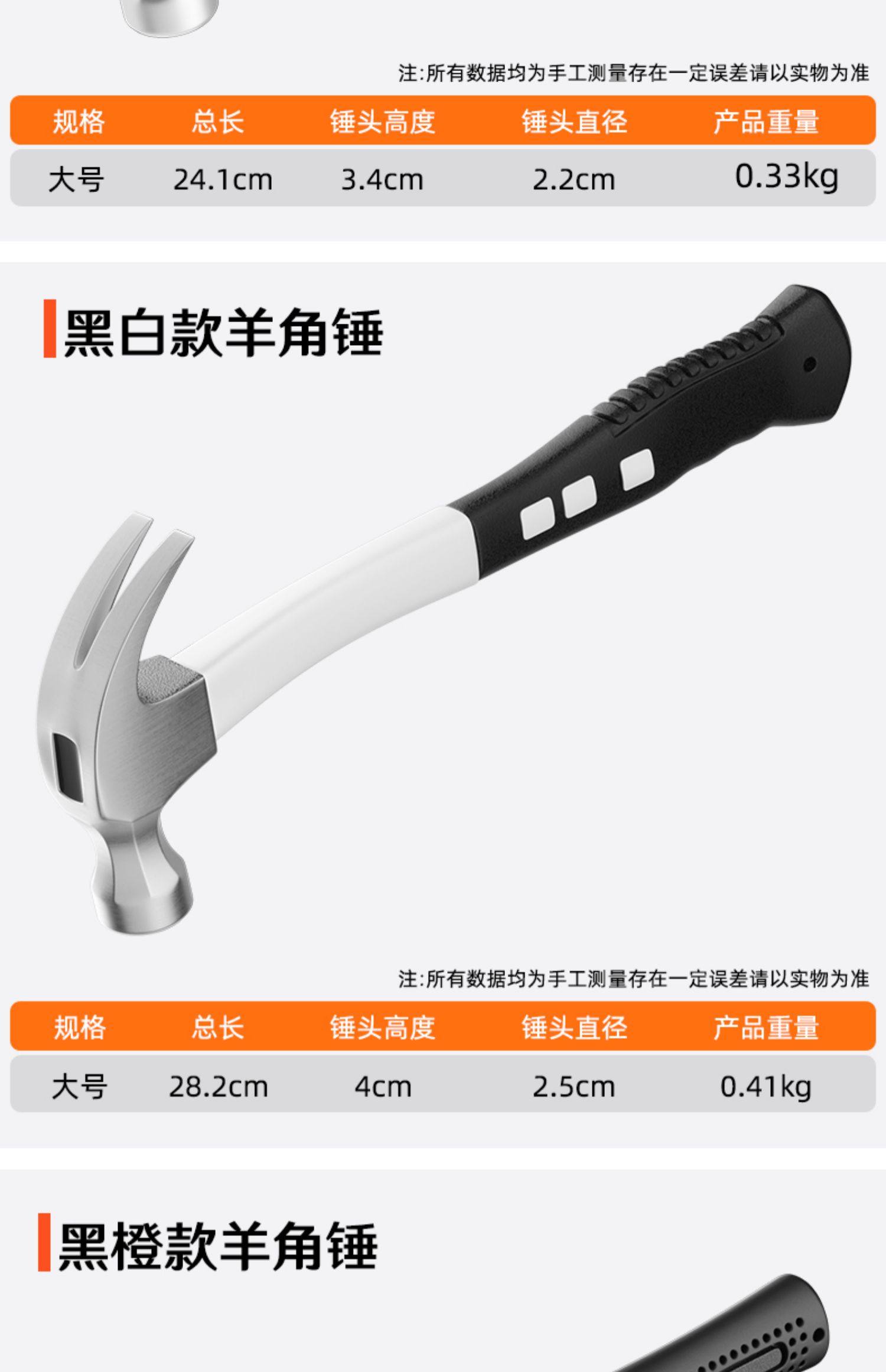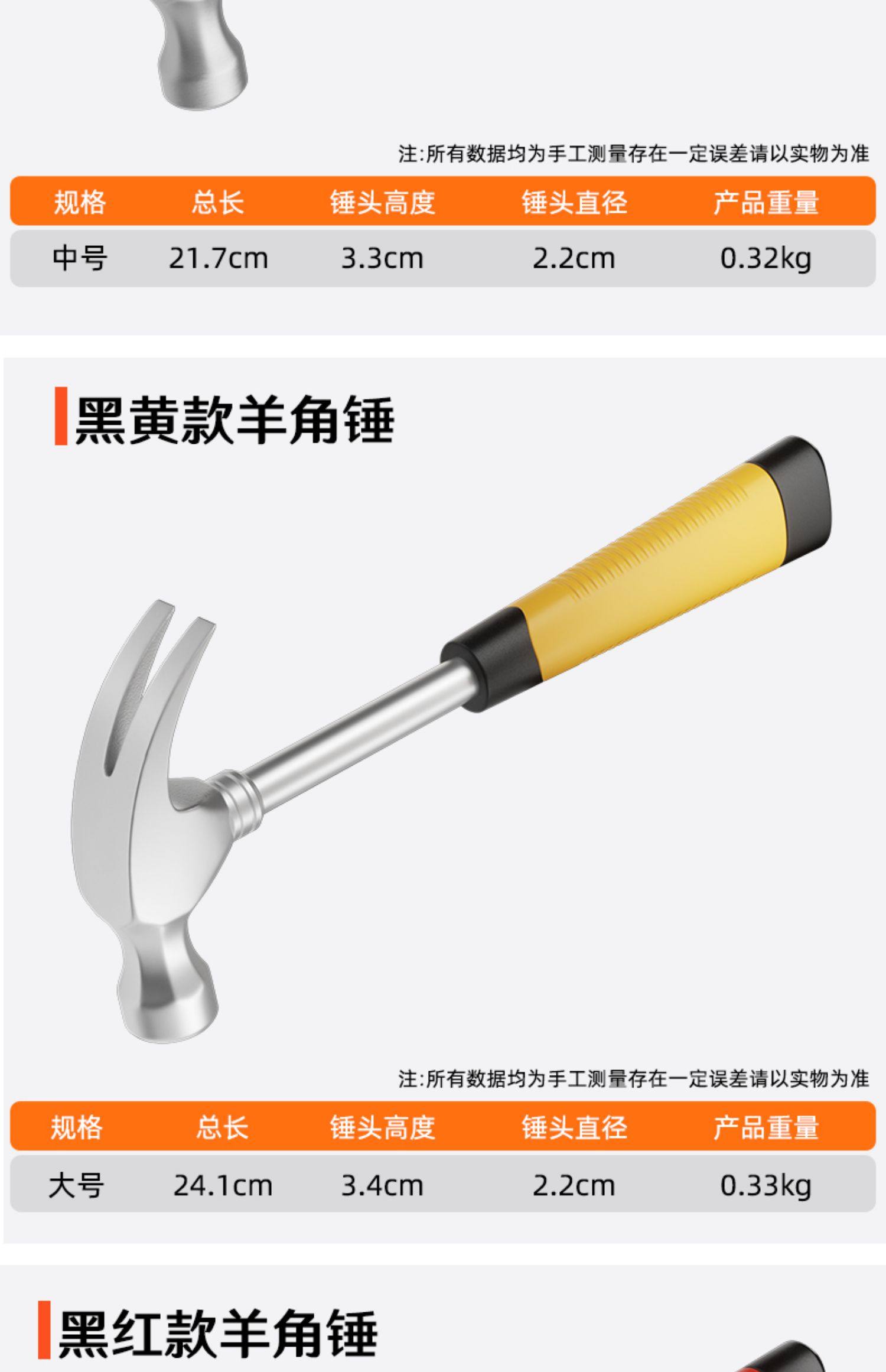 | Color Classification | [Short Handle]Mini Claw Hammer,[Upgraded Model]Mini Claw Hammer,[Black Rubberized]Steel Pipe Short Handle Claw Hammer,[Black Rubberized]Steel Pipe Long Handle Claw Hammer,[Red and Black Rubberized Chrome Plating]Steel Pipe Handle Claw Hammer,[Yellow and Black Rubberized Chrome Plating]Steel Pipe Handle Claw Hammer,[Finely Polished]Fiber Handle Claw Hammer,[Yellow and Black Rubberized Matte]Fiber Handle Claw Hammer,[Black and White Rubberized Matte]Fiber Handle Claw Hammer,[Finely Polished]Fiber Handle Round Head Hammer |
