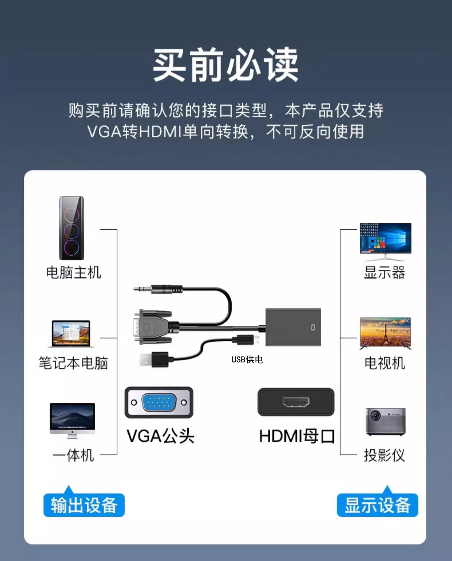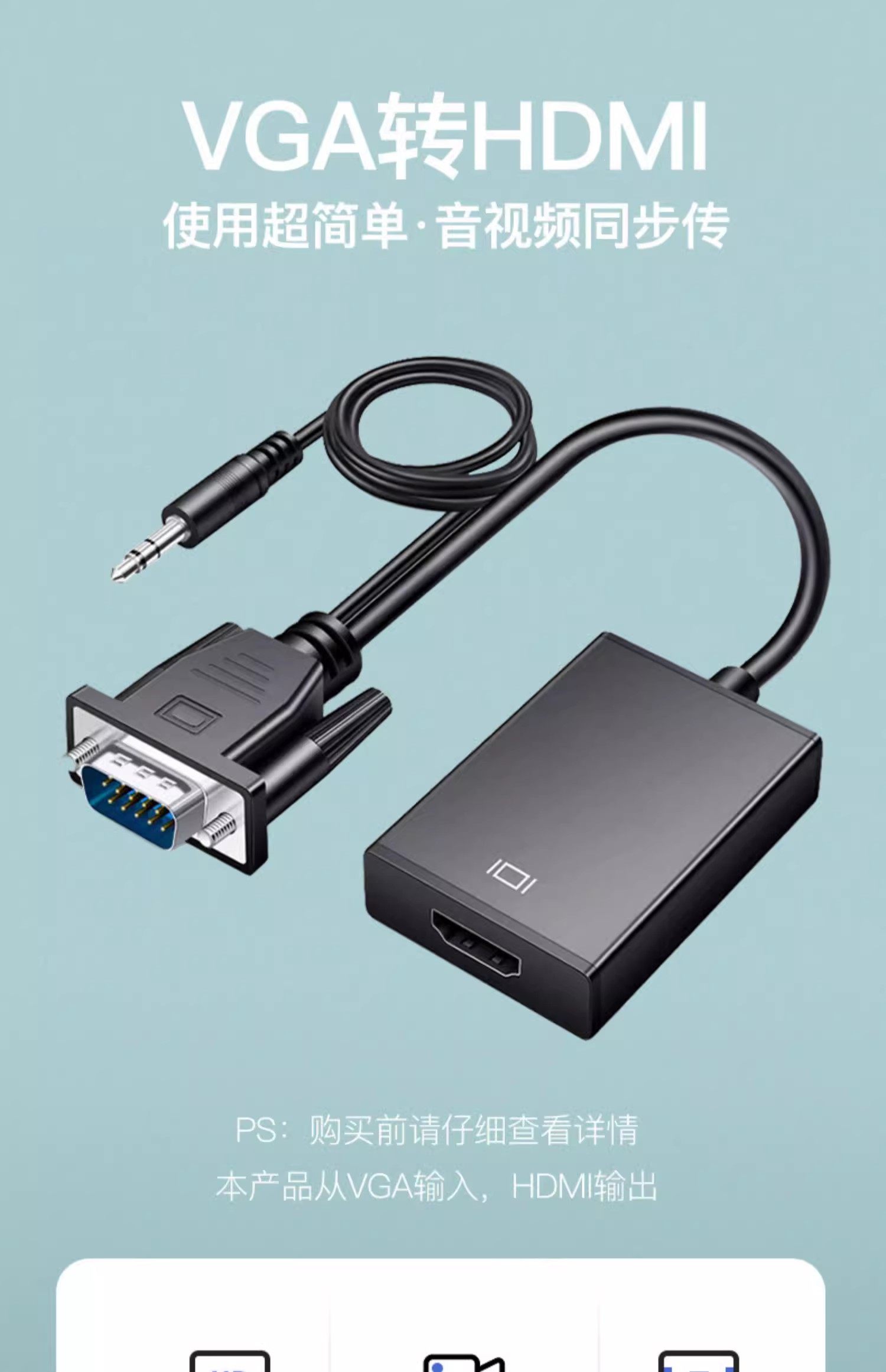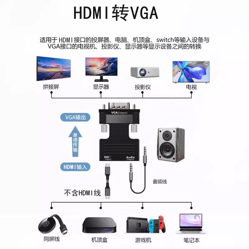 Vga to HDMI High-Definition Video Converter Computer Adapter Cable Tv with Audio Synchronization Tv Box Monitor