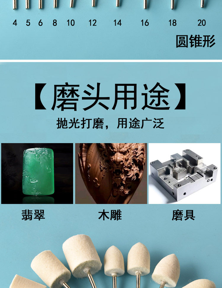 Wool Polishing Head, Air Grinding Pen, Polishing Head for Jade, Mirror Glass Polishing Tool, Wool Wheel, Abrasive Paste, Mold