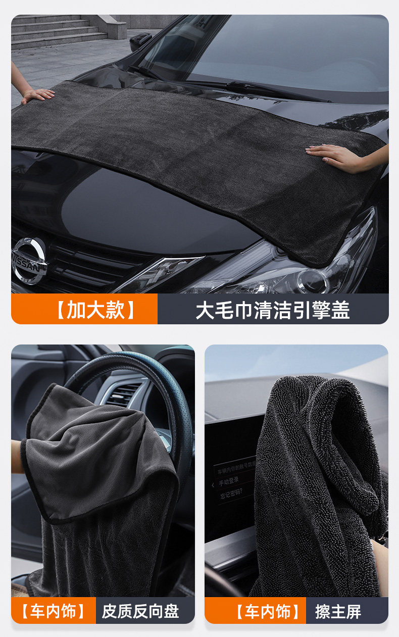 Large High-End Car Wash Towel, Absorbent and Thick, Does Not Shed Lint, Professional Car Cleaning Cloth