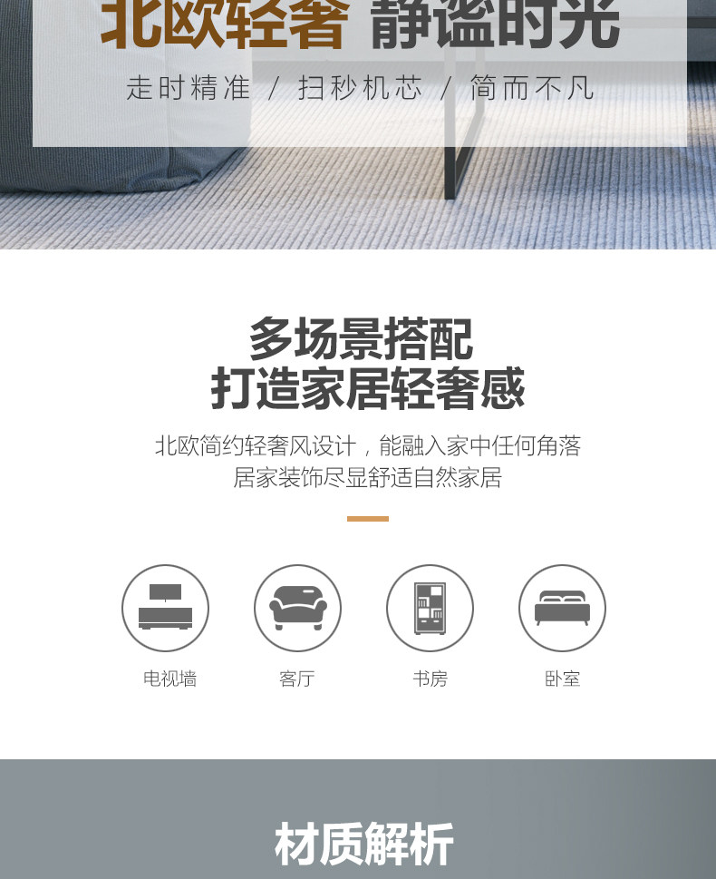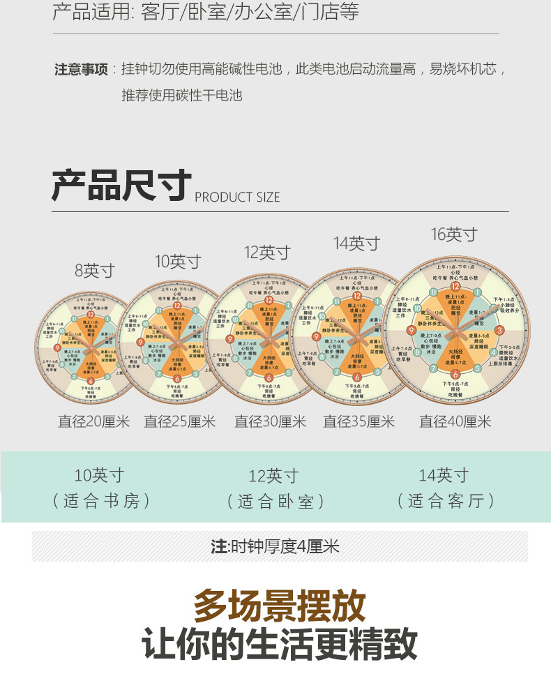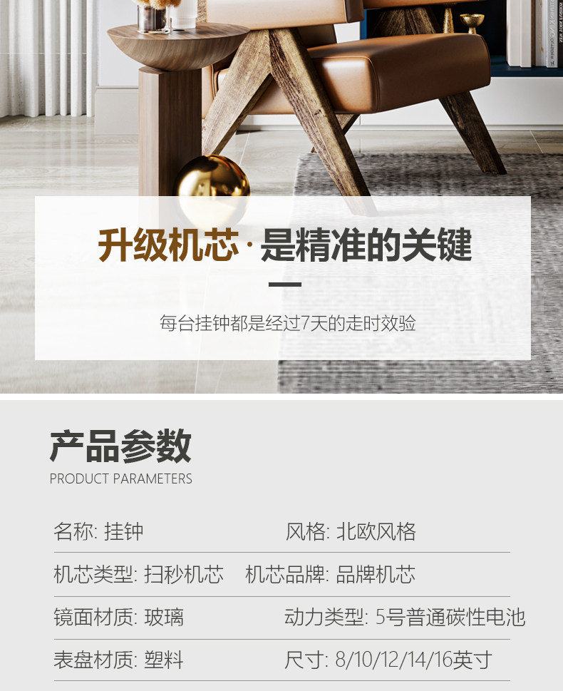 | Size | 8inch Diameter 20cm (Standard Movement Is Too Small),10inch Diameter 25cm (Standard Movement Suitable for Study Room),12inch Diameter 30cm (Standard Movement Suitable for Bedroom),14inch Diameter 35cm (Standard Movement Suitable for Living Room),16inch Diameter 40cm (Standard Movement, Hanging in the Living Room Is More Elegant),8inch Diameter 20cm (Swiss Movement, Accurate Travel Time),10inch Diameter 25cm (Swiss Movement, Accurate Travel Time),12inch Diameter 30cm (Swiss Movement, Accurate Travel Time),14inch Diameter 35cm (Swiss Movement, Accurate Travel Time),16inch Diameter 40cm (Swiss Movement, Accurate Travel Time),8inch Diameter 20cm (Radio Wave Movement, Automatic Time Adjustment),10inch Diameter 25cm (Radio Wave Movement, Automatic Time Adjustment),12inch Diameter 30cm (Radio Wave Movement, Automatic Time Adjustment),14inch Diameter 35cm (Radio Wave Movement, Automatic Time Adjustment),16inch Diameter 40cm (Radio Wave Movement, Automatic Time Adjustment) |