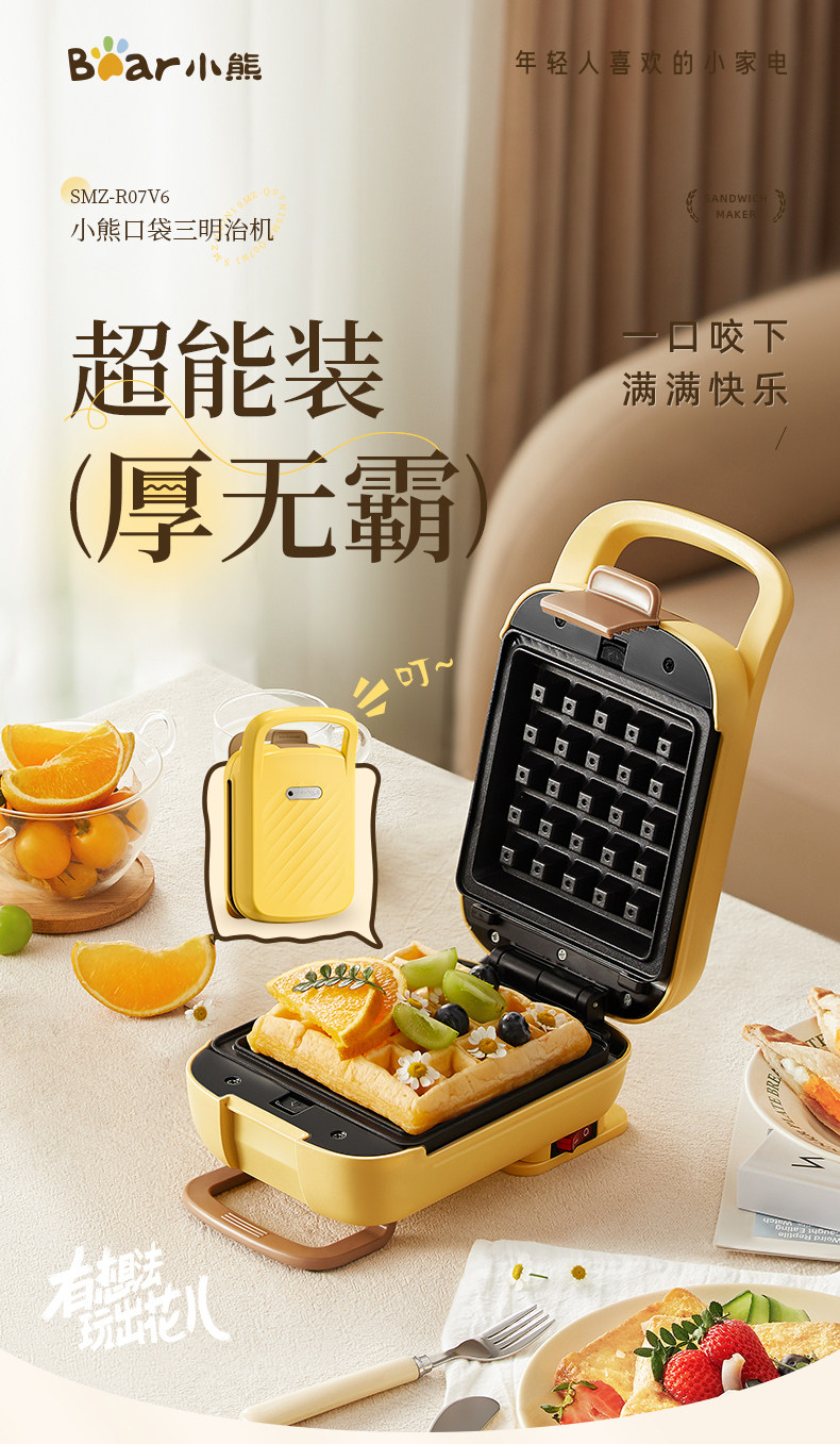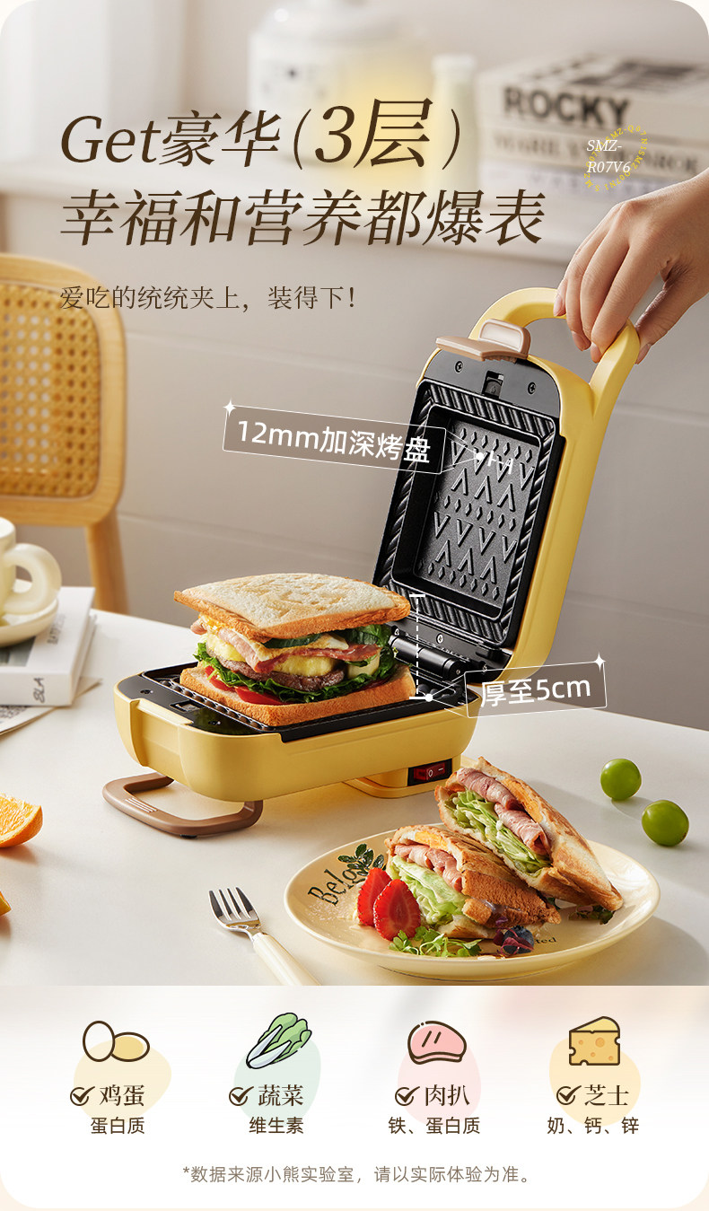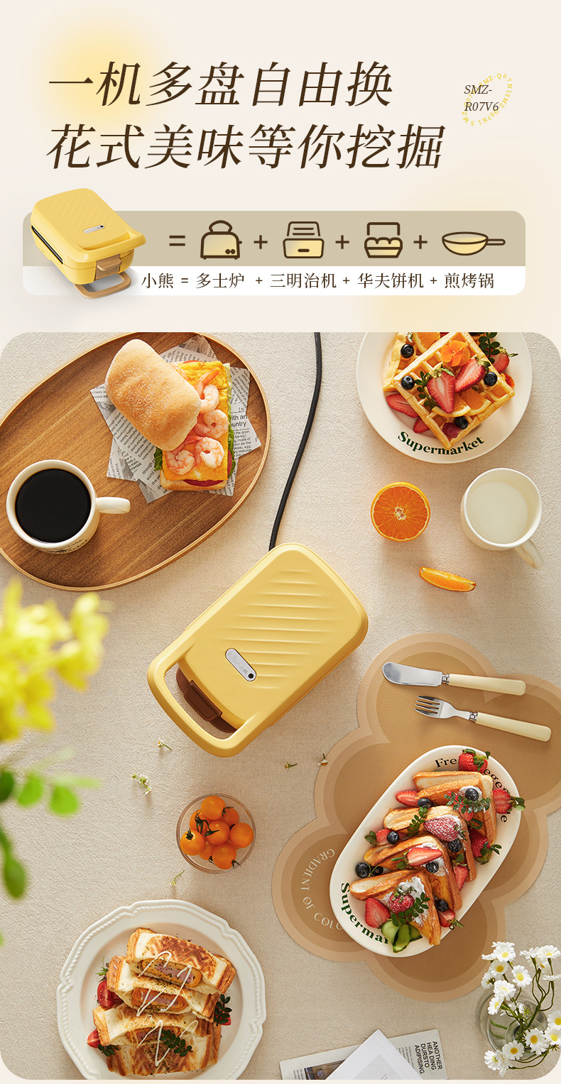 Bear Breakfast Machine Toaster for Home Use, Thickened Sandwich Maker, Multifunctional Bread Toaster, Waffle Maker