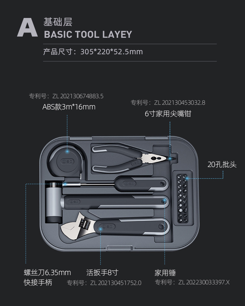 | Color Classification | Y3-Abe (Manual Set + Large Storage Layer),Y4-Abde (Manual Set + Large and Small Storage Layers),Y3-Abj (Manual + Angle Grinding Layer),Y3-Abw (Home Version Set),Y4-Abwd (Home Version + Small Storage Layer),Y4-Abwe (Home Version + Large Storage Layer),Y5-Abwde (Home Version + Large and Small Storage Layers),Y4-Abwj (Home Version + Electric Grinding Layer),Y5-Abwje (Home Version + Electric Grinding Layer + Large Storage Layer),Independently Developed, Every Piece Is a Masterpiece,Y3-Abc (Classic Electric Drill Set),Y4-Abce (Classic Electric Drill + Large Storage Layer),Y5-Abcde (Classic Electric Drill + Large and Small Storage Layers),Y4-Abcj (Classic Electric Drill + Electric Grinding Layer),Y5-Abcje (Classic Version + Electric Grinding Layer + Large Storage Layer),Y2-Zb (Electric Batch High-End Set),Y3-Zbc (Professional Player Set),Y4-Zbcj (Professional Player Kit + Electric Grinding Layer),Y5-Zbcje (Professional Player A+ Electric Grinding Layer + Large Storage Layer),Y3-Abh (Manual Set + Cleaning Set),Y4-Abwh (Home Version + Cleaning Layer),Y5-Abweh (Home Version + Cleaning Layer + Large Storage Layer),Y8-Abwdejhy (Family Version Family Portrait),Y4-Abch (Classic Electric Drill + Cleaning Layer),Y8-Abcdejhy (Classic Family Portrait),Y3-Zbh (Electric Batch + Cleaning Set),Y8-Zbcdejhy(Family Portrait Plus),Y3-Abw (Home Version Set),Y4-Abwd (Home Version + Small Storage Layer) |