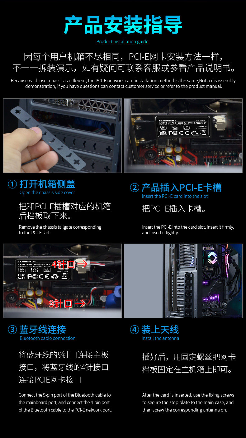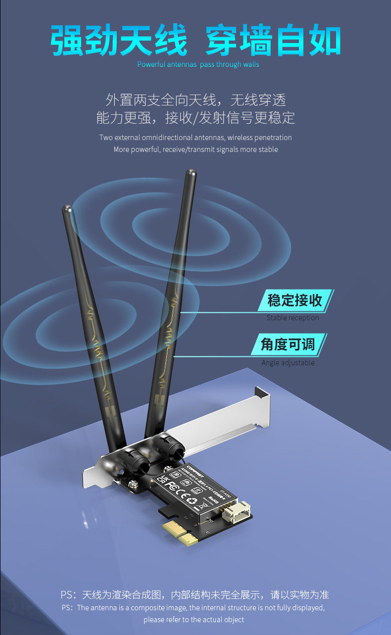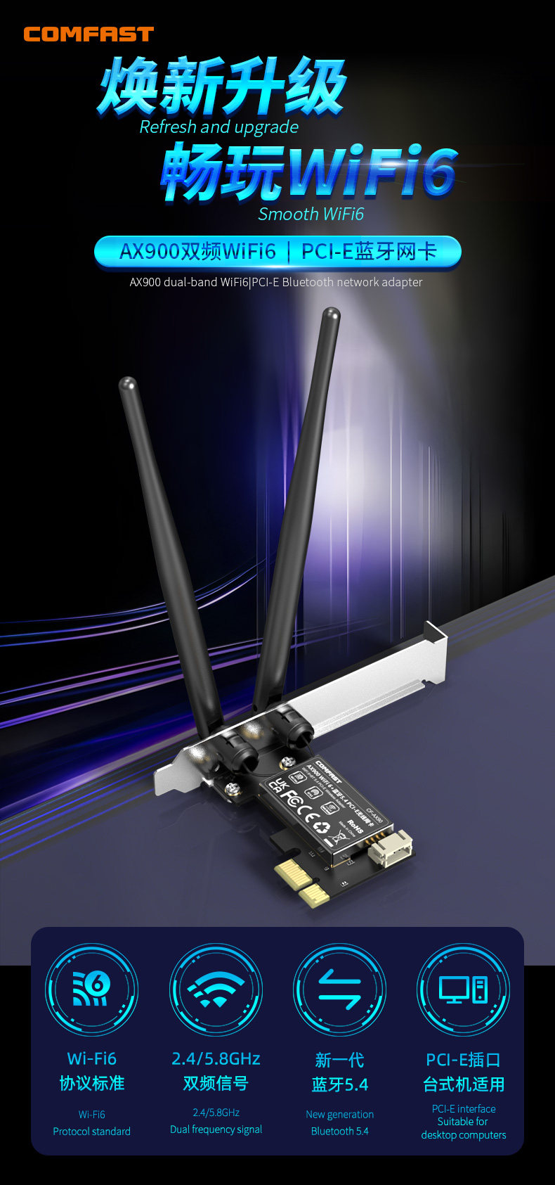 Comfast Desktop Pcie Wireless Network Card Wifi6 Dual-Band 5g High-Speed Bluetooth 5.4 Wifi Receiver Two-In-One Desktop Built-In Network Card Cf-Ax90