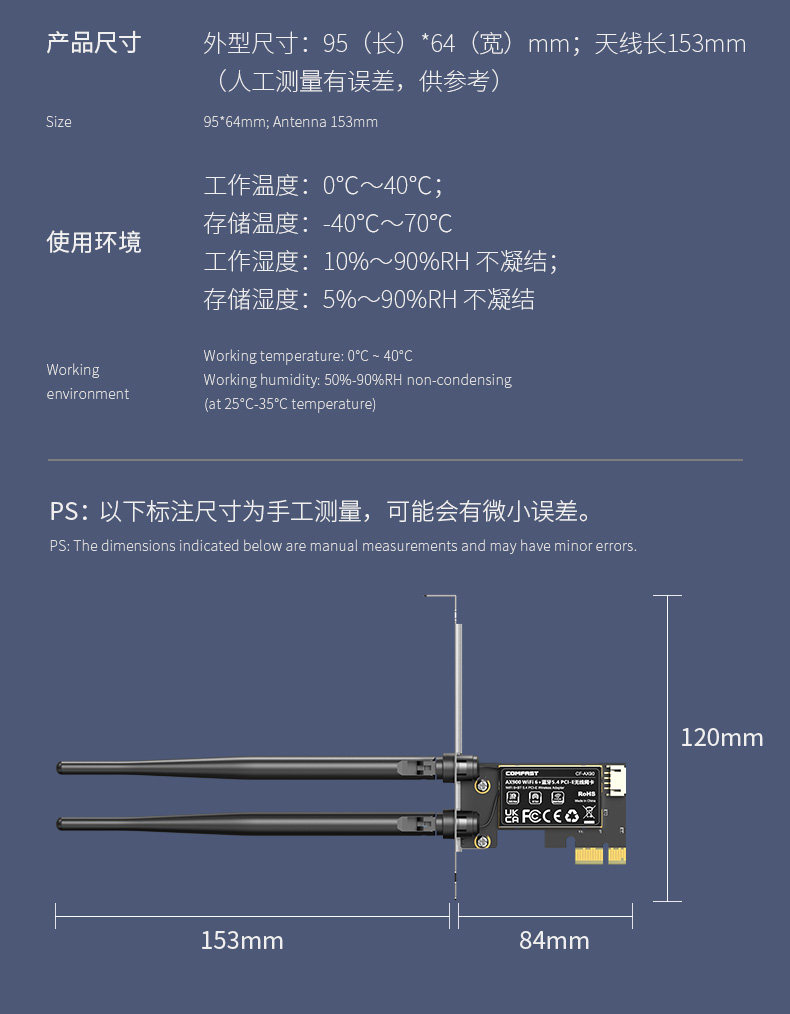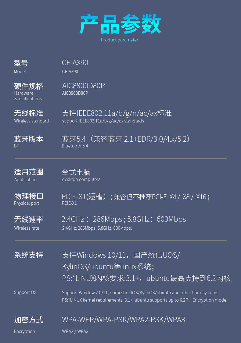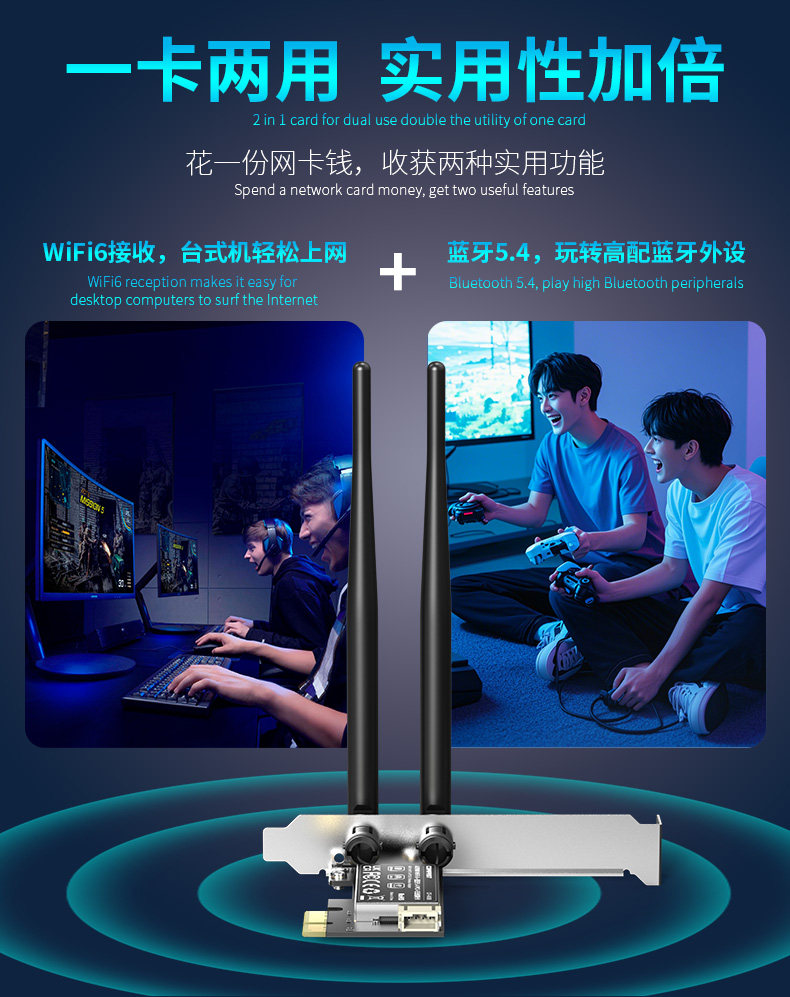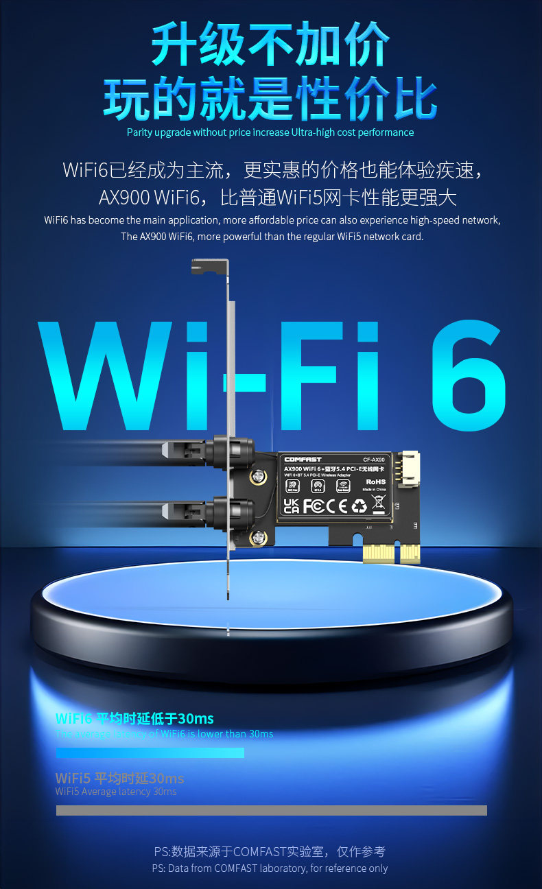 Comfast Desktop Pcie Wireless Network Card Wifi6 Dual-Band 5g High-Speed Bluetooth 5.4 Wifi Receiver Two-In-One Desktop Built-In Network Card Cf-Ax90