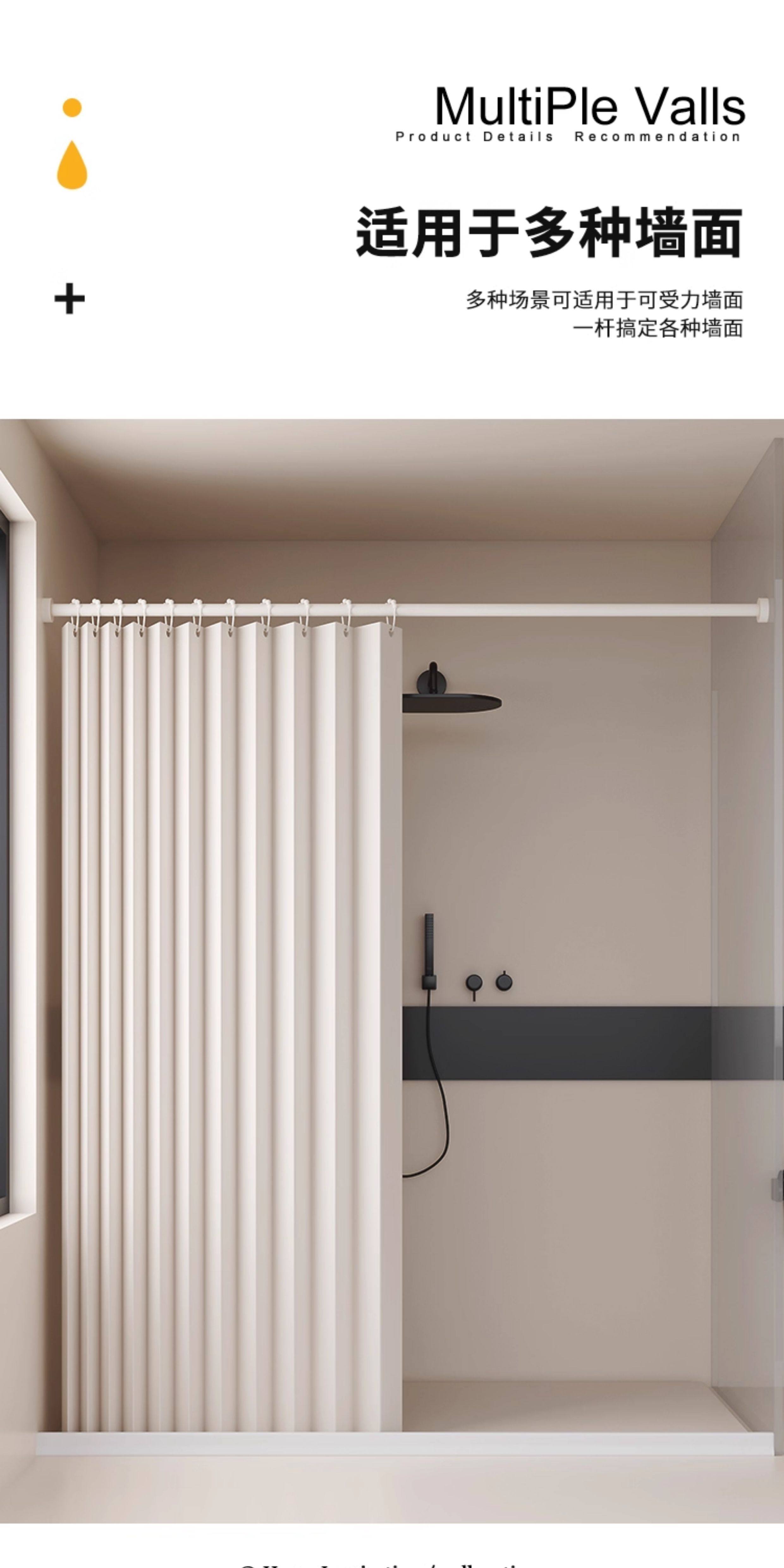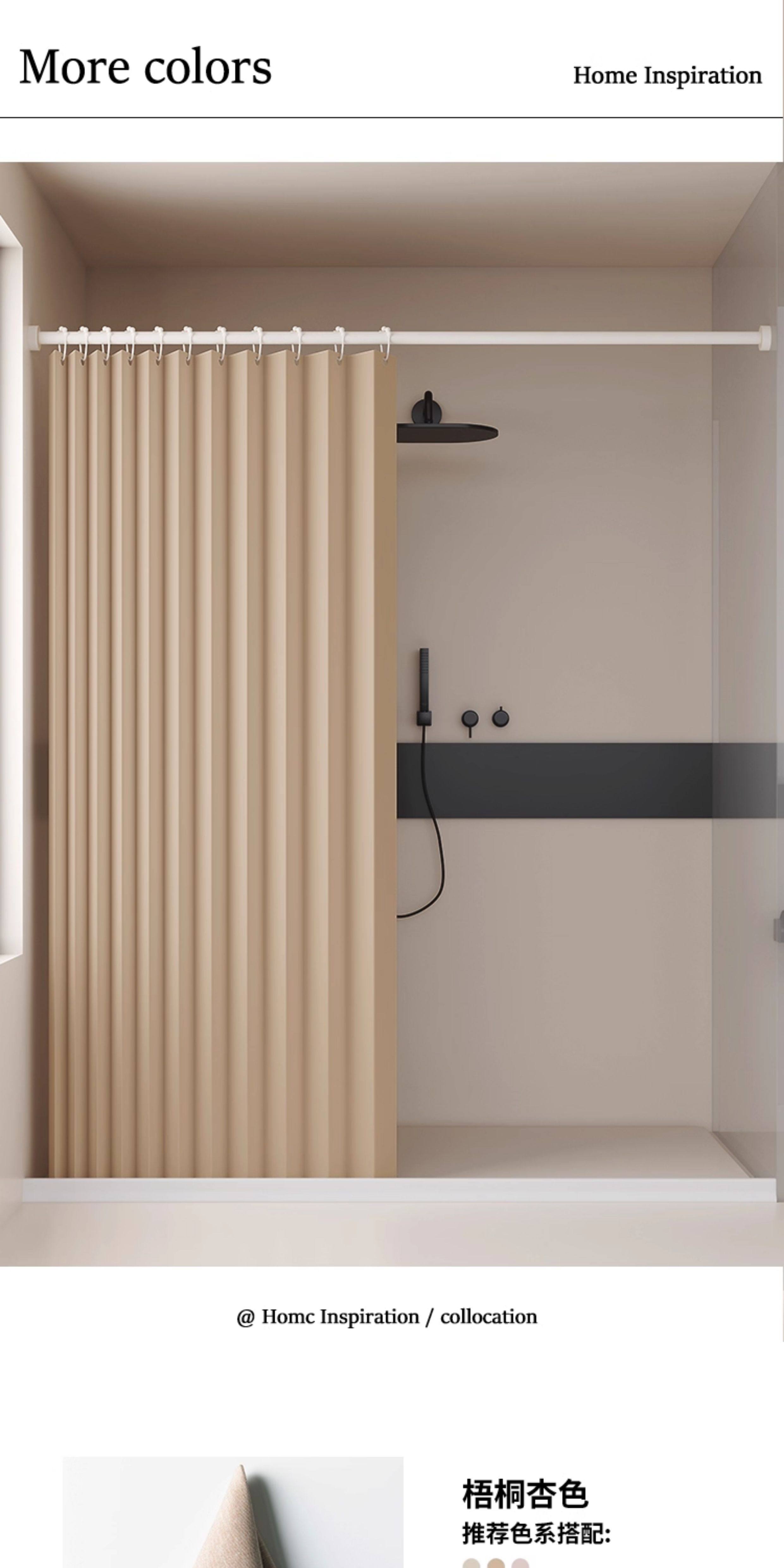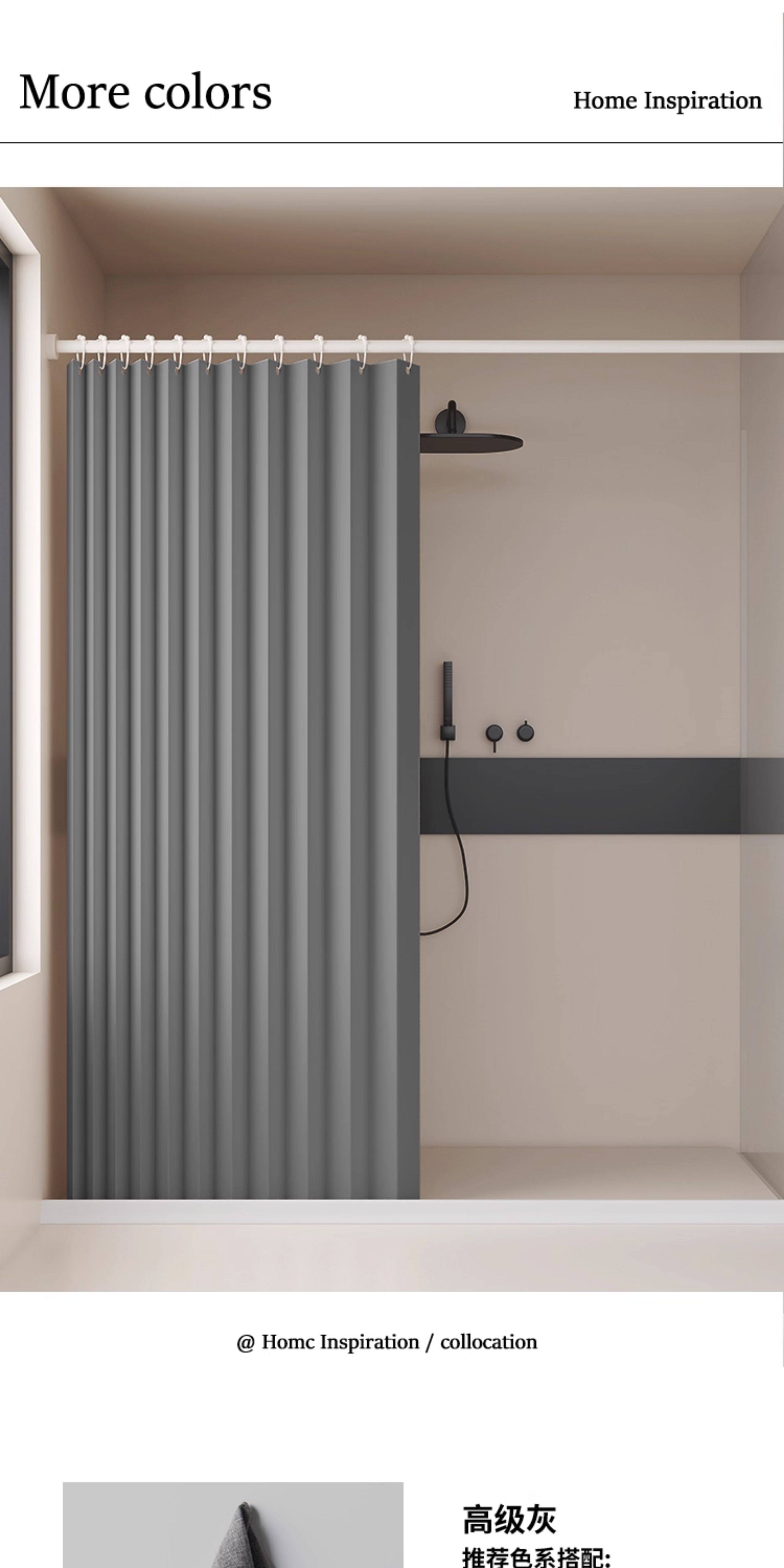 Bathroom Partition Shower Curtain, No-Drill Folding Waterproof Fabric, Mildew-Proof, High-End Bathroom Shower Curtain for Dry and Wet Separation
