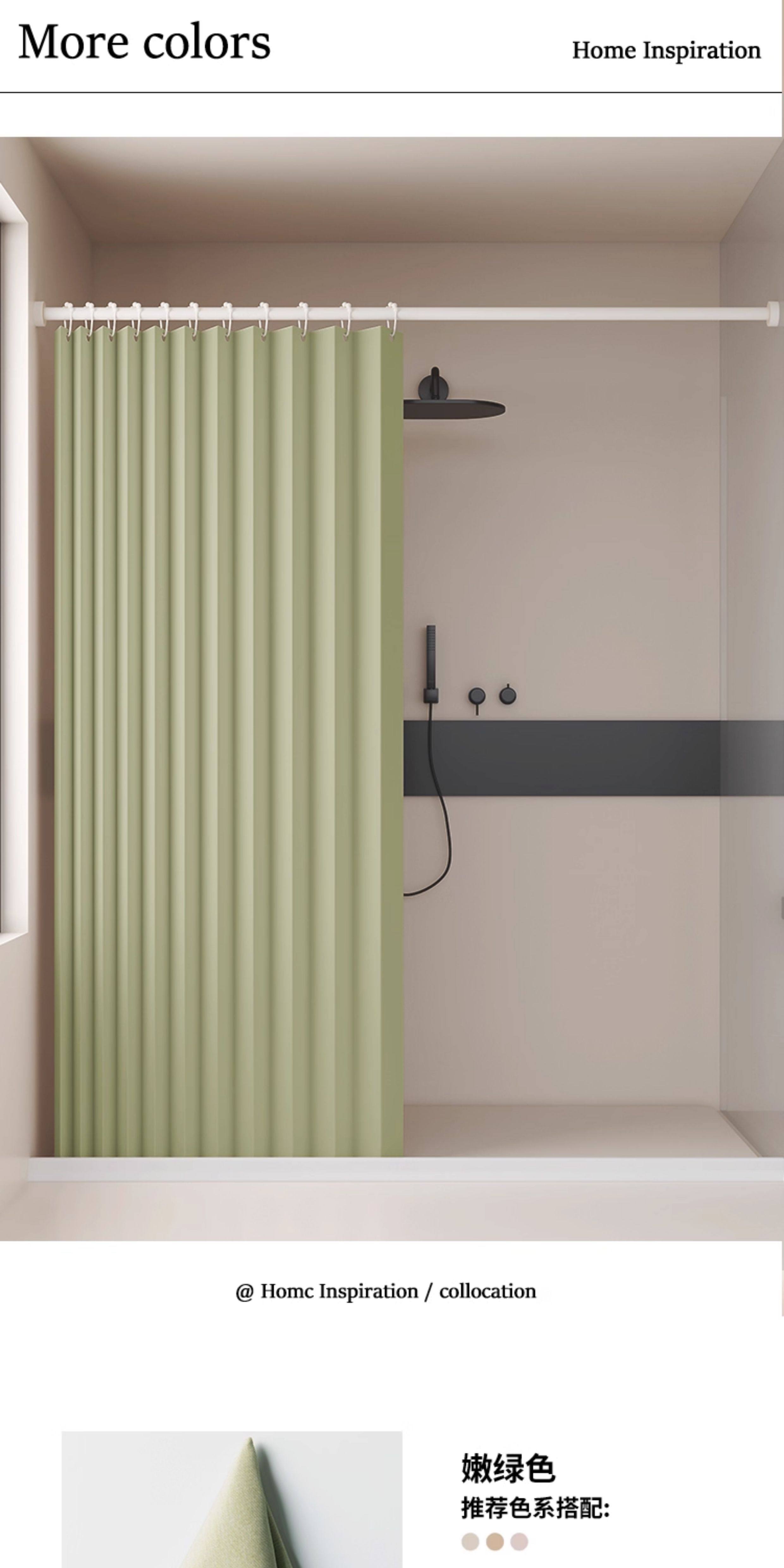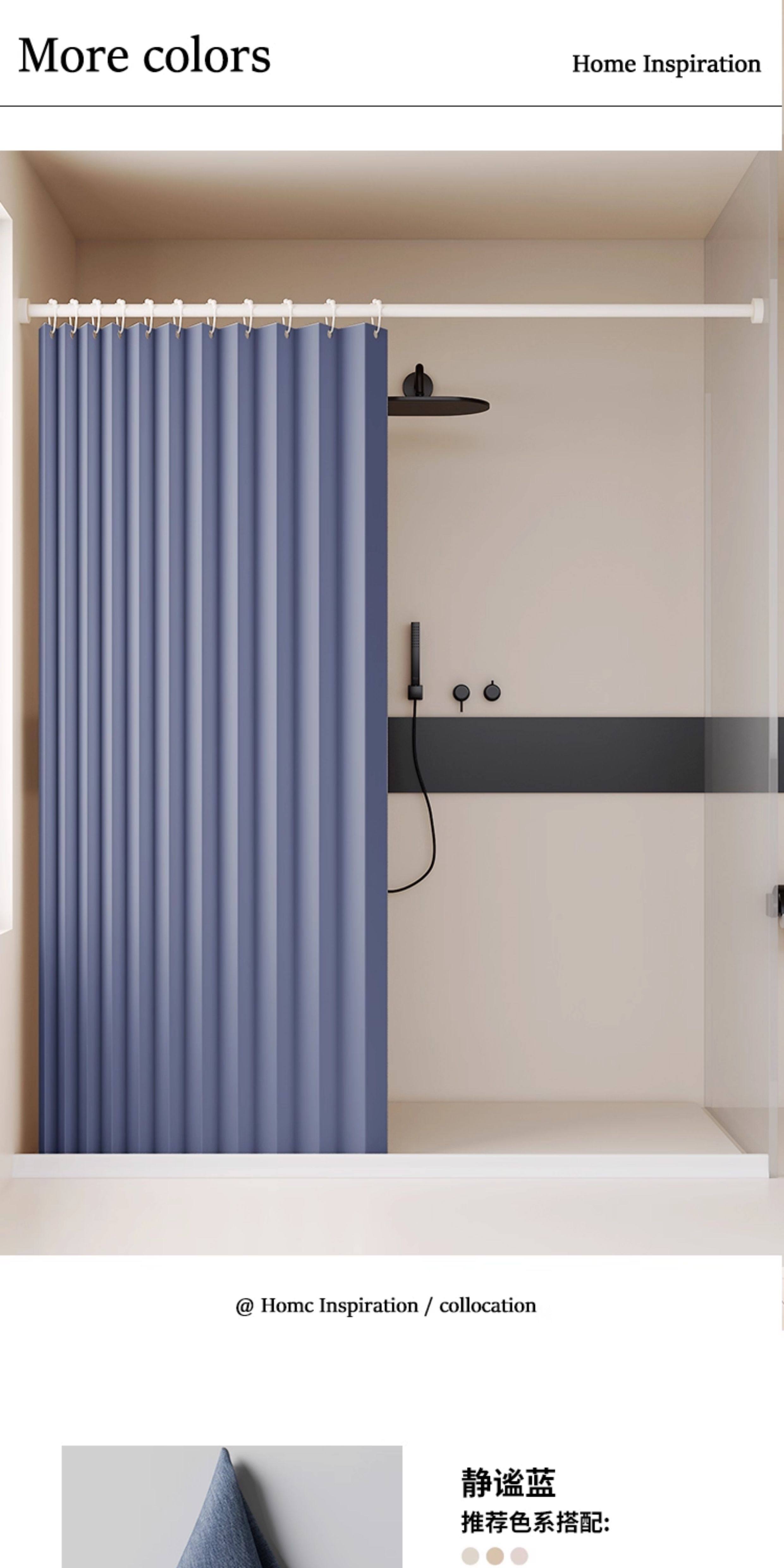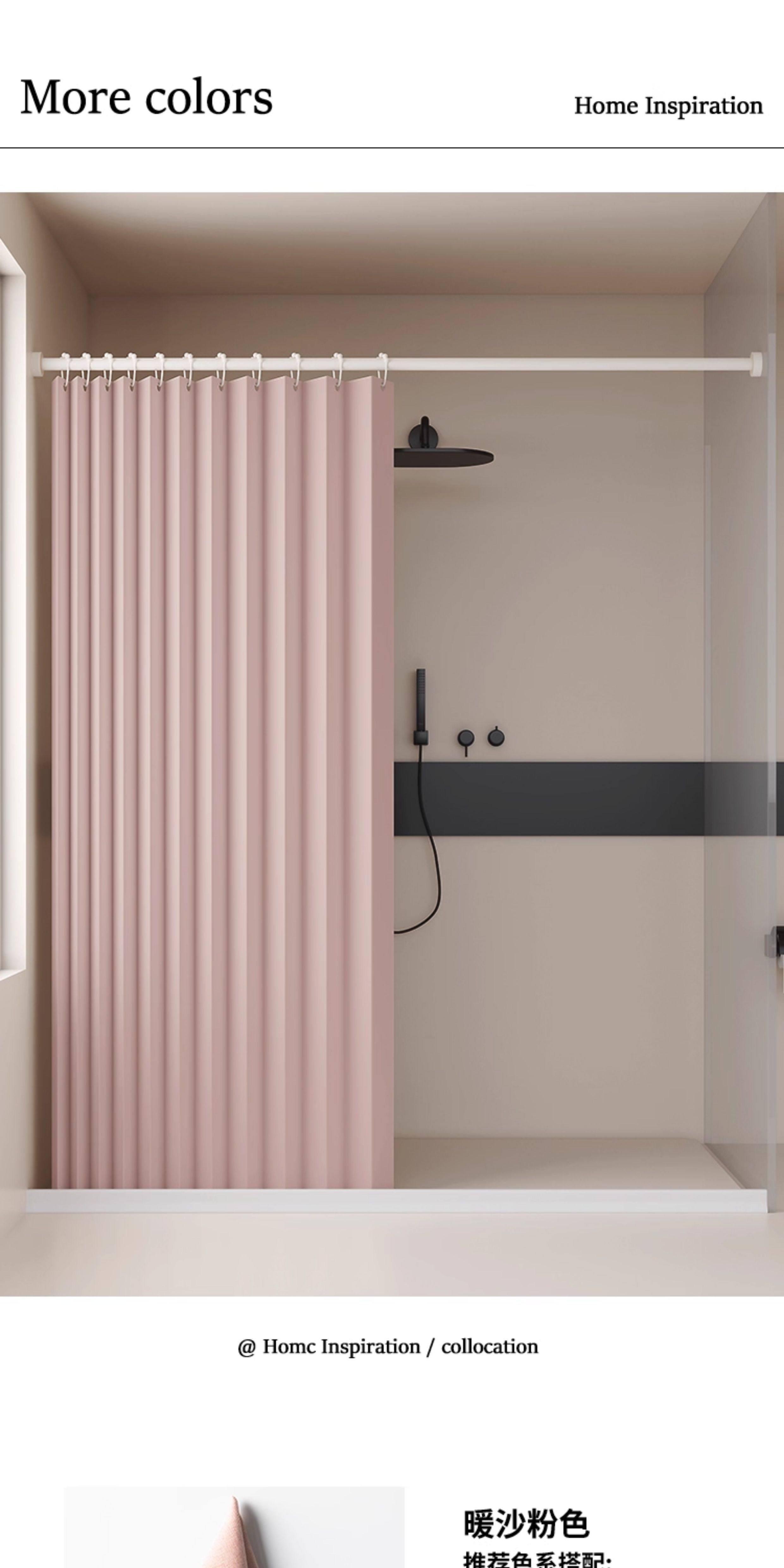 Bathroom Partition Shower Curtain, No-Drill Folding Waterproof Fabric, Mildew-Proof, High-End Bathroom Shower Curtain for Dry and Wet Separation