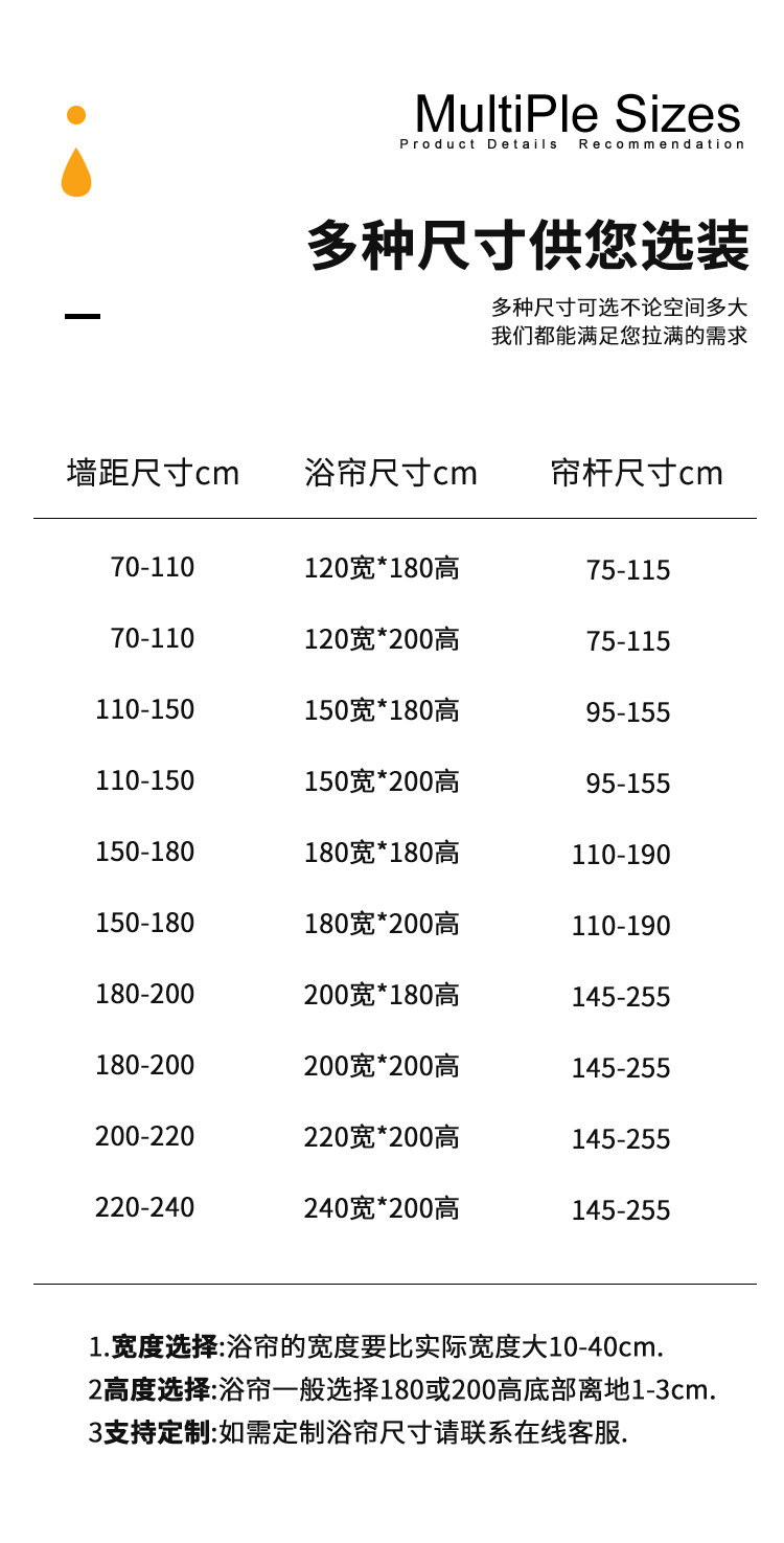 | Size | Suitable for 50-80cm Wall Distance[Curtain Width 80*Height 180cm],Suitable for 50-80cm Wall Distance[Curtain Width 80*Height 200cm],Suitable for 80-100cm Wall Distance[Curtain Width 100*Height 180cm],Suitable for 80-100cm Wall Distance[Curtain Width 100*Height 200cm],Suitable for 100-120cm Wall Distance[Curtain Width 120*Height 180cm],Suitable for 100-120cm Wall Distance[Curtain Width 120*Height 200cm],Suitable for 120-150cm Wall Distance[Curtain Width 150*Height 180cm],Suitable for 120-150cm Wall Distance[Curtain Width 150*Height 200cm],Suitable for 150-180cm Wall Distance[Curtain Width 180*Height 180cm],Suitable for 150-180cm Wall Distance[Curtain Width 180*Height 200cm],Suitable for 180-200cm Wall Distance[Curtain Width 200*Height 180cm],Suitable for 180-200cm Wall Distance[Curtain Width 200*Height 200cm],Suitable for 200-220cm Wall Distance[Curtain Width 220*Height 180cm],Suitable for 200-220cm Wall Distance[Curtain Width 220*Height 200cm],Suitable for 220-240cm Wall Distance[Curtain Width 240*Height 180cm],Suitable for 220-240cm Wall Distance[Curtain Width 240*Height 200cm] |