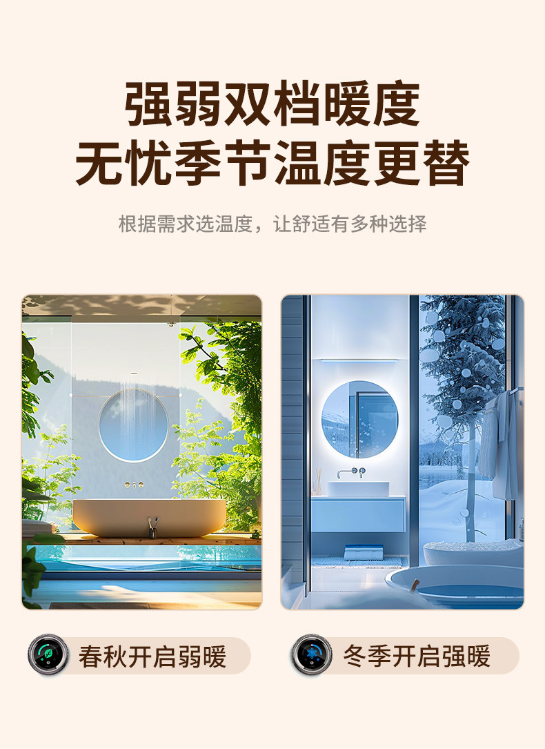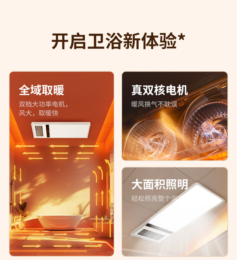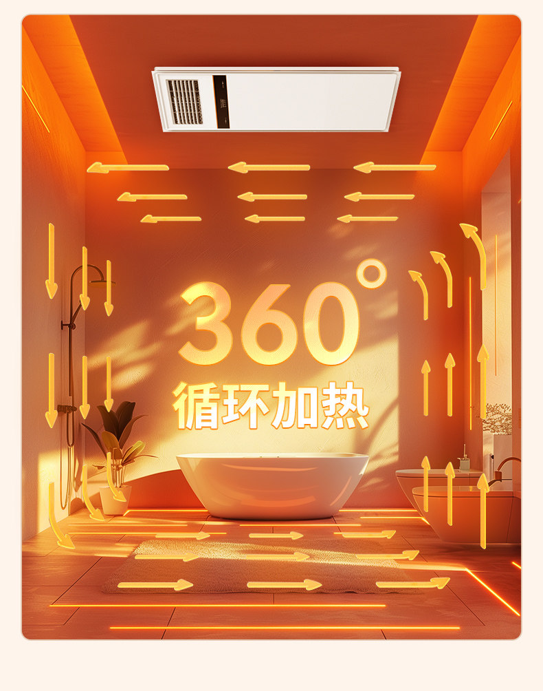 High-Power Air-Heating Bathroom Heater with Integrated Ceiling Light, Dual-Speed Heating, Blower, Ventilation, and Lighting All-In-One Warm Air Fan