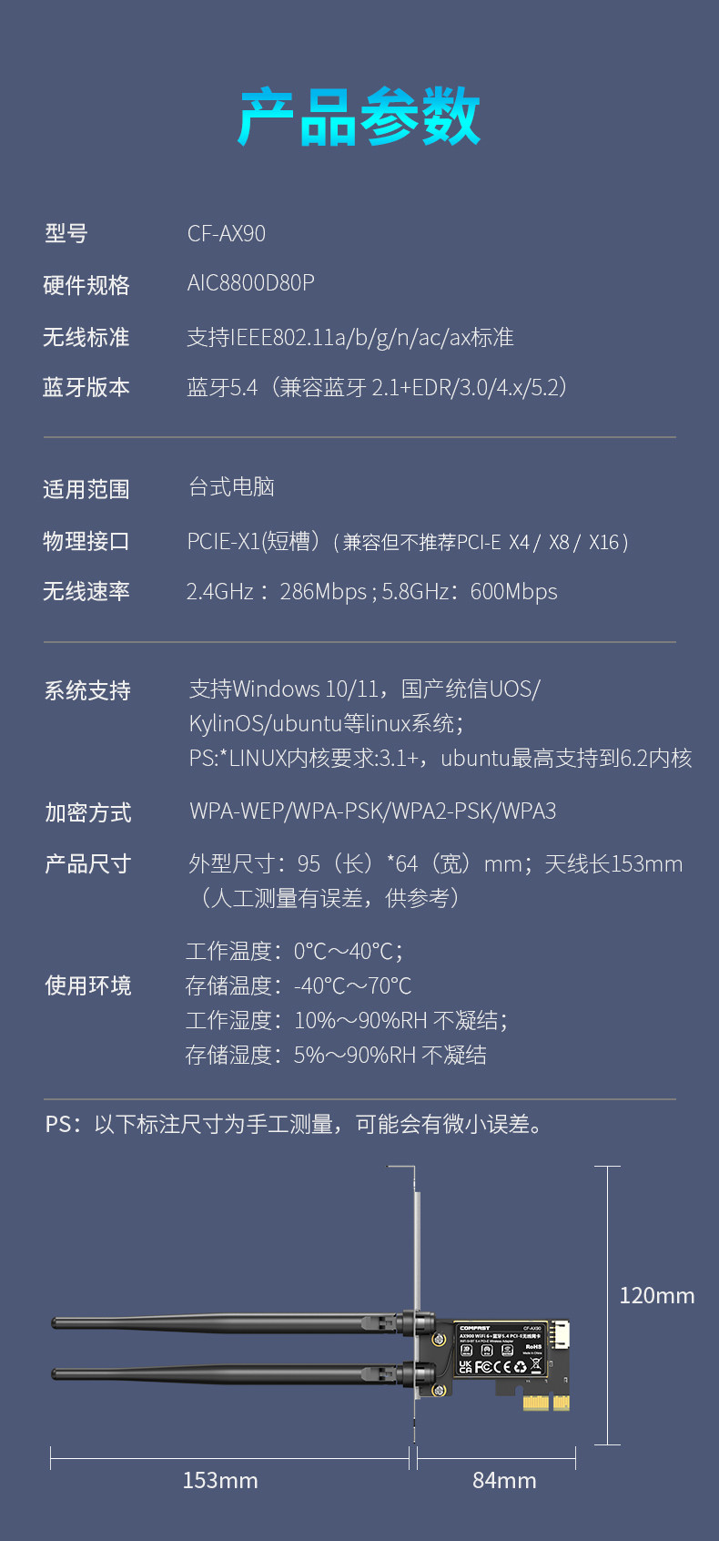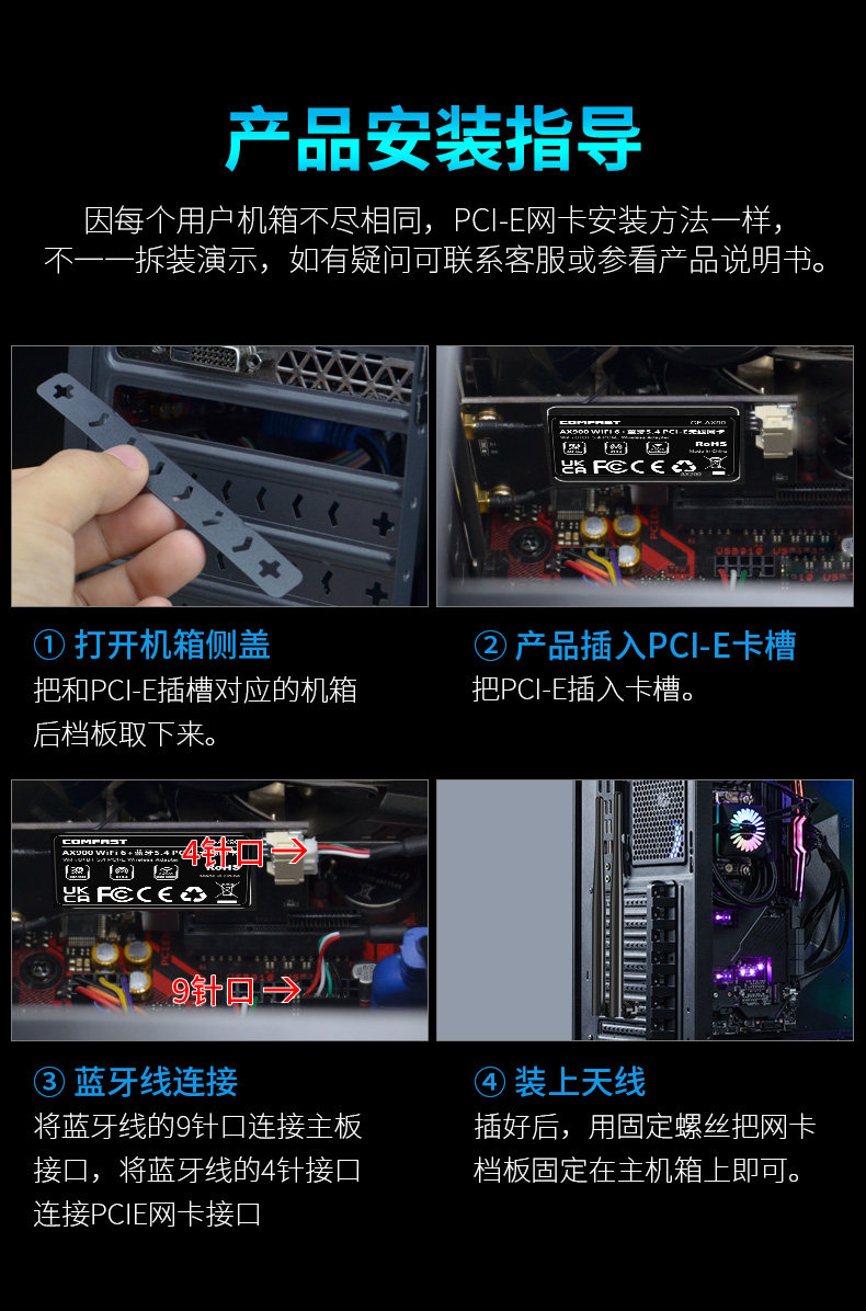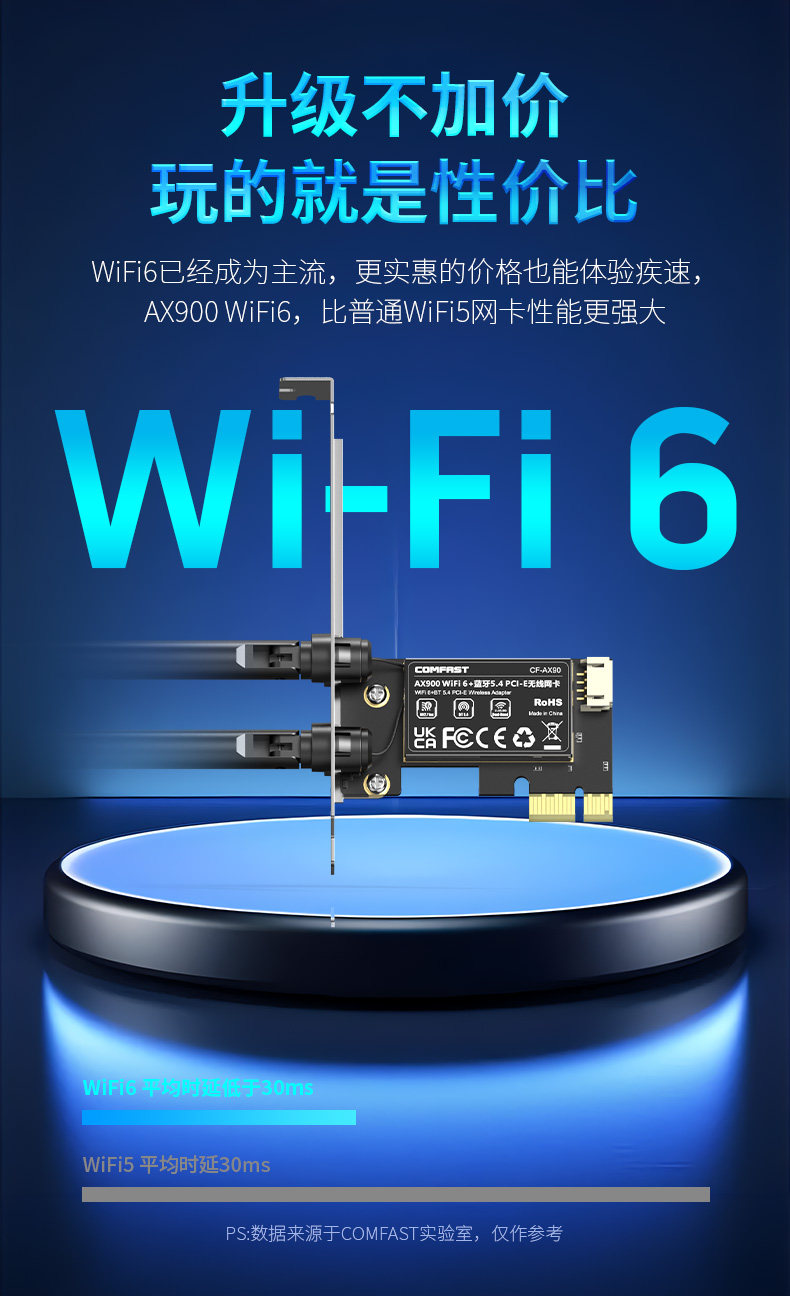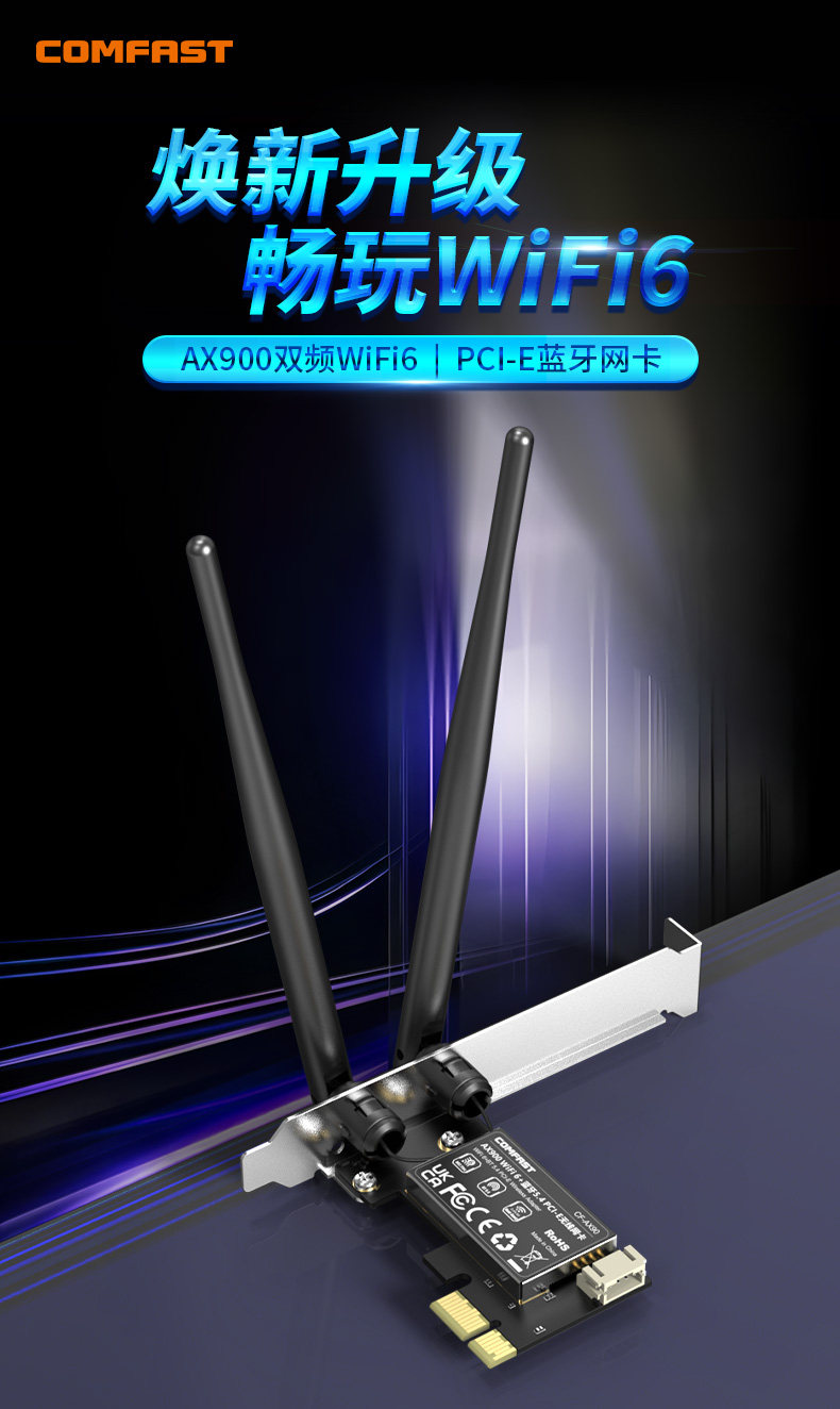 Comfast Cf-Ax90 Wireless Network Card Pcie Desktop Wifi6 Dual-Band 5g Gigabit 900m Bluetooth 5.4 Desktop Built-In Pcie Interface Wifi Signal Receiver Connects to Hotspot