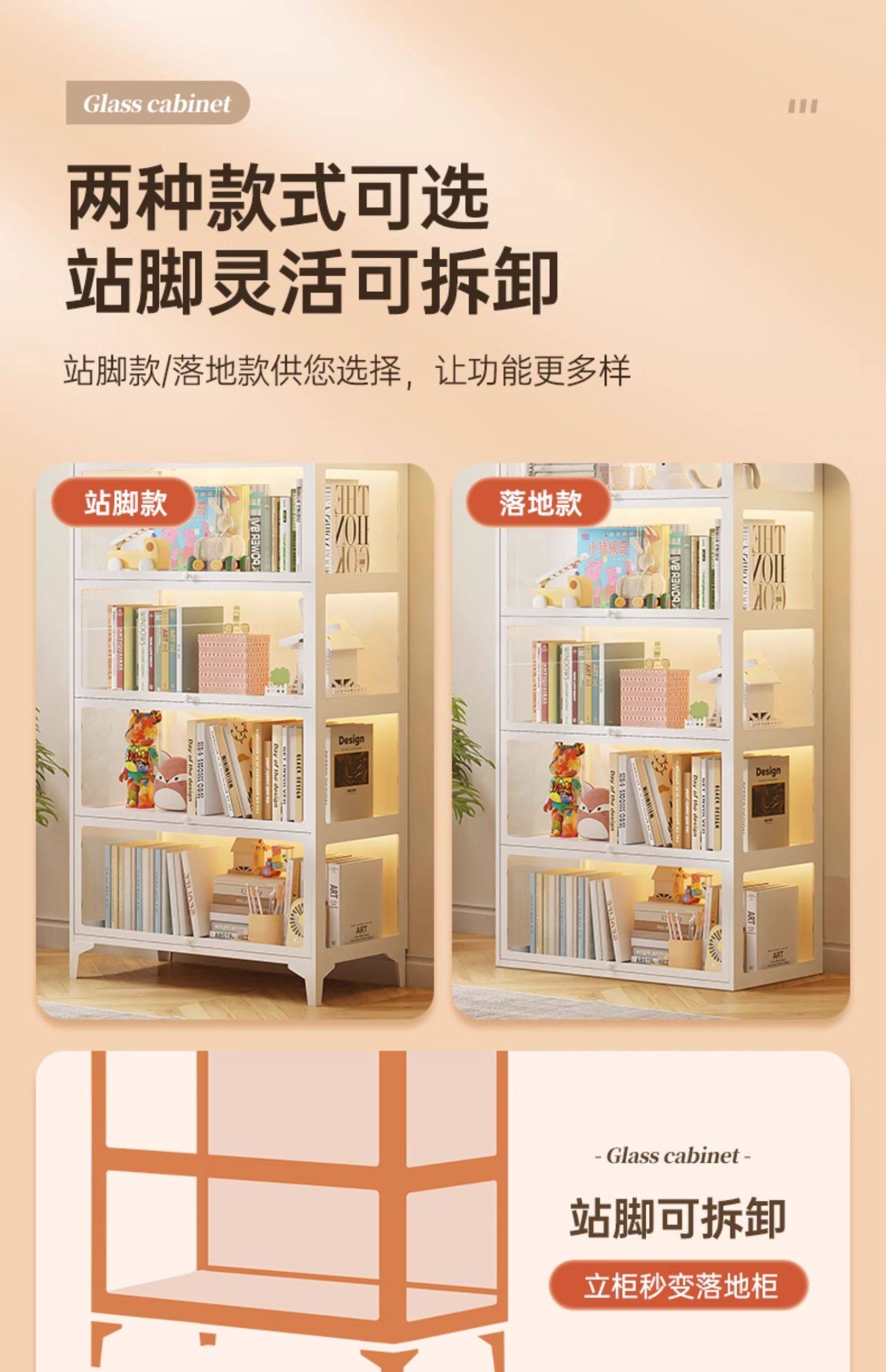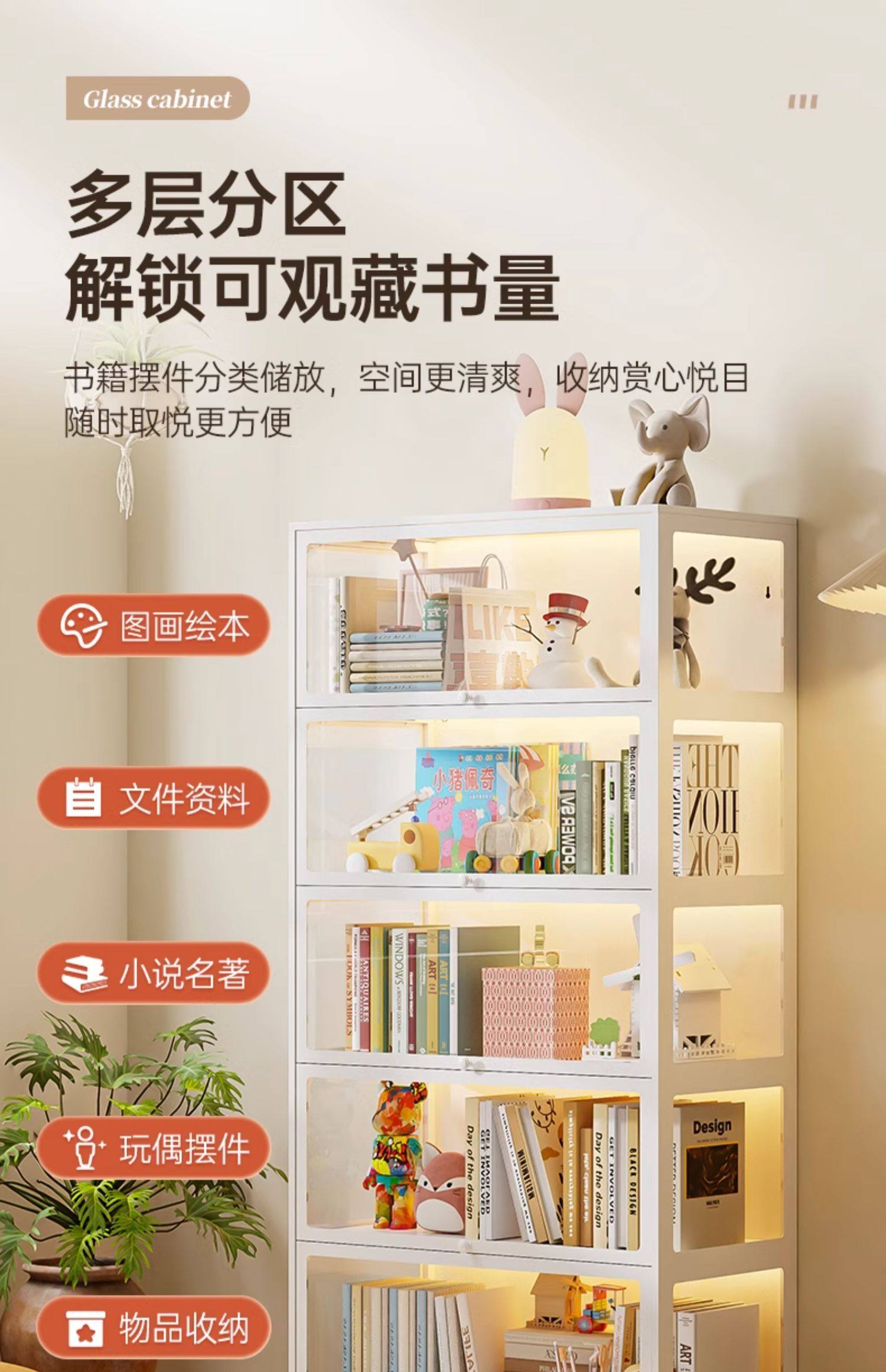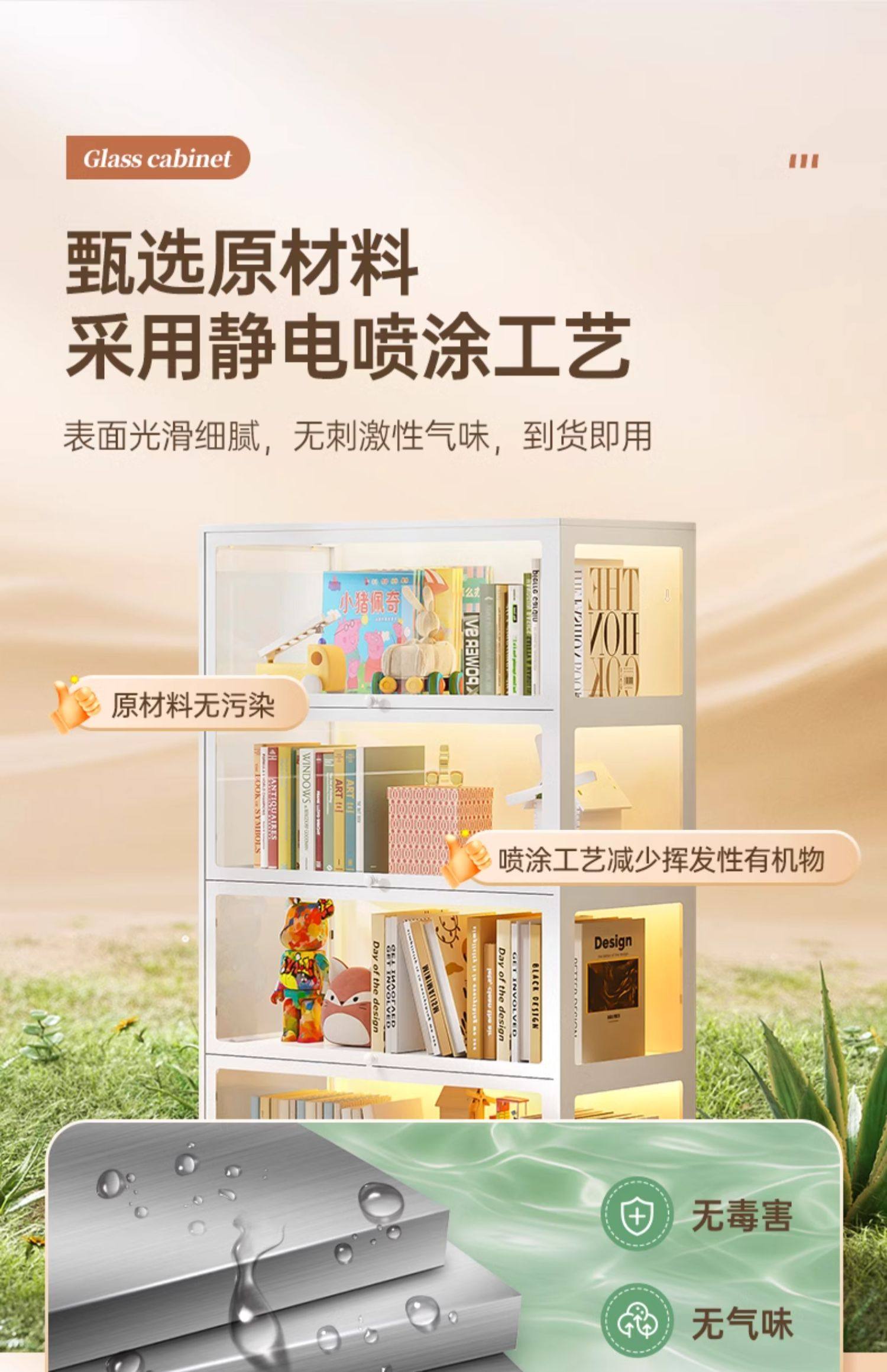 Steel Bookcase with Glass Doors, Children's Bookshelf, Floor-Standing Storage Rack, Home Living Room Storage Cabinet, Dust-Proof Display Cabinet, Storage