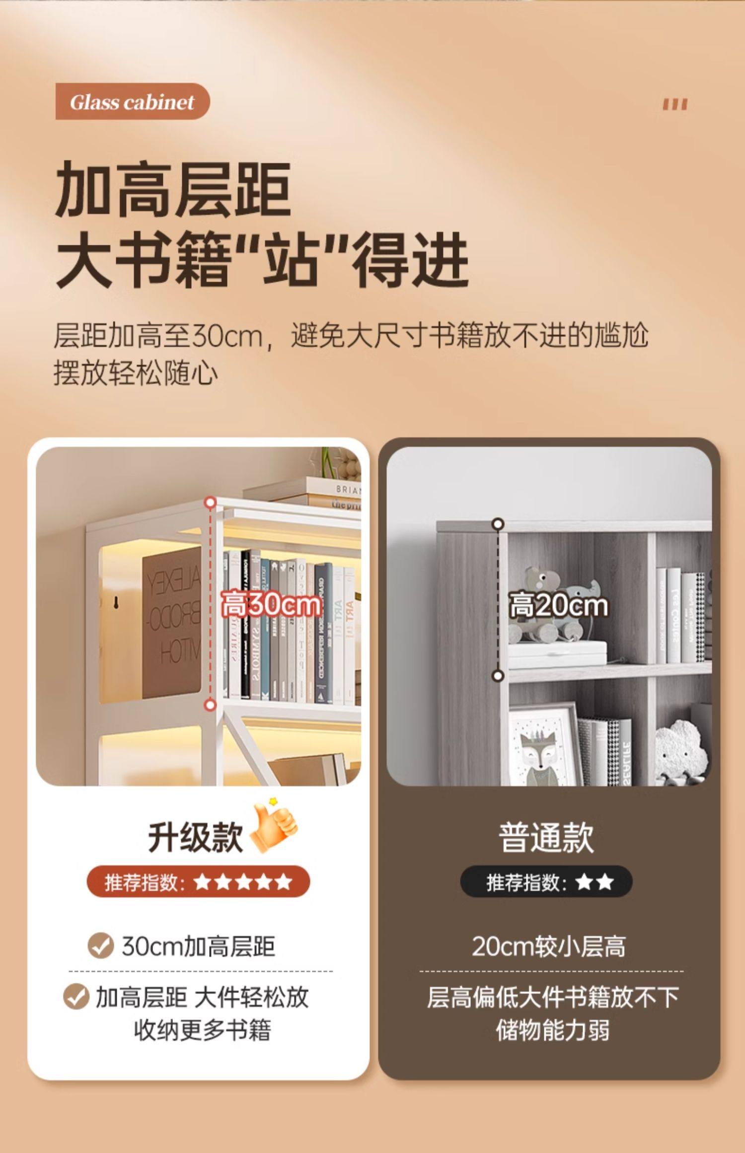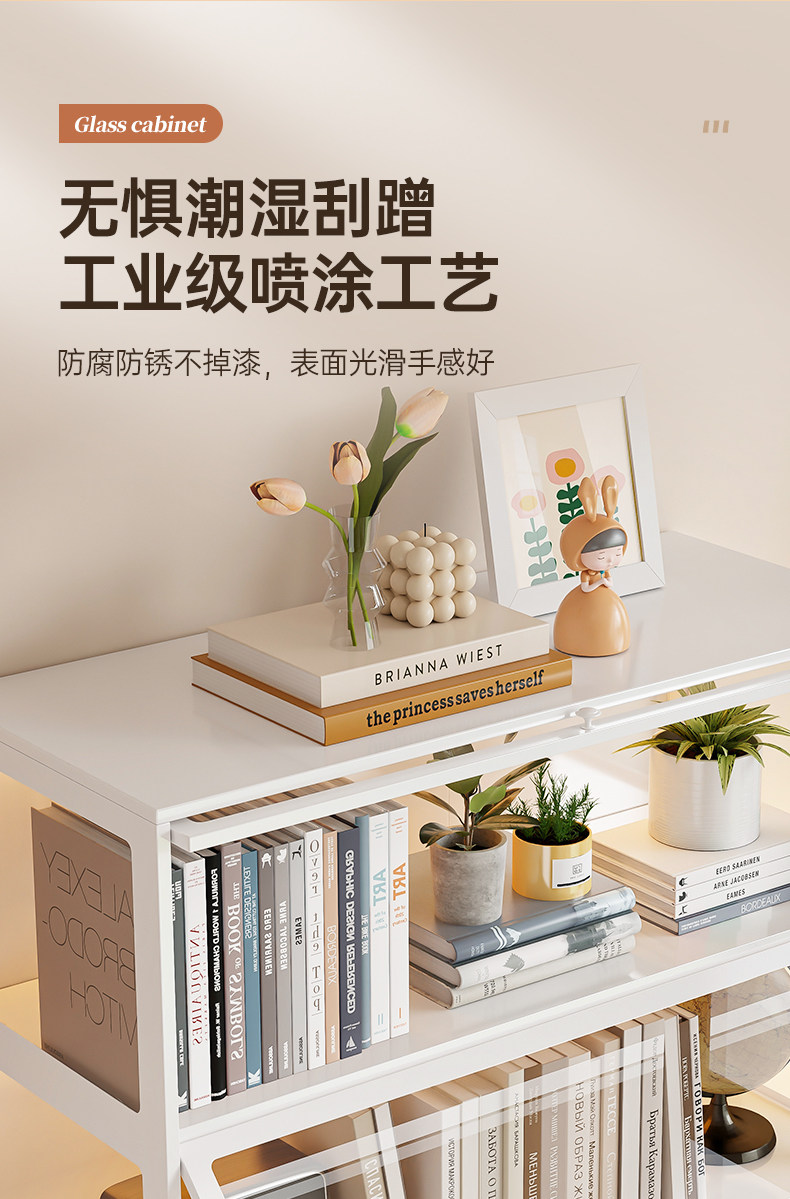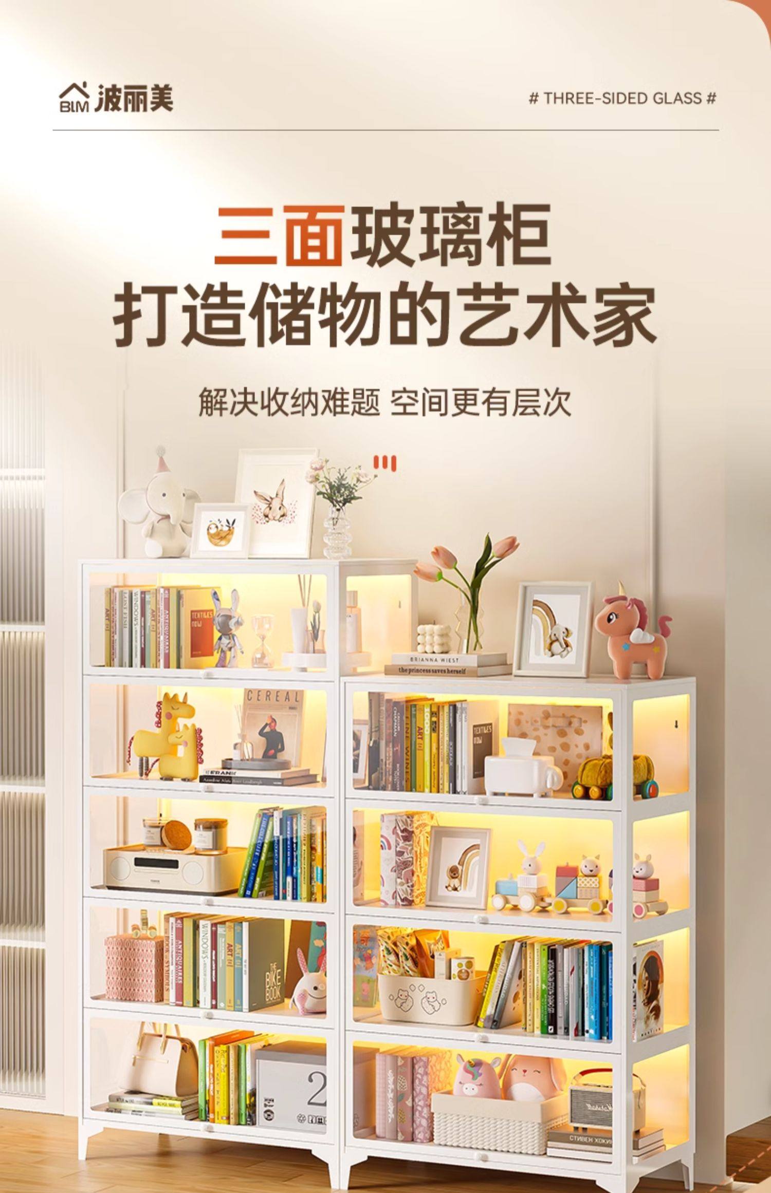 Steel Bookcase with Glass Doors, Children's Bookshelf, Floor-Standing Storage Rack, Home Living Room Storage Cabinet, Dust-Proof Display Cabinet, Storage