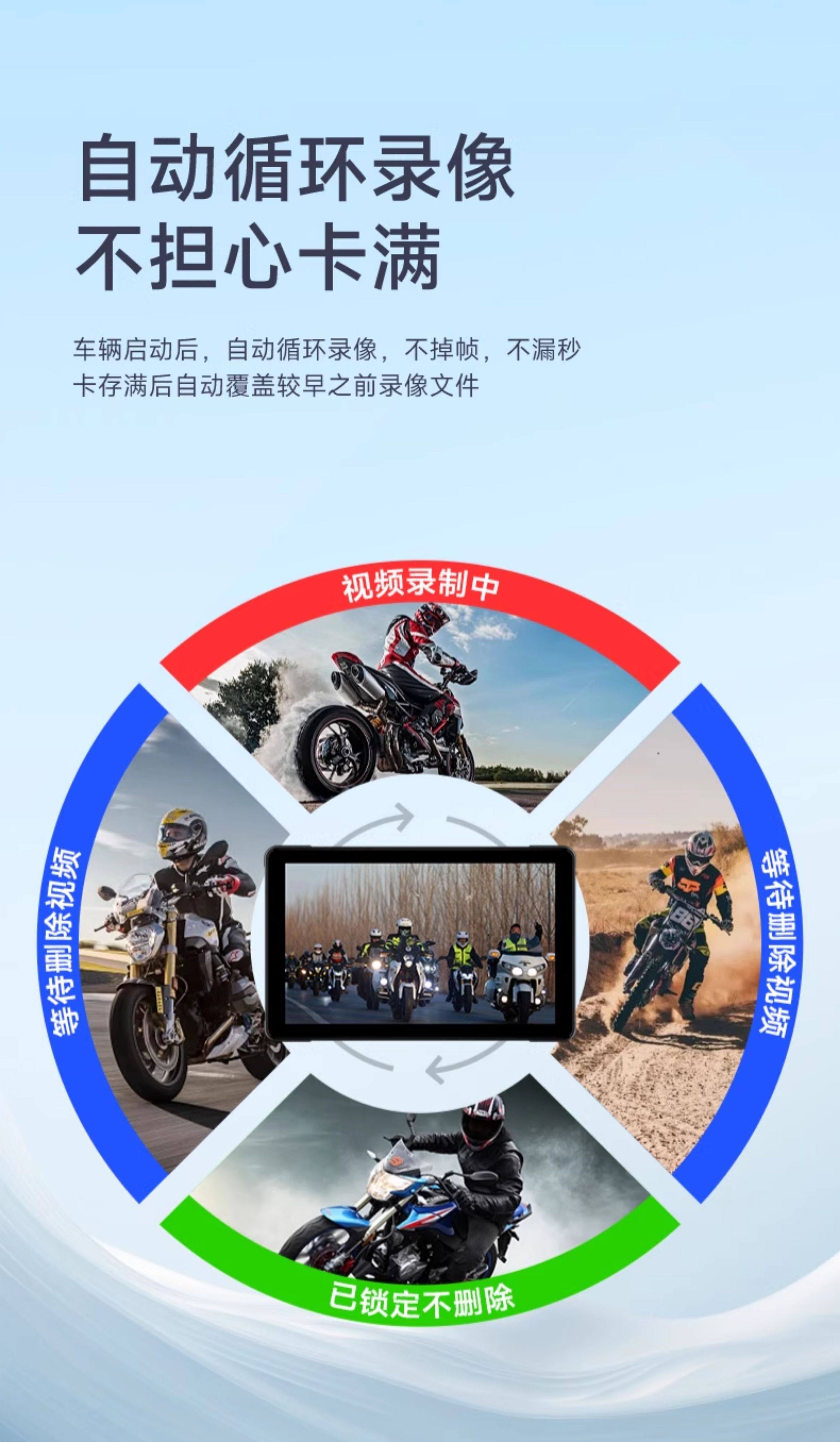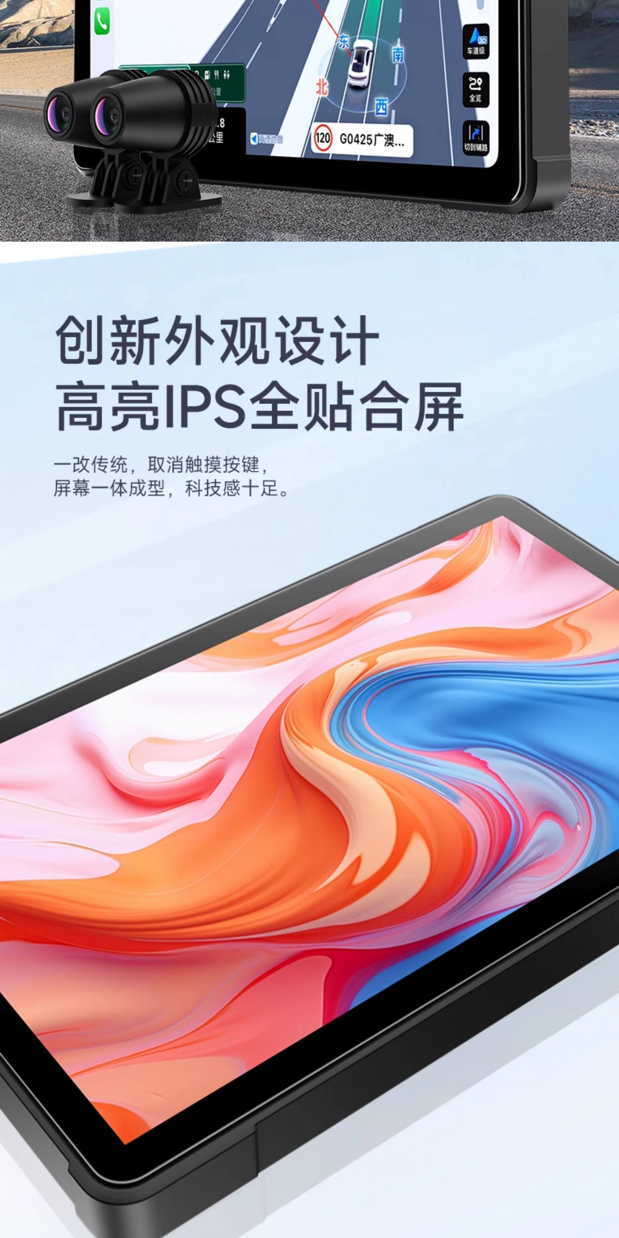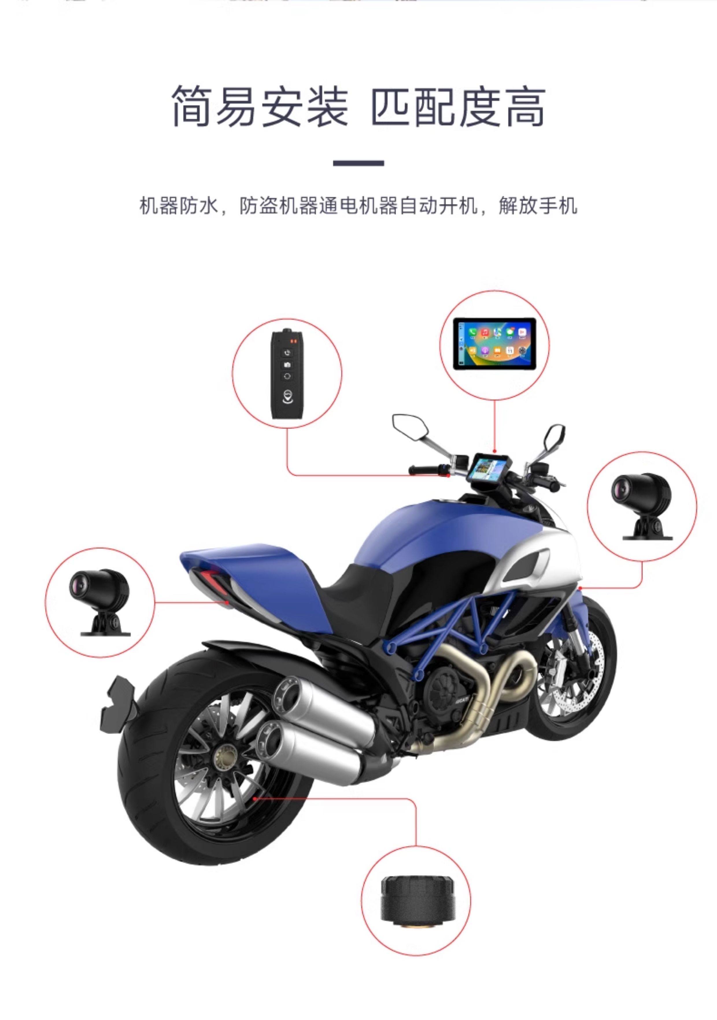 Motorcycle Driving Recorder with Dual Front and Rear Lenses, 7-Inch 2K Ultra-High-Definition Smart Navigation, Dedicated Carplay