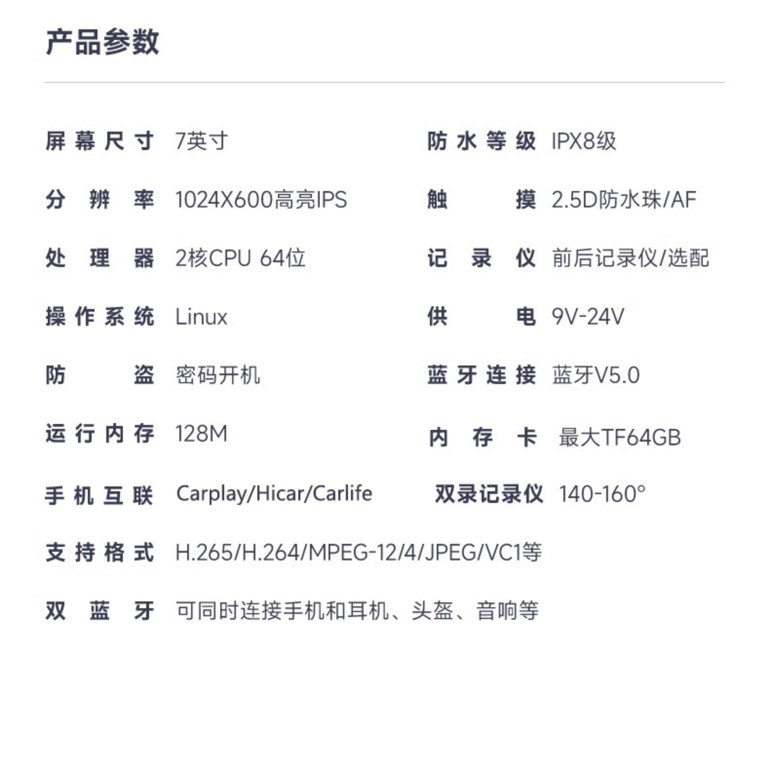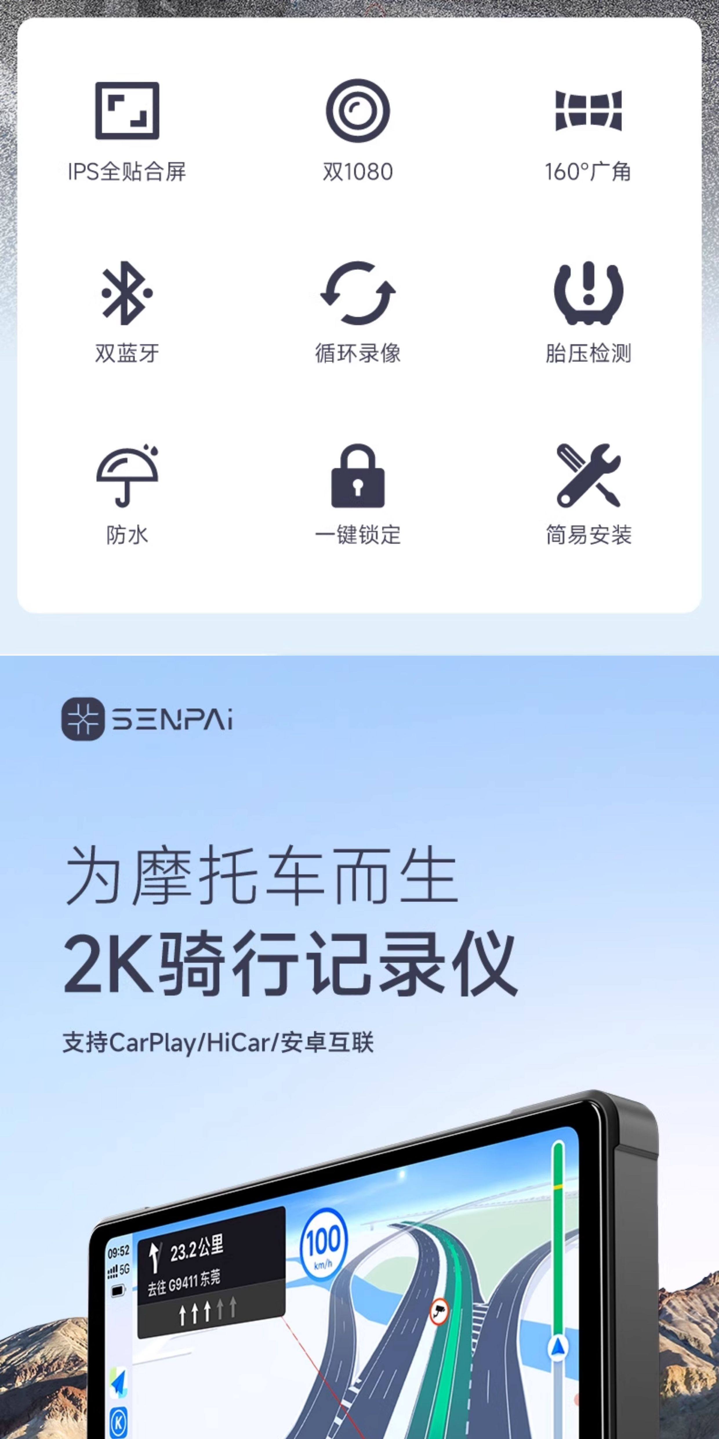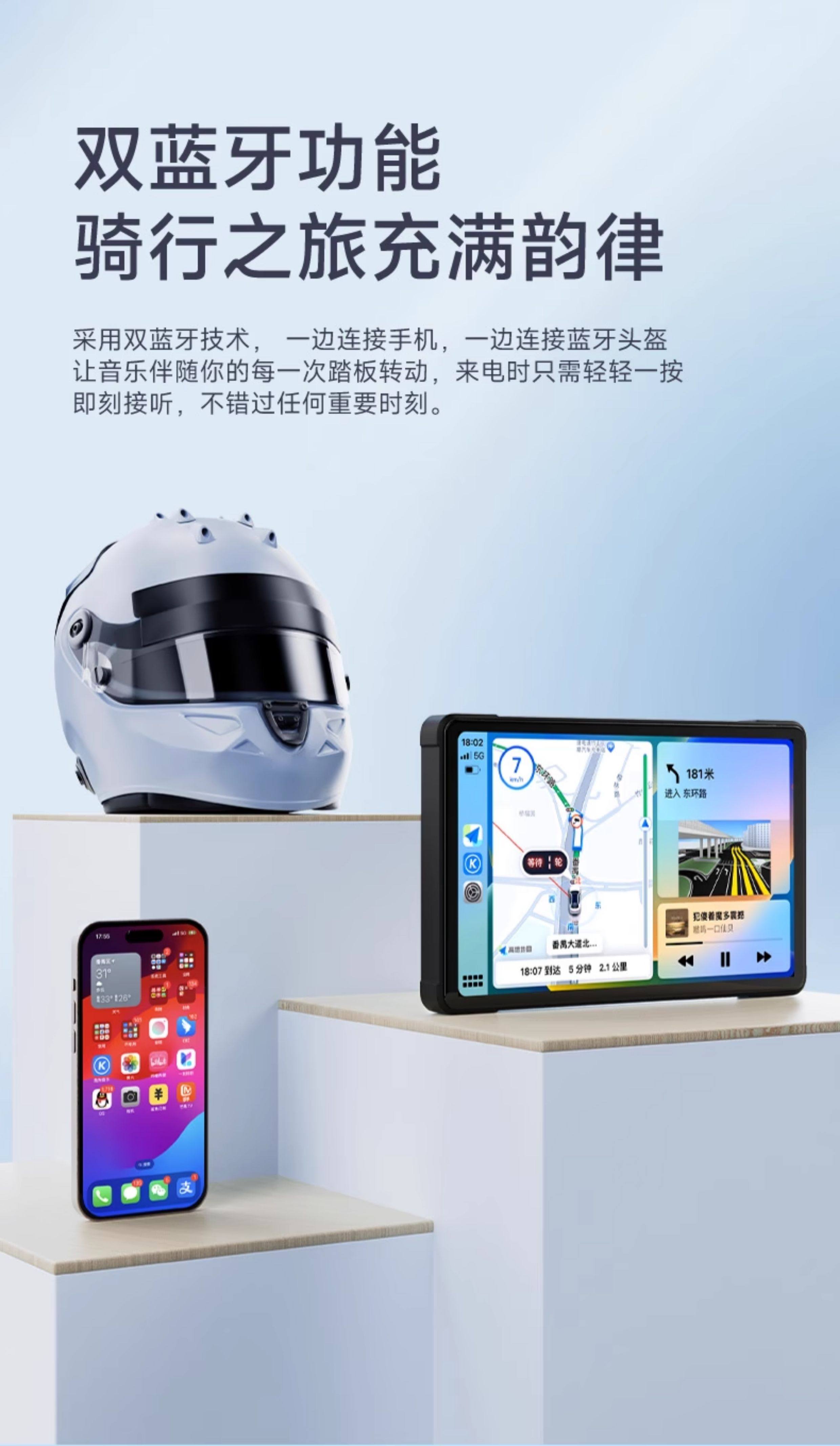 Motorcycle Driving Recorder with Dual Front and Rear Lenses, 7-Inch 2K Ultra-High-Definition Smart Navigation, Dedicated Carplay