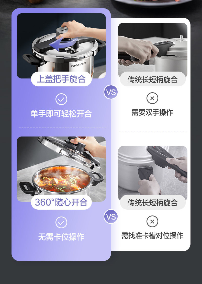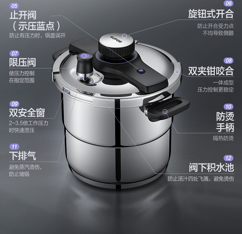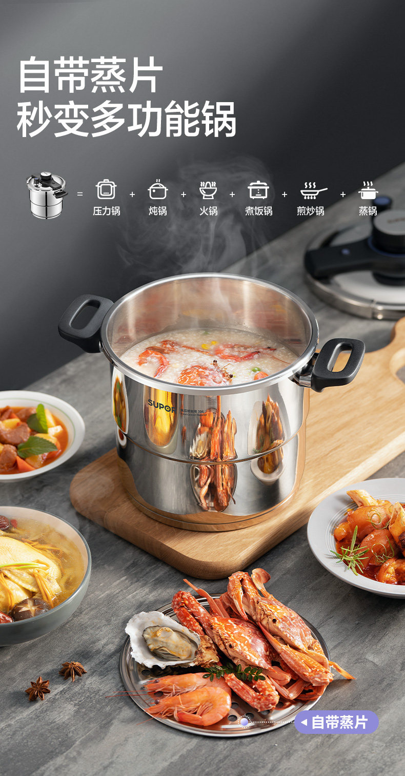 [New Product]Supor Pressure Cooker for Home Use, Genuine Official Flagship New Model, 304 Stainless Steel Pressure Cooker for Gas Stove