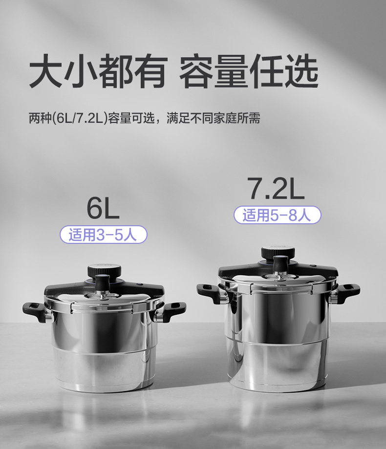 | Color Classification | Official Authentic Products - You Can'T Go Wrong Buying What Everyone's Buying!,Really Thickened 304 Stainless Steel [Automatic Exhaust Is More Worry-Free],6.0L Extra-Thick [One-Handed Twist Lid] Includes Silicone Soup Spoon + Original Steaming Rack [Upgraded to 100Kpa Quick Pressure],7.2L Extra-Thick [One-Handed Twist Lid] Includes Silicone Soup Spoon + Original Steaming Rack [Upgraded to 100Kpa Quick Pressure],6.0L Extra-Thick [One-Handed Twist Lid] Includes Steaming Rack + Lid + Soup Ladle + Original Steaming Pads [Upgraded to 100Kpa Quick Pressure],7.2L Extra-Thick [One-Handed Twist Lid] - Includes Steaming Rack + Lid + Soup Ladle + Original Steaming Pads [Upgraded to 100Kpa Quick Pressure] |