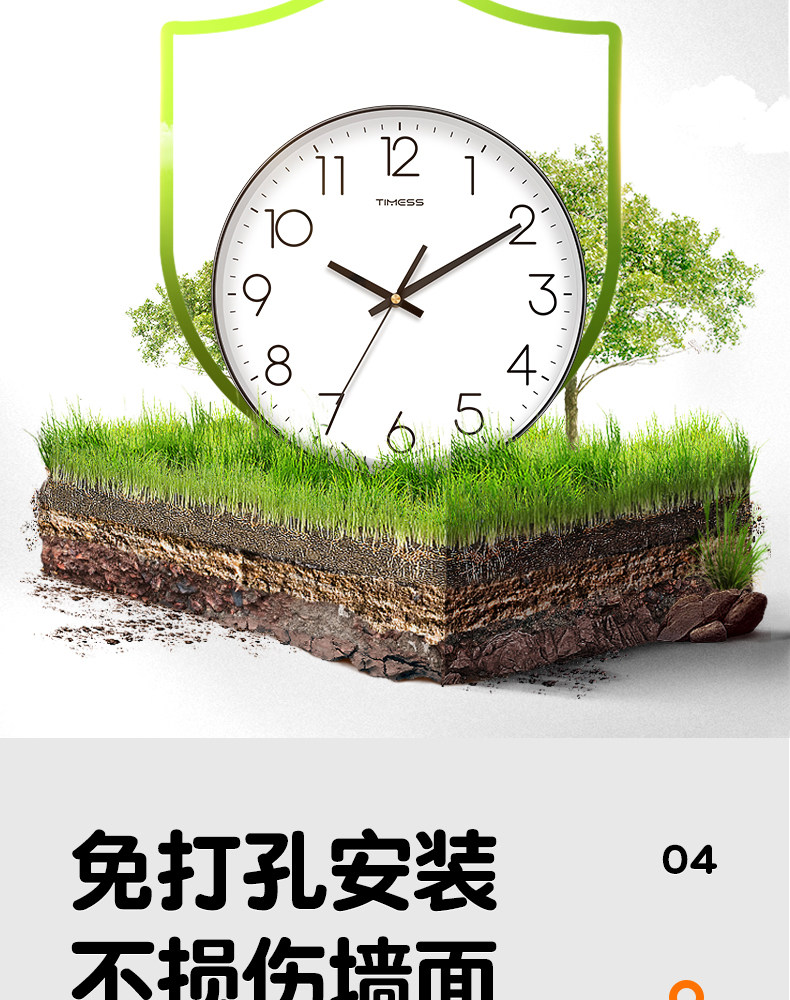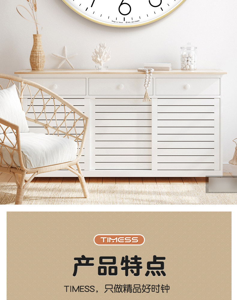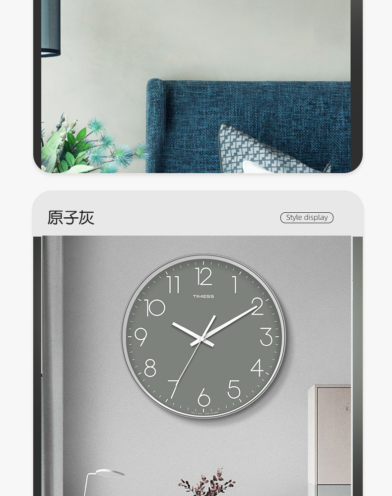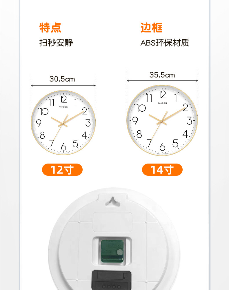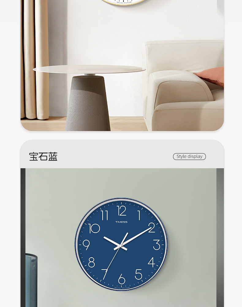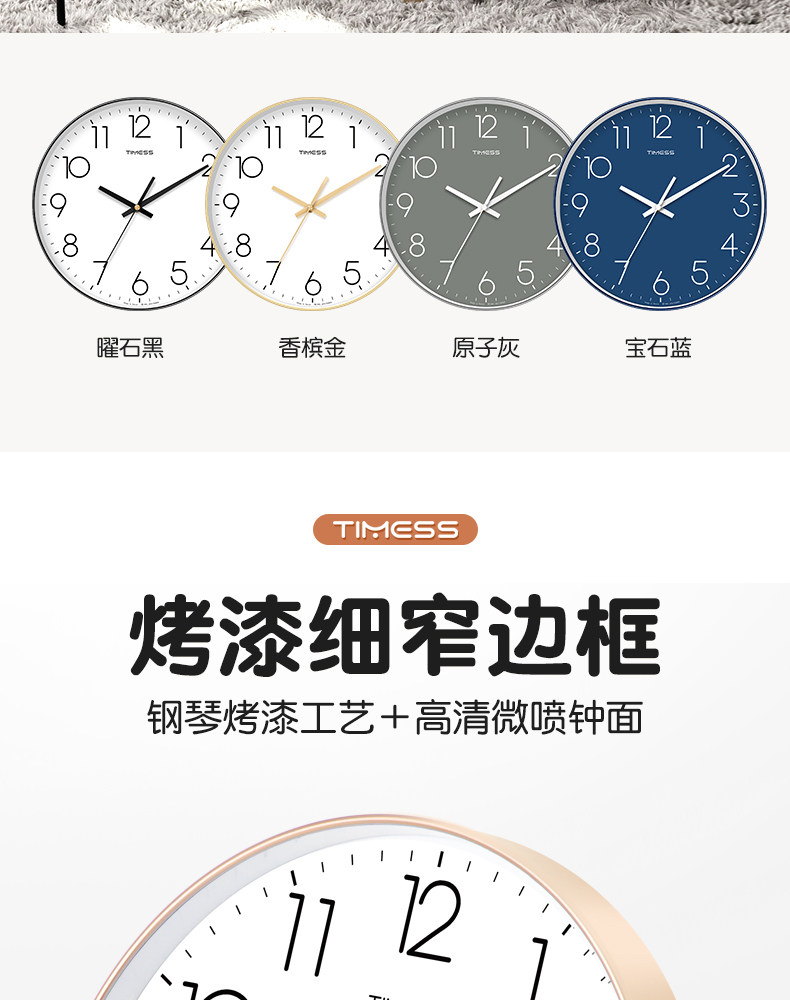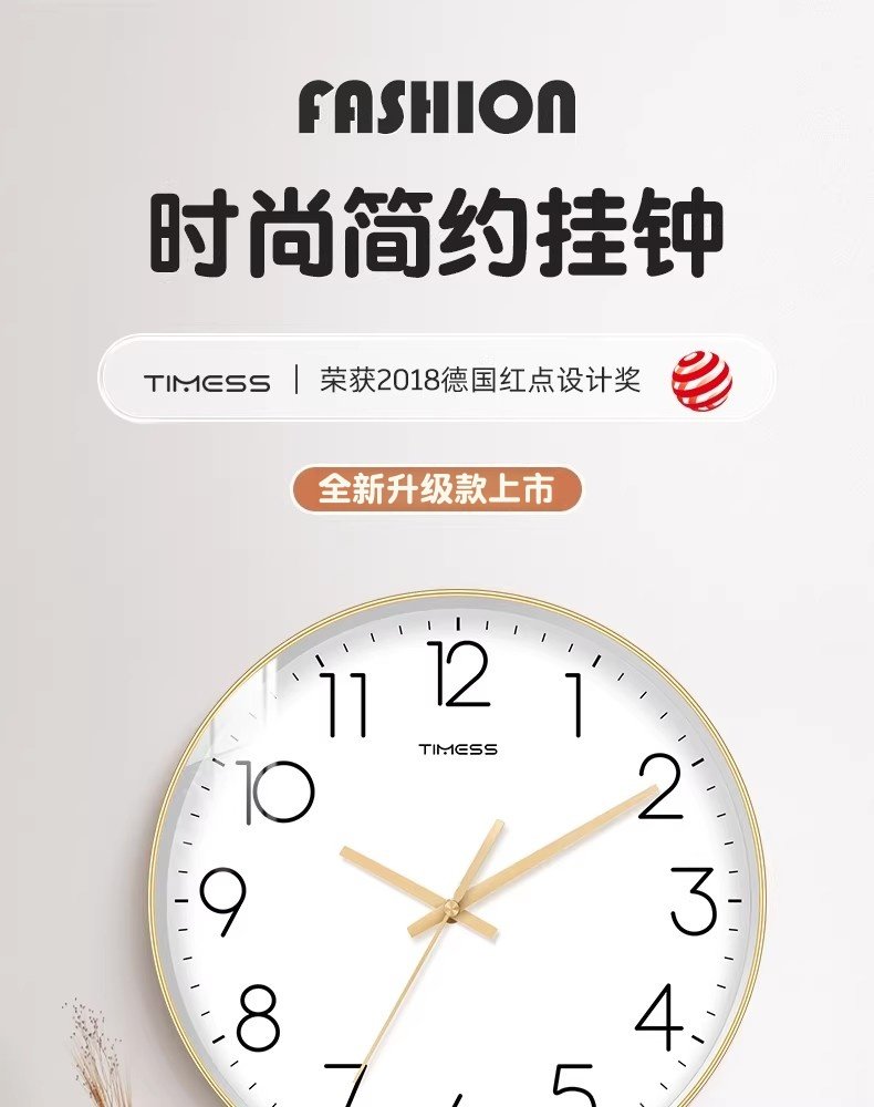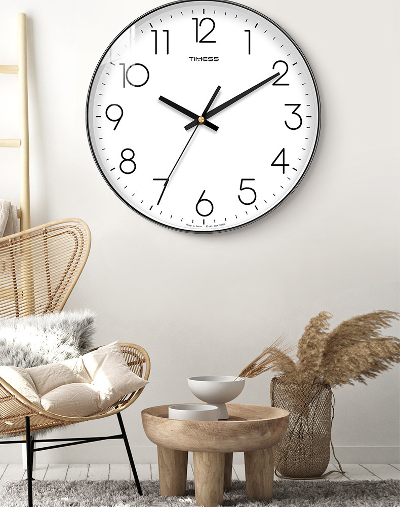 Timess Wall Clock for Living Room, Simple and Stylish Home Clock, Quartz Clock, No-Drill Silent Wall-Mounted Clock