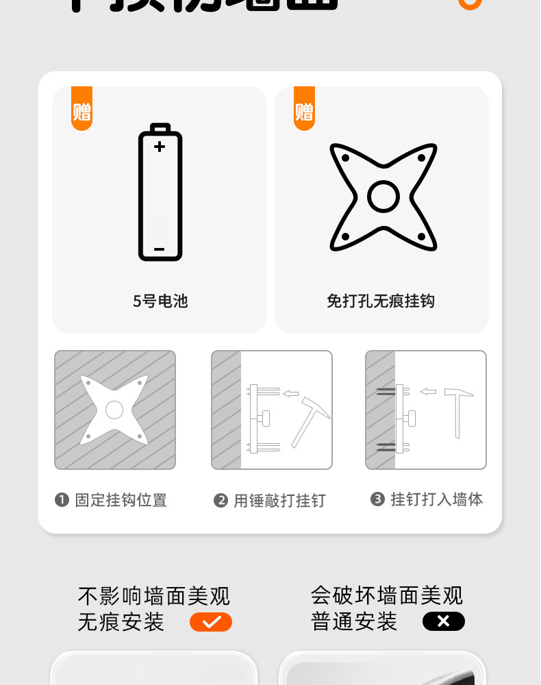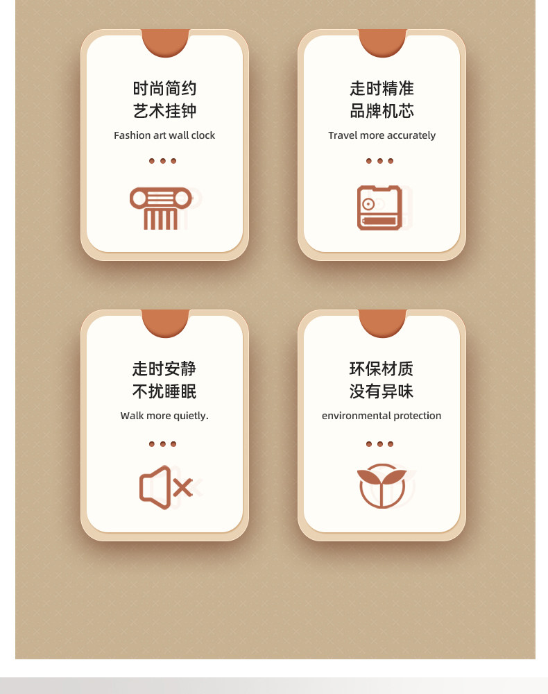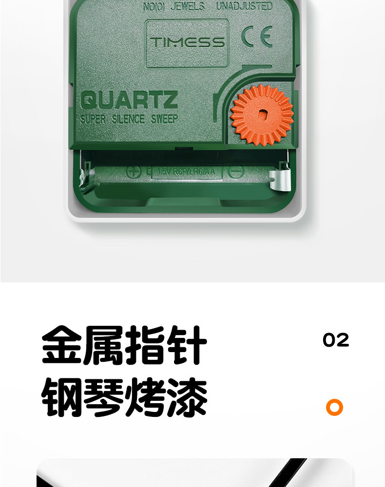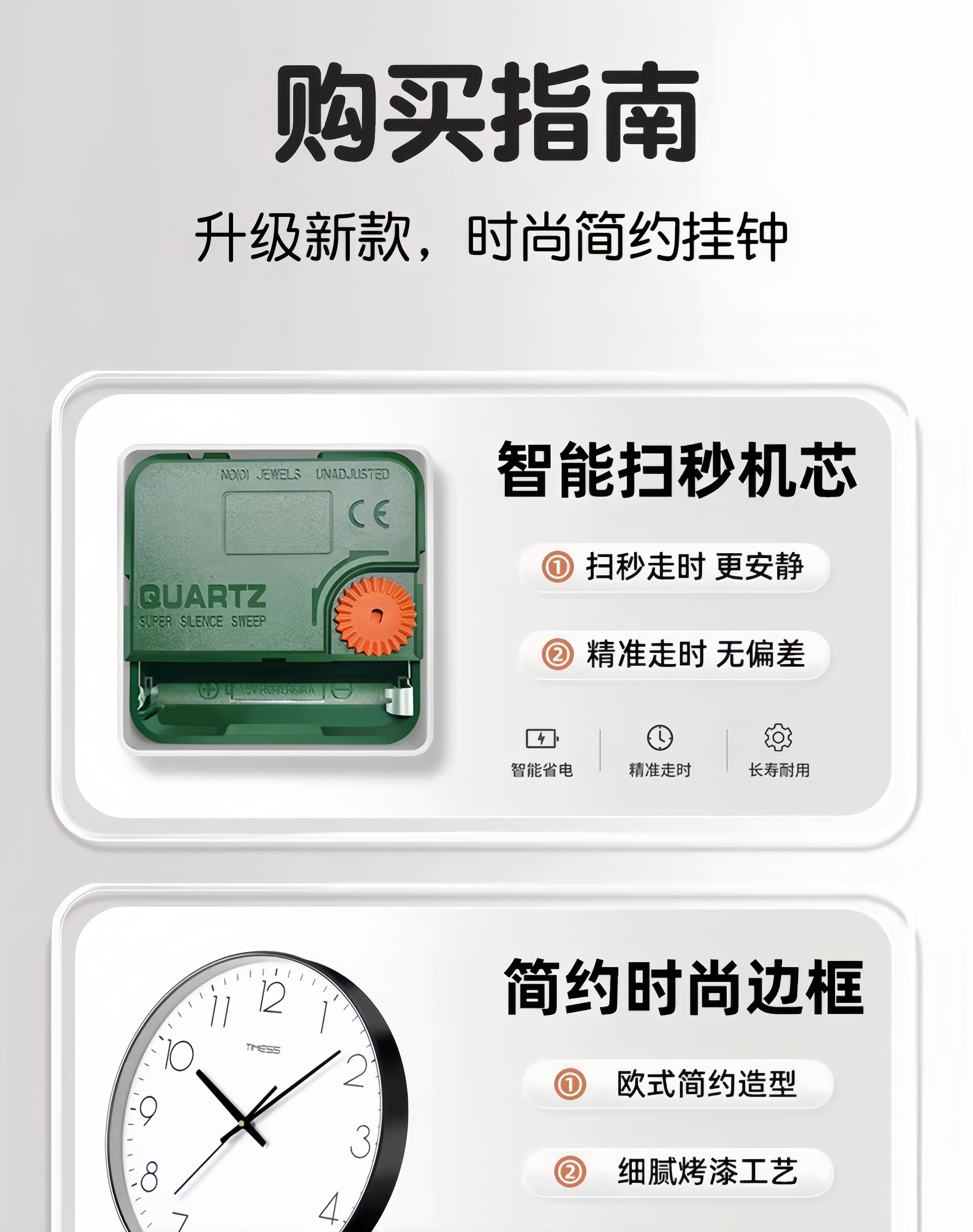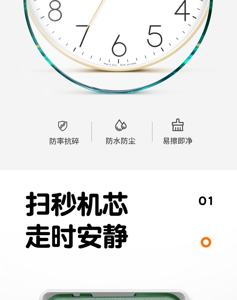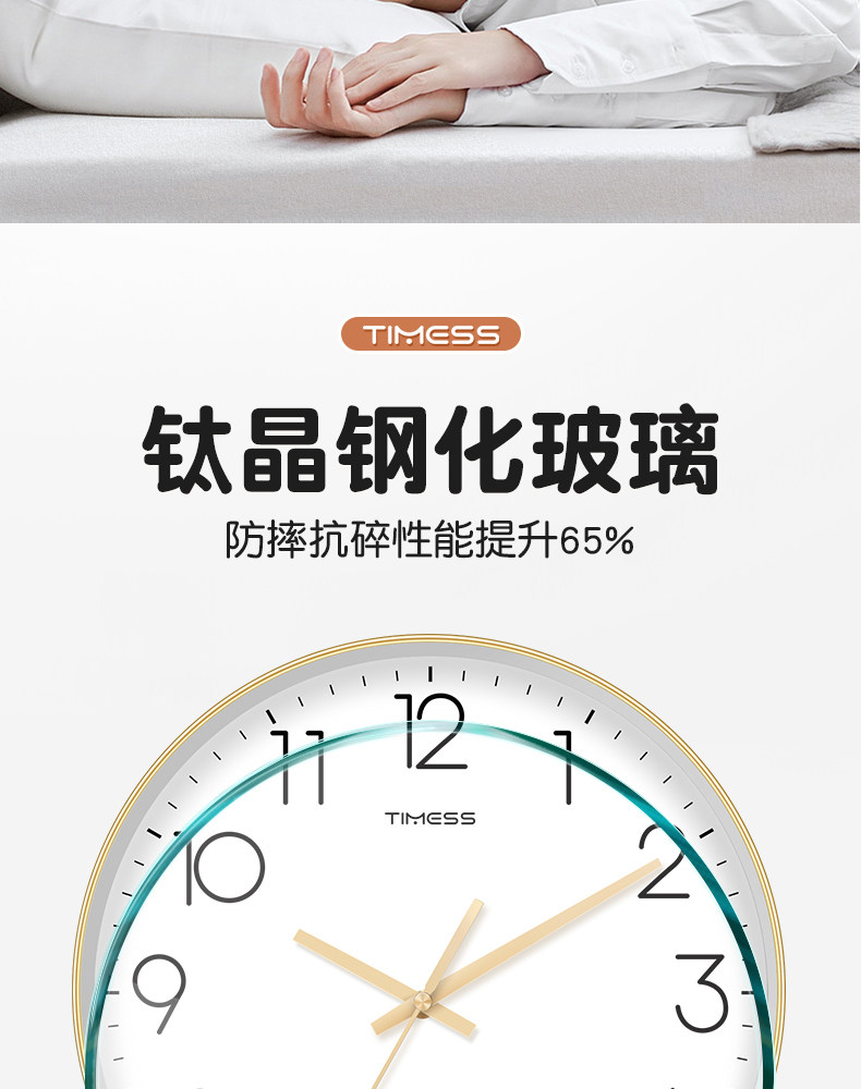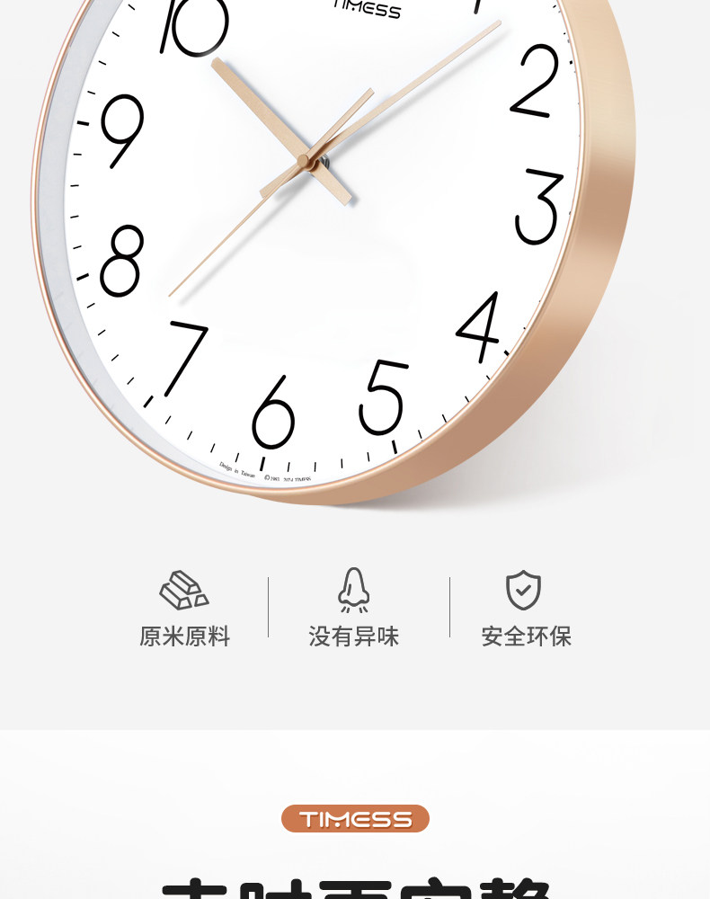 Timess Wall Clock for Living Room, Simple and Stylish Home Clock, Quartz Clock, No-Drill Silent Wall-Mounted Clock