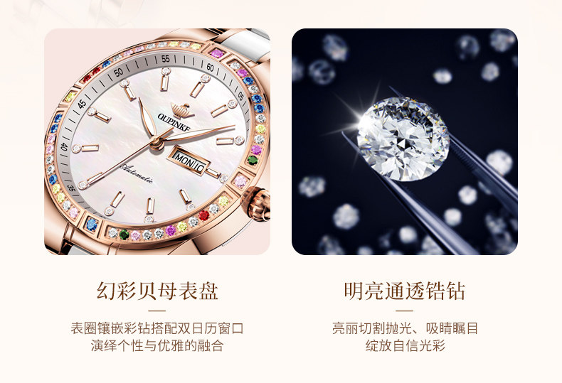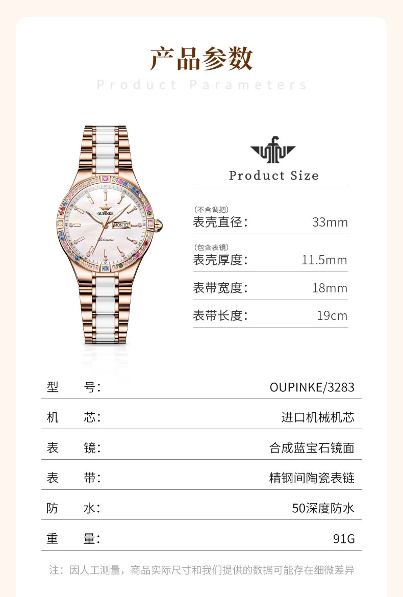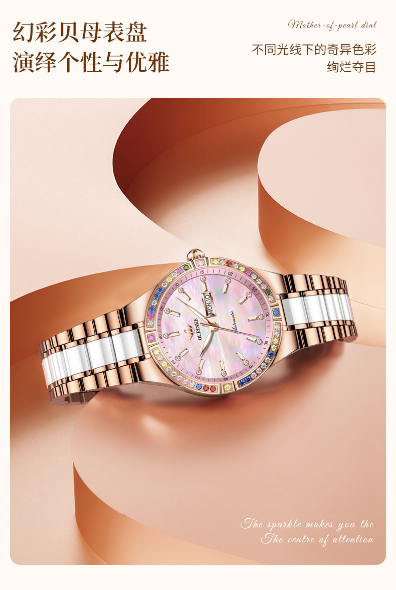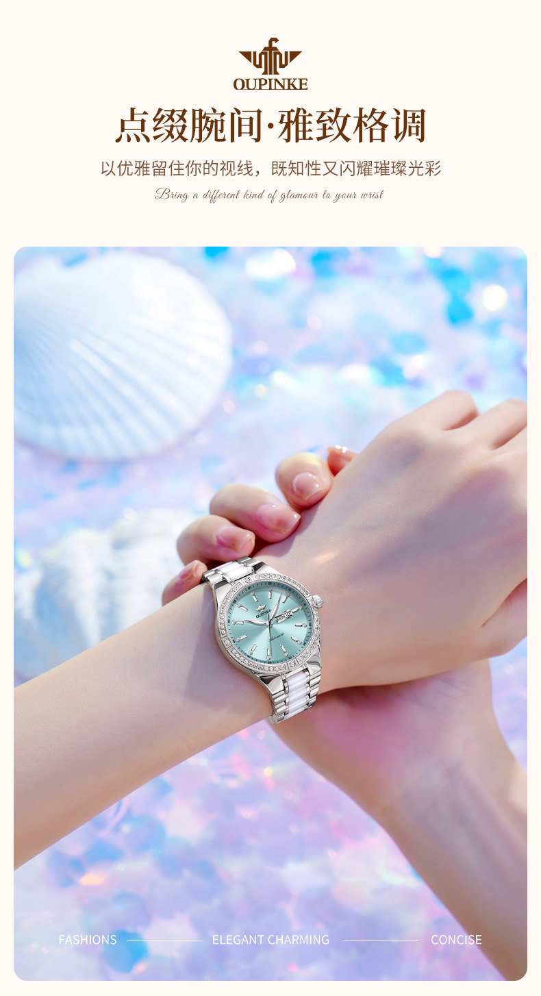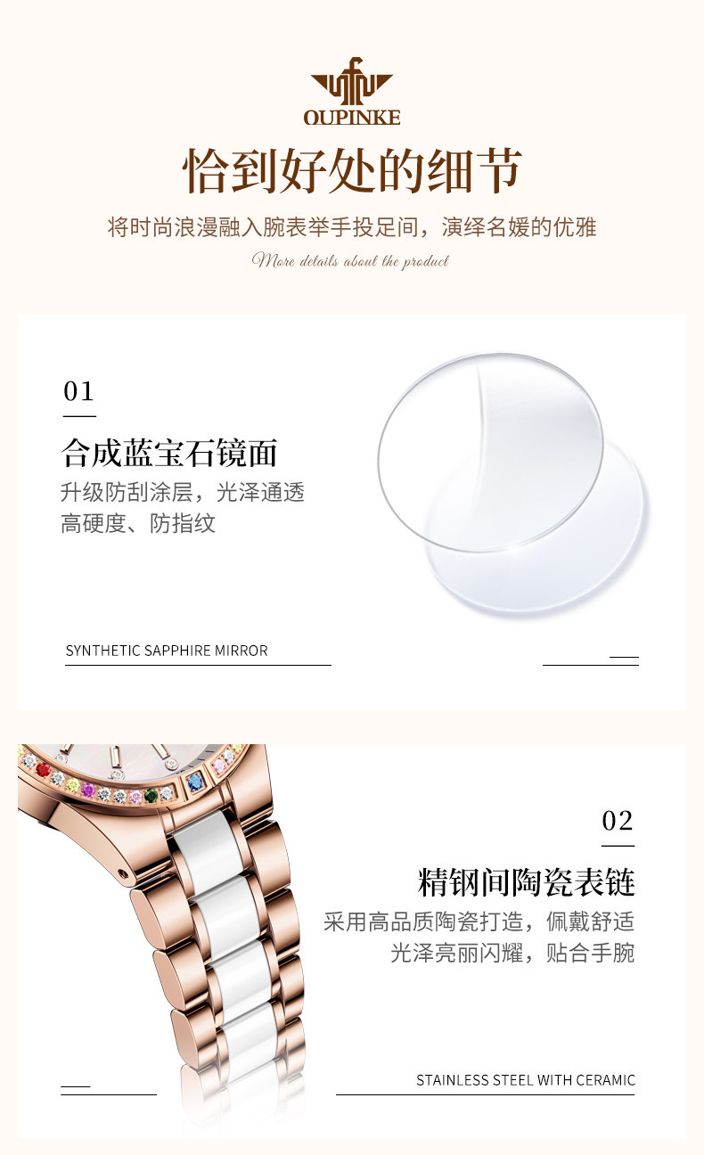New Year's Gift Swiss Oupinke Brand Genuine Watch Women's Mechanical Watch Fashionable Light Luxury Niche Ceramic Women's Model