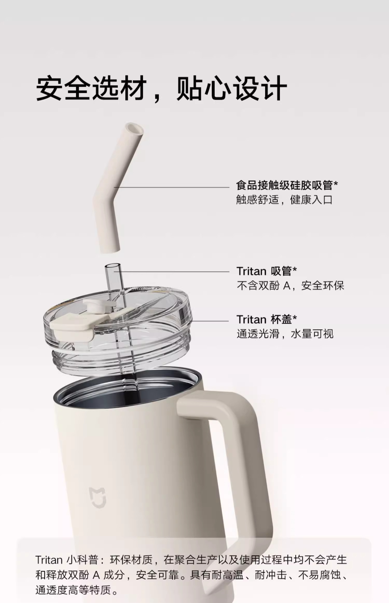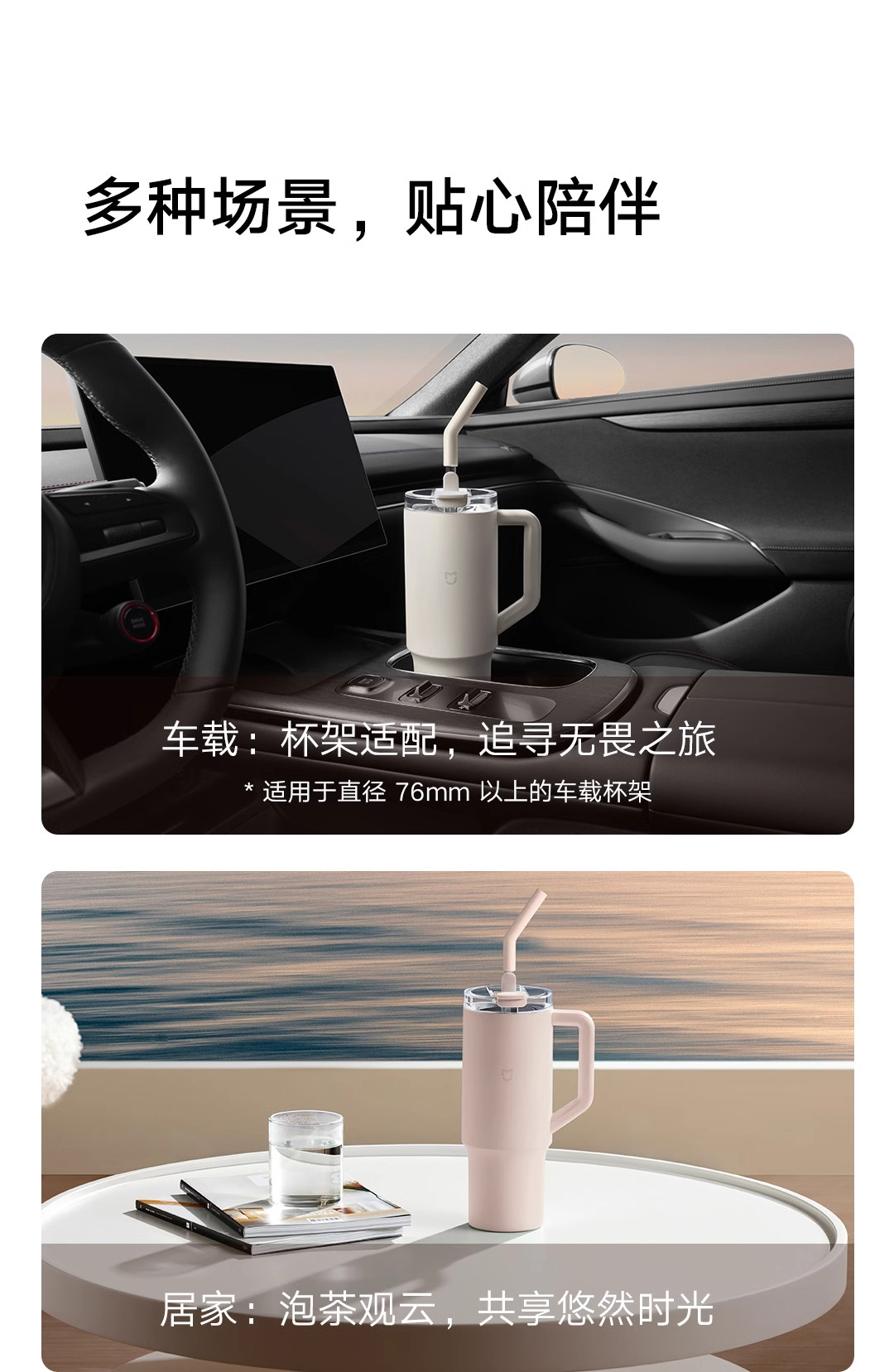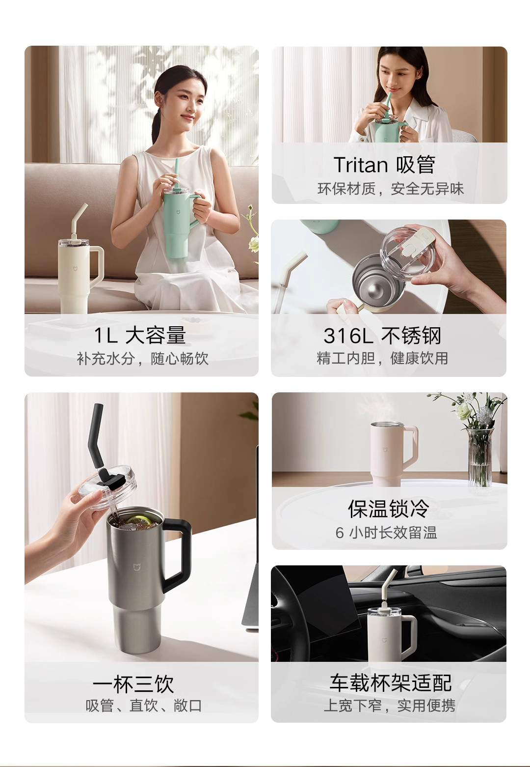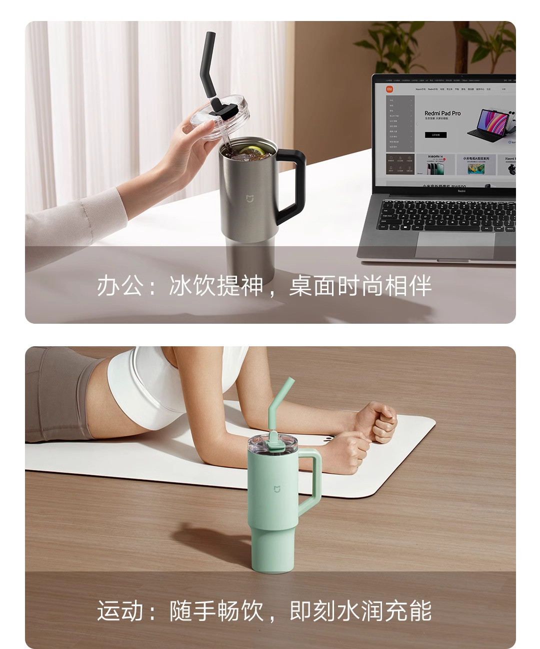Xiaomi Selected Insulated Cup Mijia Straw Cup Giant Water Cup Car Portable Ice Cup 316L Stainless Steel