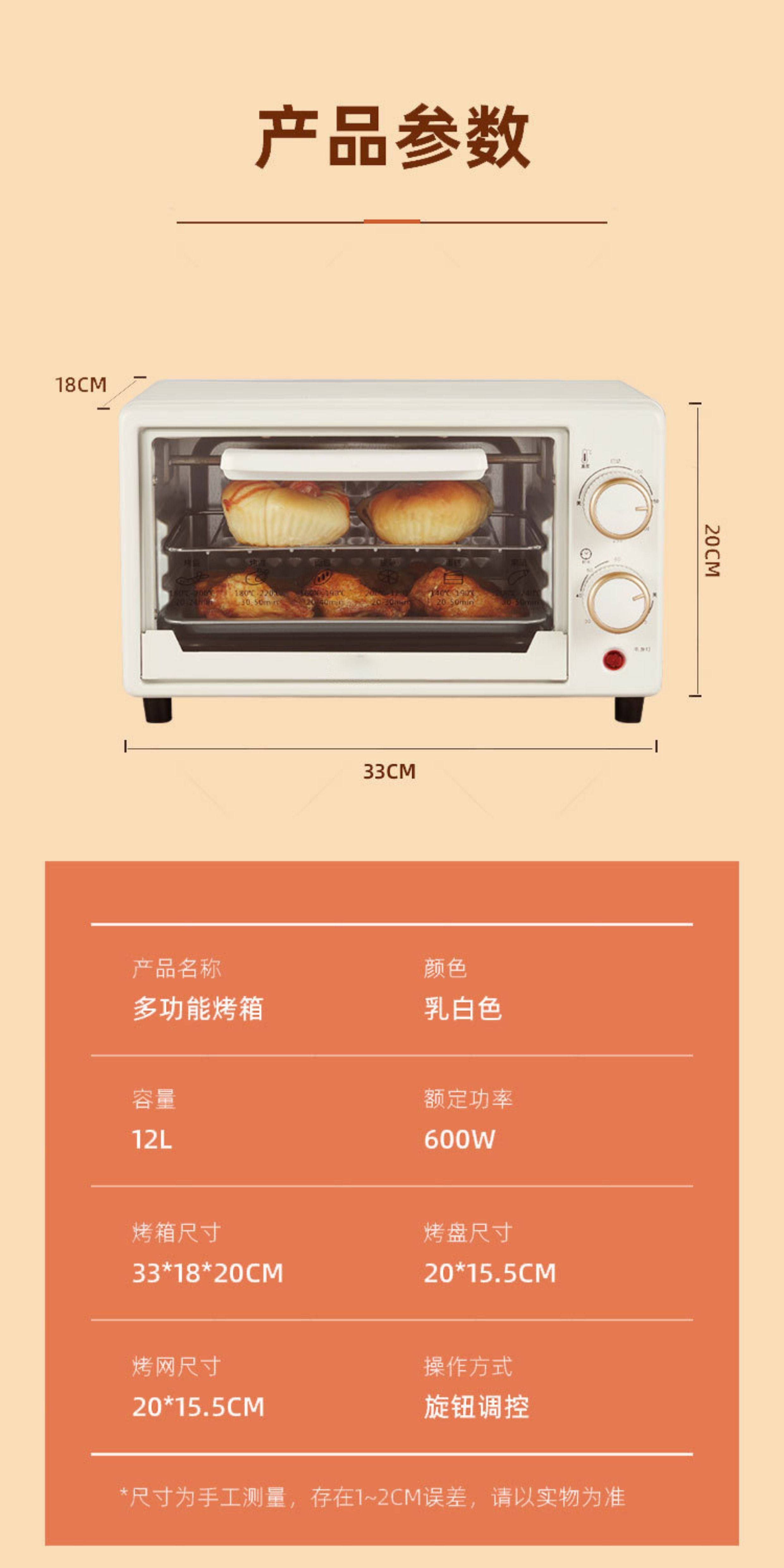 New Smart 12L Small Electric Oven for Home Use, Multifunctional Baking Machine for Egg Tarts, Bread, Breakfast, Oven, Promotional Gift