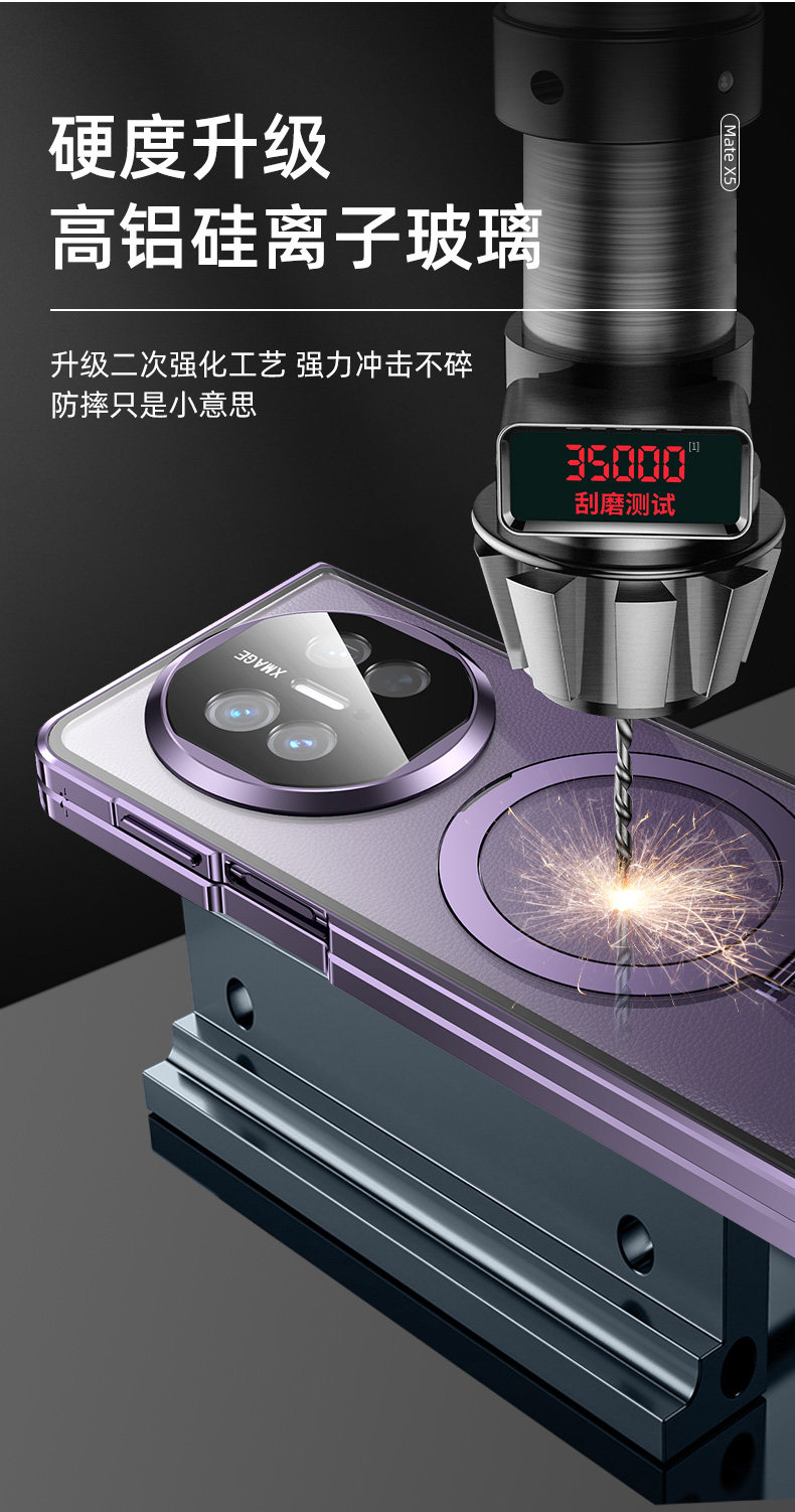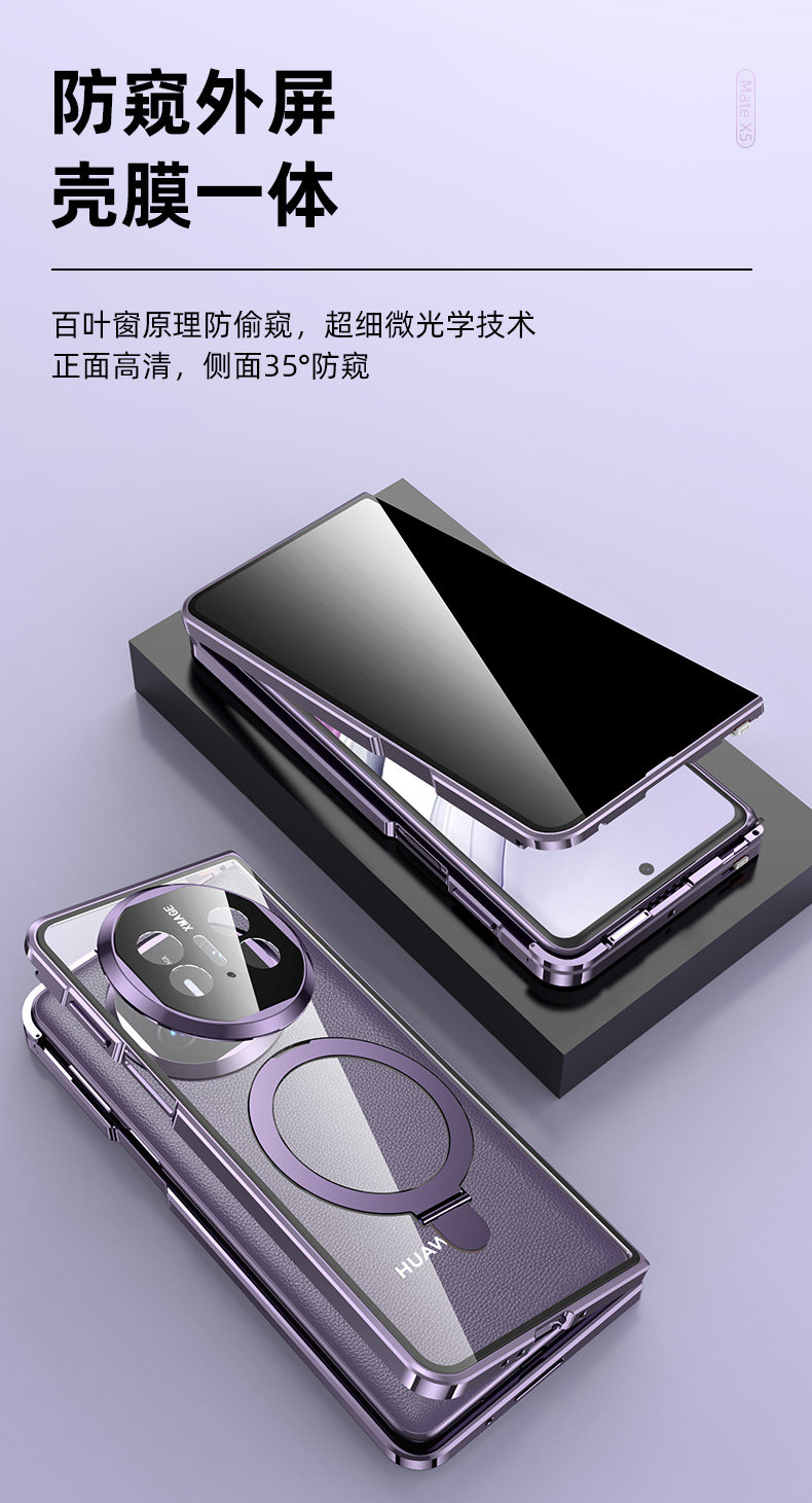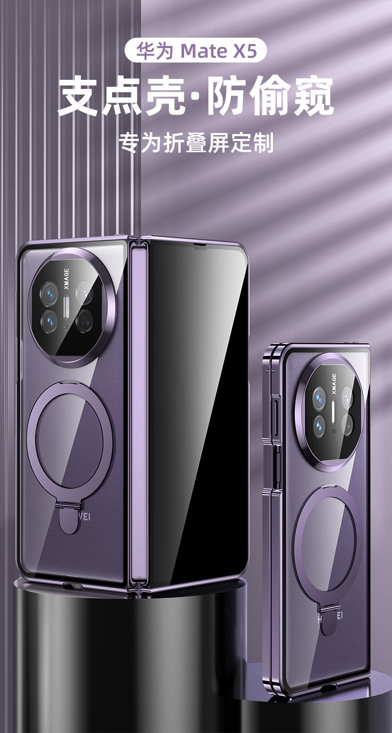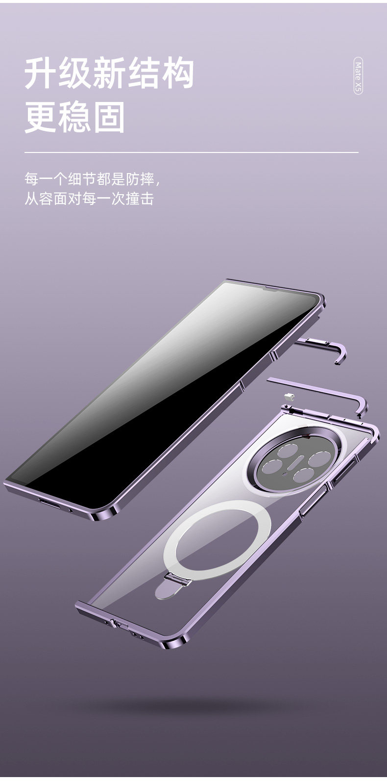 Huawei Mate X5 Double-Sided Full-Cover Phone Case with Built-In Stand, Anti-Peeping, Magnetic Wireless Charging, Glass Case, X3 Collector's Edition, Anti-Drop, Heat Dissipation, Lens Protection, Ultra-Thin, Personalized Creative Transparent Case