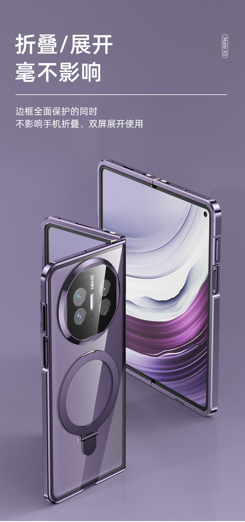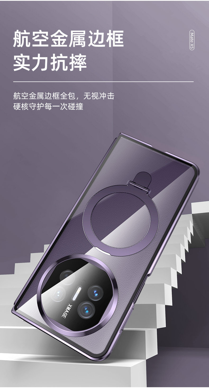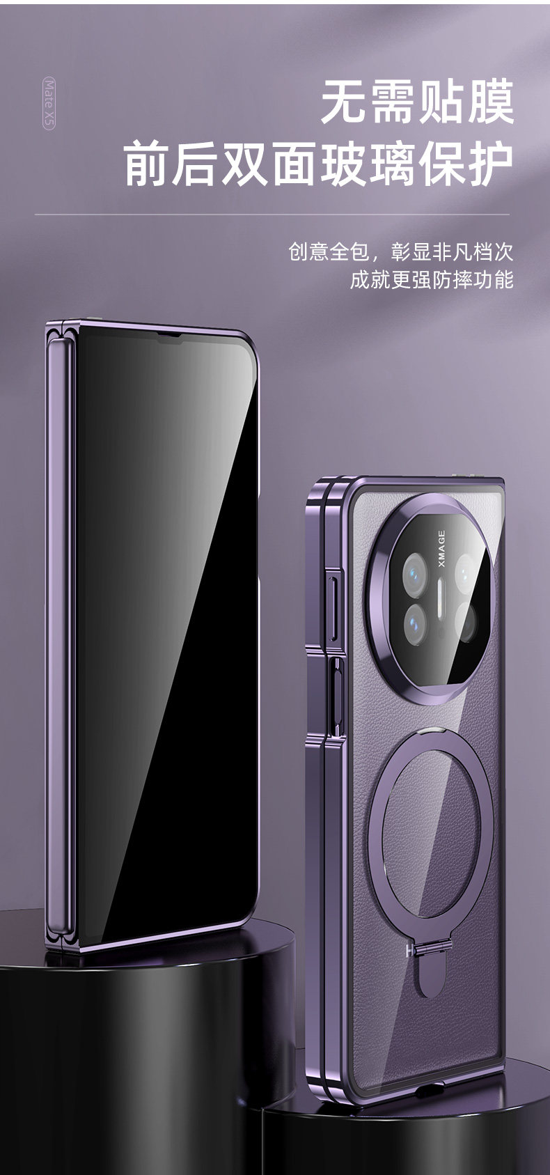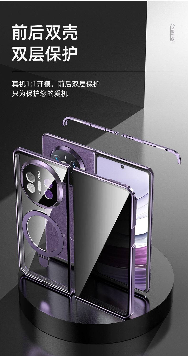 Huawei Mate X5 Double-Sided Full-Cover Phone Case with Built-In Stand, Anti-Peeping, Magnetic Wireless Charging, Glass Case, X3 Collector's Edition, Anti-Drop, Heat Dissipation, Lens Protection, Ultra-Thin, Personalized Creative Transparent Case