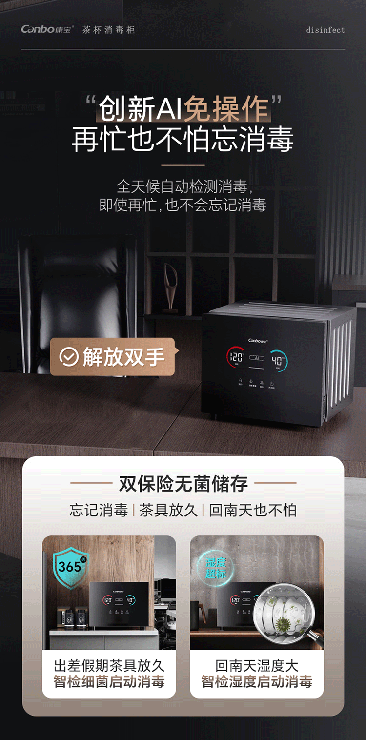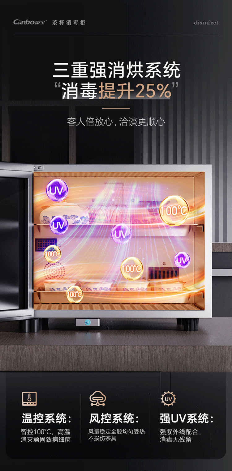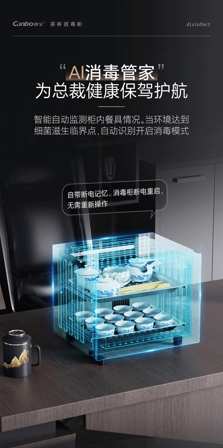 Kangbao New Product Tea Cup Uv Sterilization Cabinet, Small High-End Desktop Drying and Office Tea Cup Storage and Disinfection