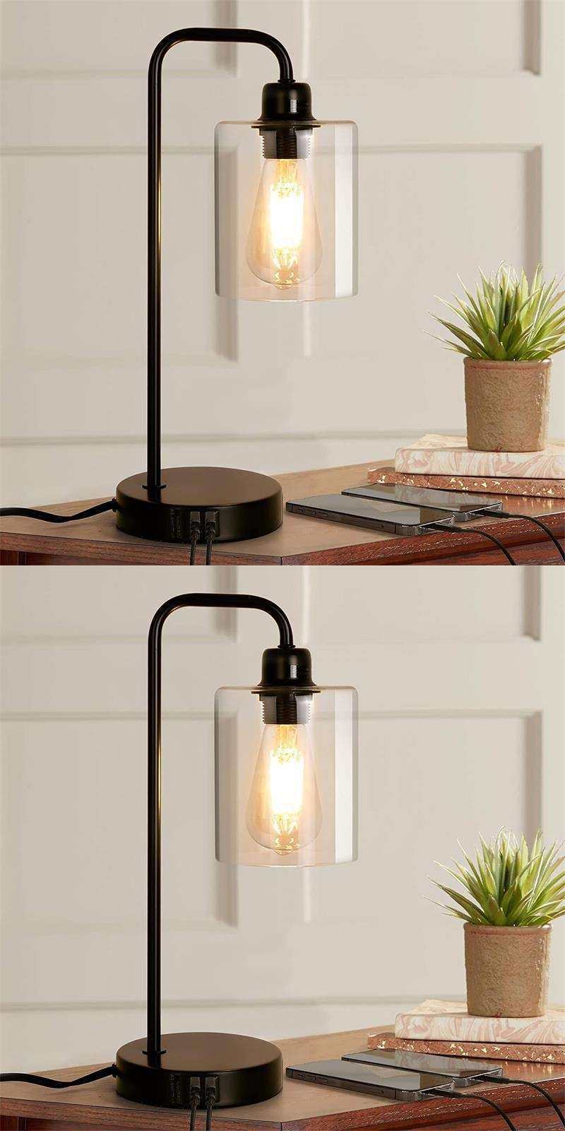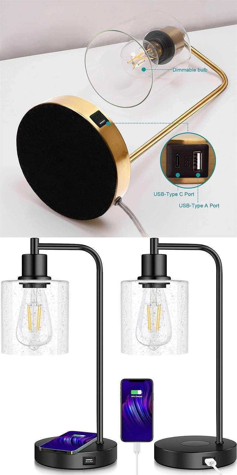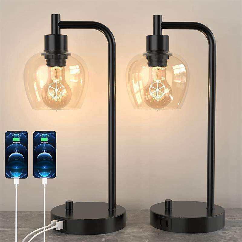 0V American-Style Desk Lamp for Bedroom Bedside with Touch Knob Dimming, USB Wireless Charging, and Ac Socket