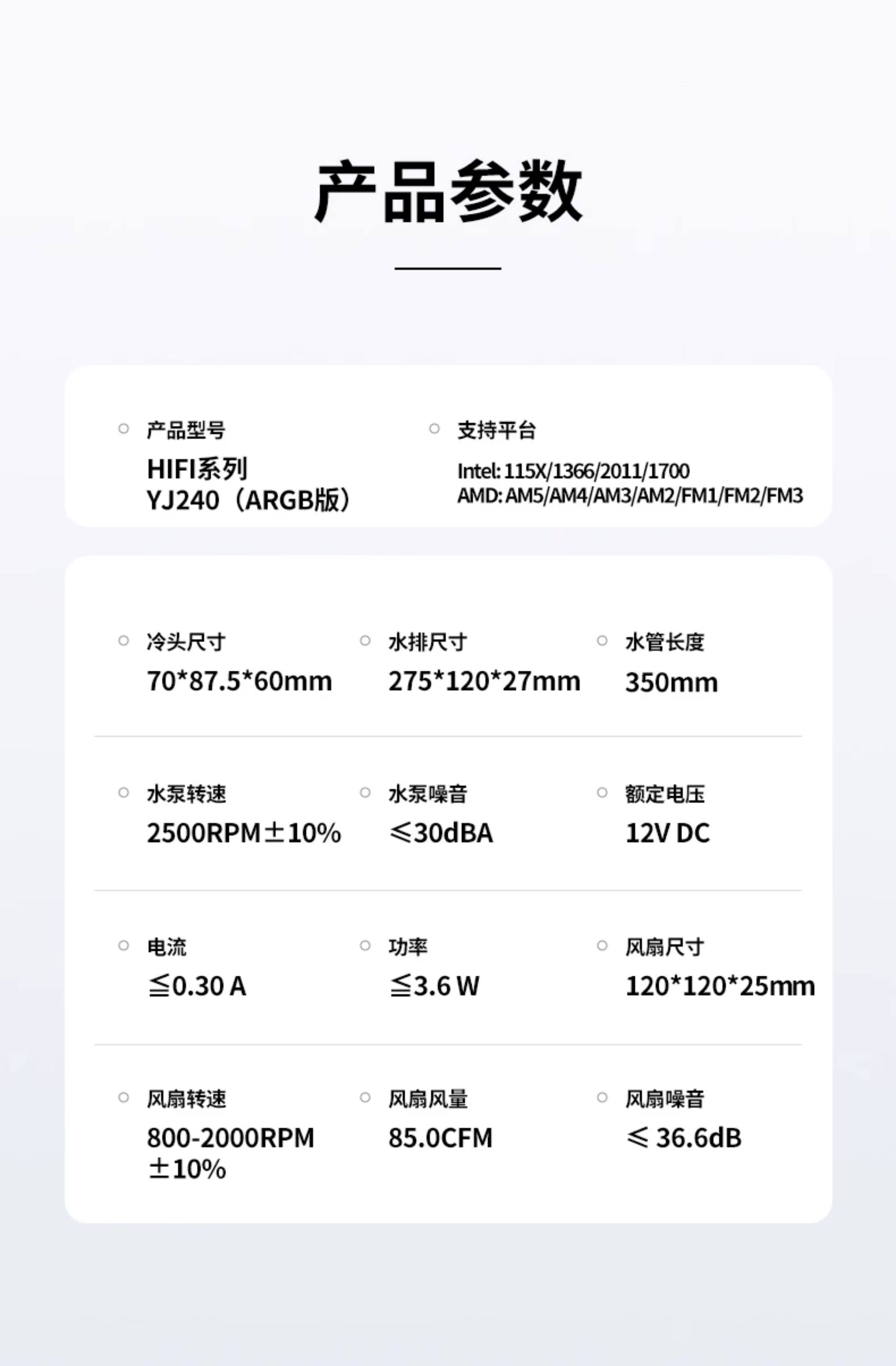 | Color Classification | Yj240 Black Water Cooling (Matte Version),Yj240 White Water Cooling (Matte Version),Yj240 Black Water Cooling (Argb Version),Yj240 White Water Cooling (Argb Version) |