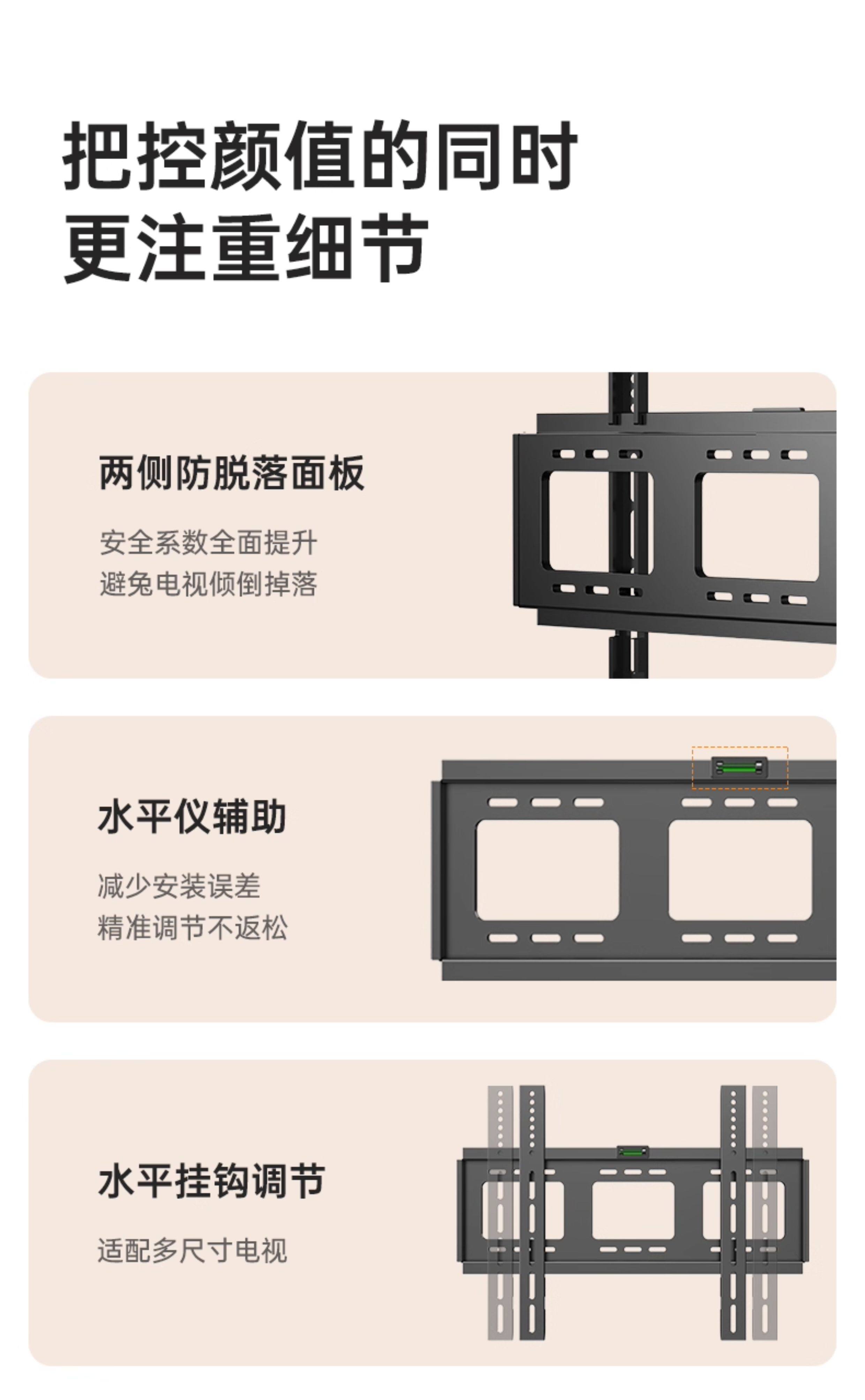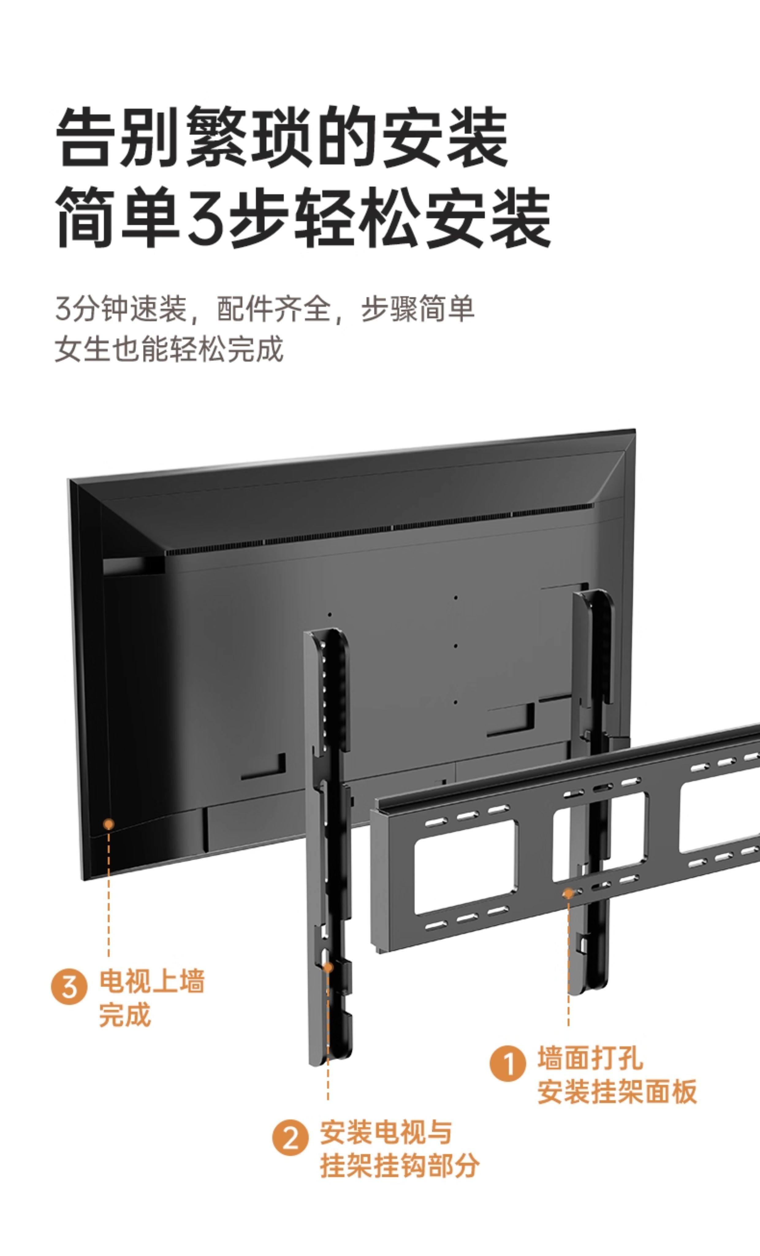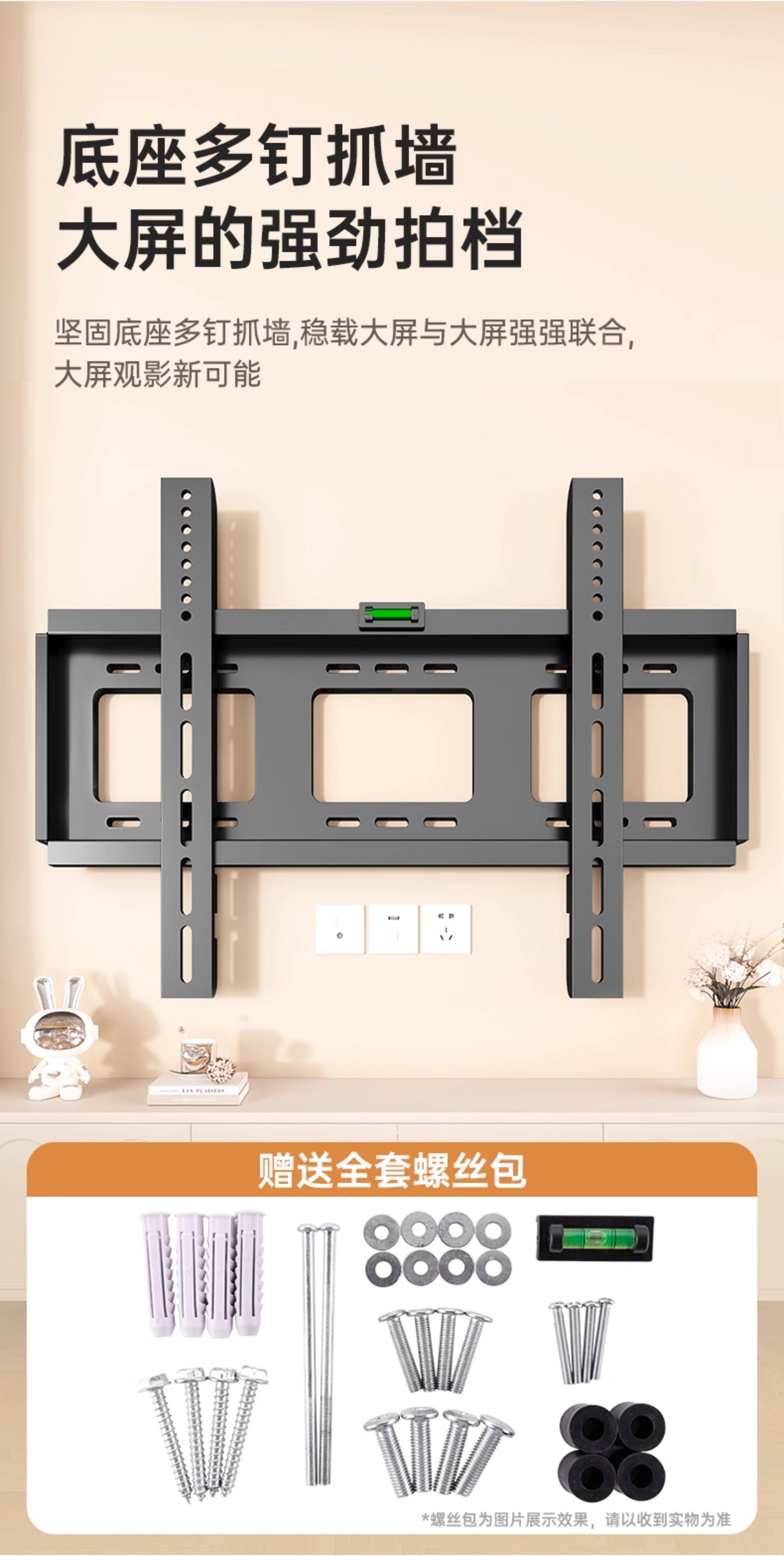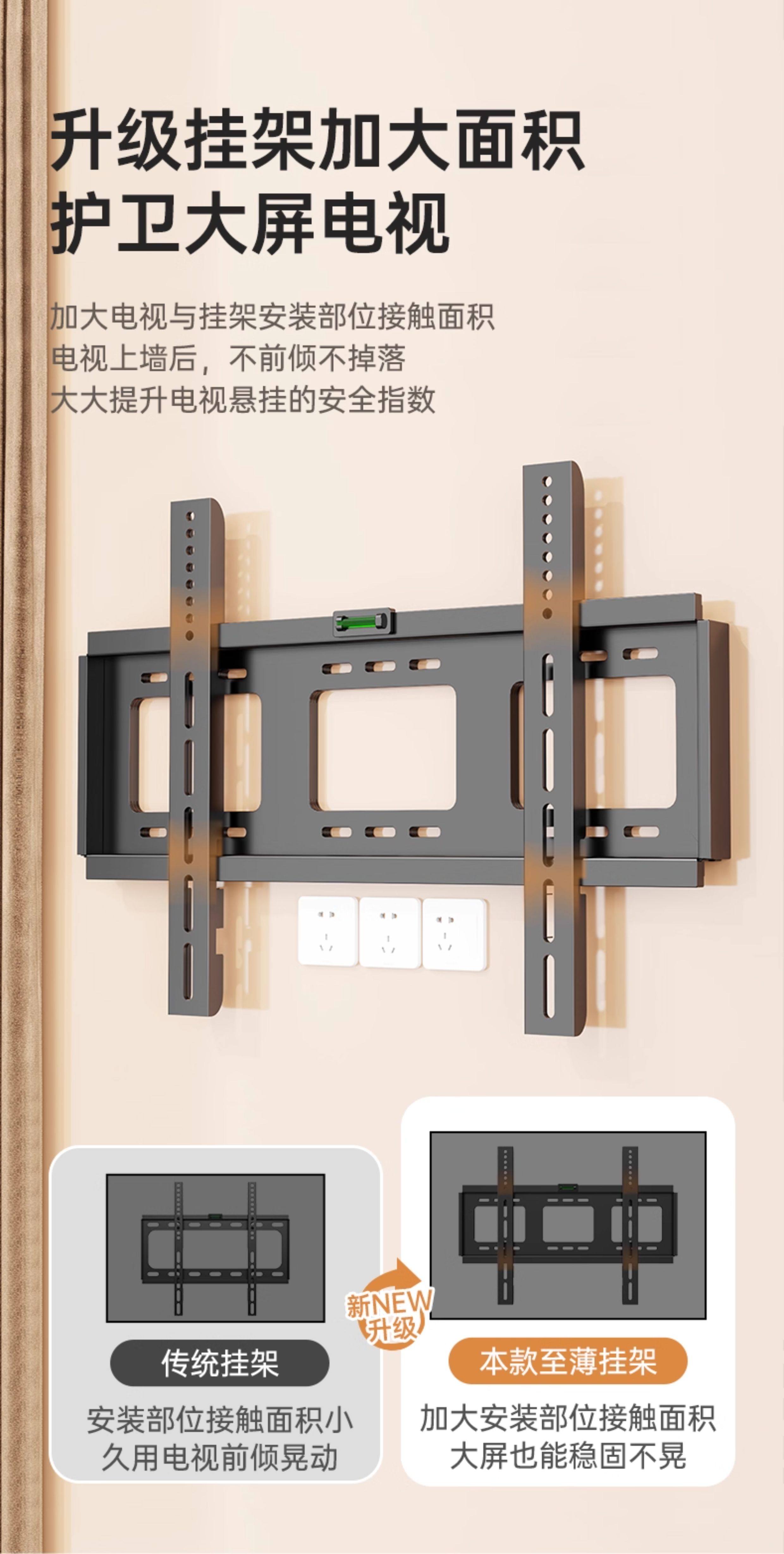 Beishi Universal Tv Wall Mount Ultra-Thin Bracket 657585inch Suitable for Hisense, Tcl, Skyworth, Etc