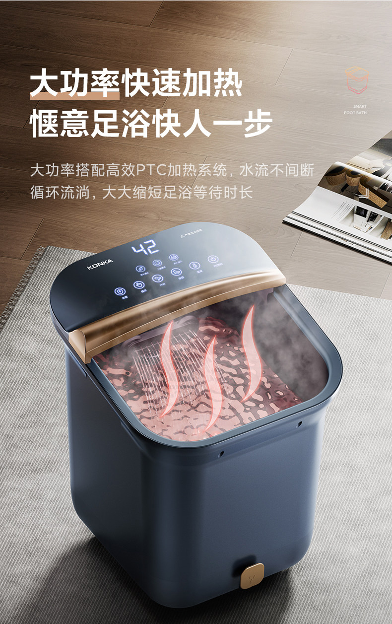 Konka Foot Bath Bucket Fully Automatic Knee-High Heating Constant Temperature Massage Deep Bucket Electric Foot Bath Basin Home Foot Washing Basin