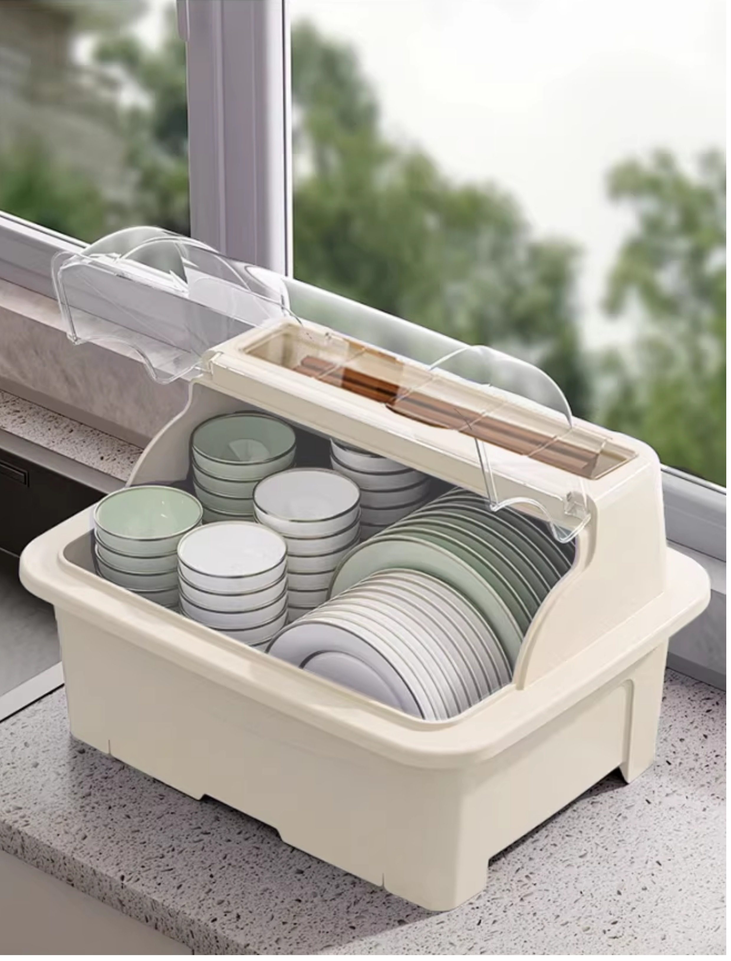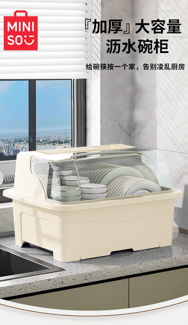 Miniso Bowl and Chopstick Storage Box, Dish Storage Rack, Bowl and Plate Box with Drainage, Kitchen Cupboard Storage Rack