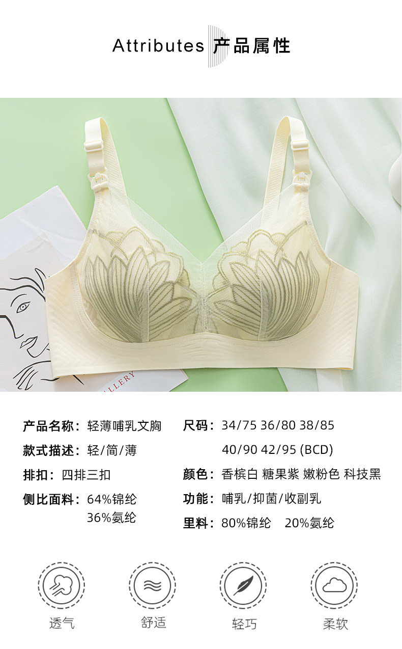 Maternity Nursing Bra for Pregnant Women, Postpartum Breastfeeding Thin Bra Without Underwire, Anti-Sagging Push-Up Bra